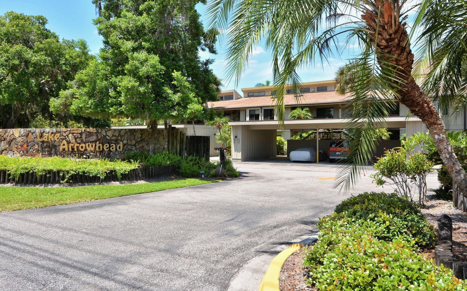 "Lakefront" Updated, End Unit Condo like no other in sought after "LAKE ARROWHEAD"! Make this beautiful waterfront oasis yours today! Have your morning coffee on the lanai watching the wildlife & birds! Lake Arrowhead is truly a hidden gem in South Sarasota and you will love the updates. No shortcuts on the newer, quality, custom kitchen cabinets, quartz counters, stainless appliances & a breakfast bar. Throughout most of the condo is very large porcelain tile. Listed as unfurnished but most furniture may be purchased. The private, primary bedroom suite is on the 2nd floor and offers a large walk-in-closet and a very tranquil view of the lake. The 2nd & 3rd Bedrooms are on the first floor (3rd bedroom has been converted to a bar area & has a private bath and walk-in-closet that overlooks the lake and could easily be converted back). The Great Room with high ceilings has a large sliding glass door that opens onto the spacious, covered lanai with a peaceful view. There is a covered carport, a 3x7 storage unit and guest parking available as well. The Key West clubhouse is steps away next door and it overlooks a heated community pool. It also offers a large community room, kitchen, library, grill area, fishing pier & wooden dock. You will love this maintenance free community that offers everything you could desire and is located next to the 72-acre Red Bug Slough Preserve that is pet friendly & has several miles of hiking trails, a playground, picnic shelters & a fishing dock. Lake Arrowhead consists of 64 condos which is conveniently located to everything, including the World Famous Siesta Key Beaches, Legacy Trail, Costco, Several Fitness Centers, A+ Schools, Gulf Gate Library, Gulf Gate Shops & Fine Restaurants. UTC Mall & Cultural Downtown Sarasota are within 20 minutes for great restaurants, opera, movies & more! Make this your favorite place to relax & unwind as you are surrounded by tropical landscaping & lake views from nearly every room. Come & see this quality condo; EZ show!