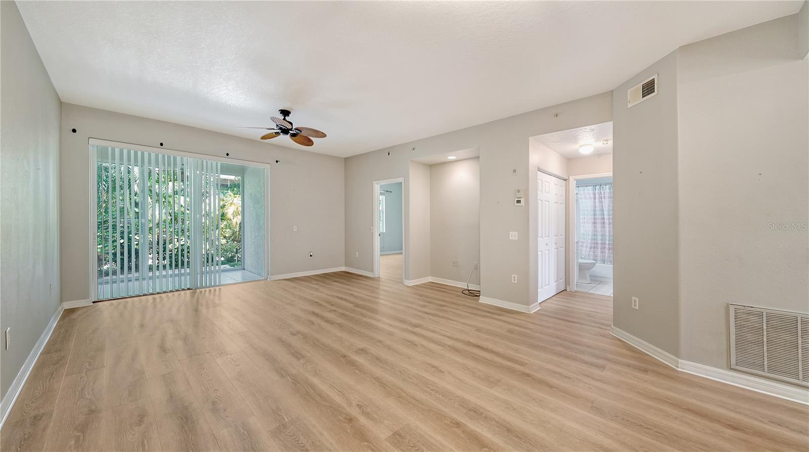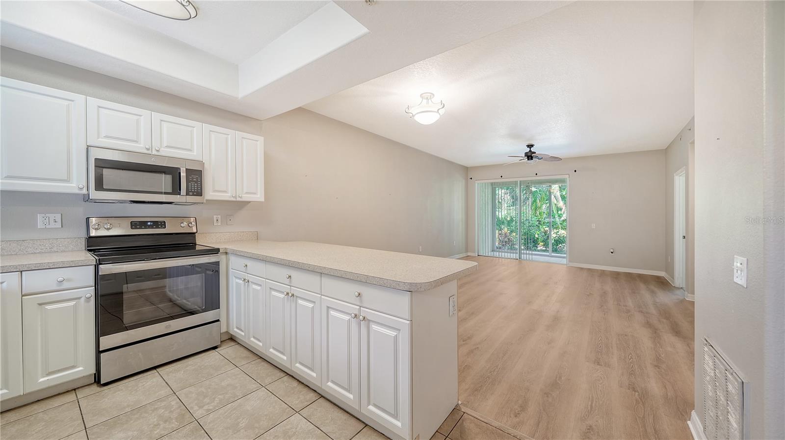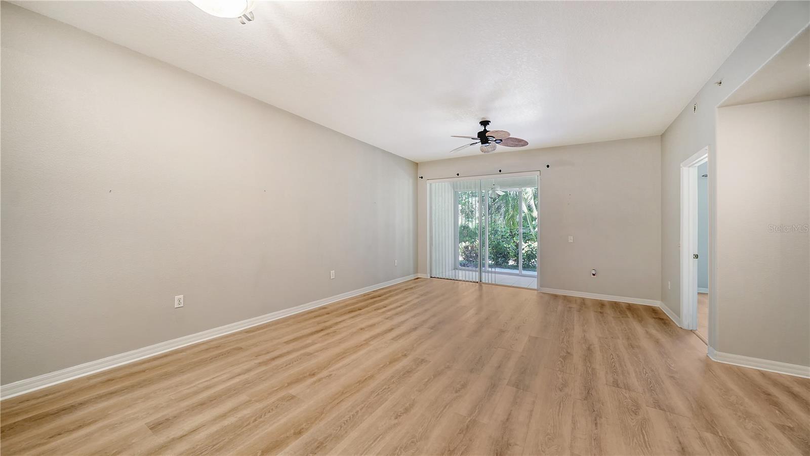 Welcome to Pinestone at Palmer Ranch, one of South Sarasota's best kept secrets! Your beautiful, first floor, 2 bedroom/2 bath condo has a spacious open floor plan featuring brand new LVT flooring in the living room, dining room and main bedroom, and a newer AC. Also a lovely lanai and private patio abutting green space. The kitchen has stainless steel newer appliances and a sunny window for your plants. Your new condominium is in a gated community that is drenched in amenities, including an olympic-sized swimming pool, grilling stations, shuffleboard, and lighted tennis/pickleball courts. The clubhouse includes a fitness facility, a 32-seat movie theater, library, billiards room, and much more. The Pinestone community is surrounded by convenient living amenities such as Legacy Trail for biking and walking, Publix, Target, Costco and just a 5 minute drive to beautiful Siesta Key.