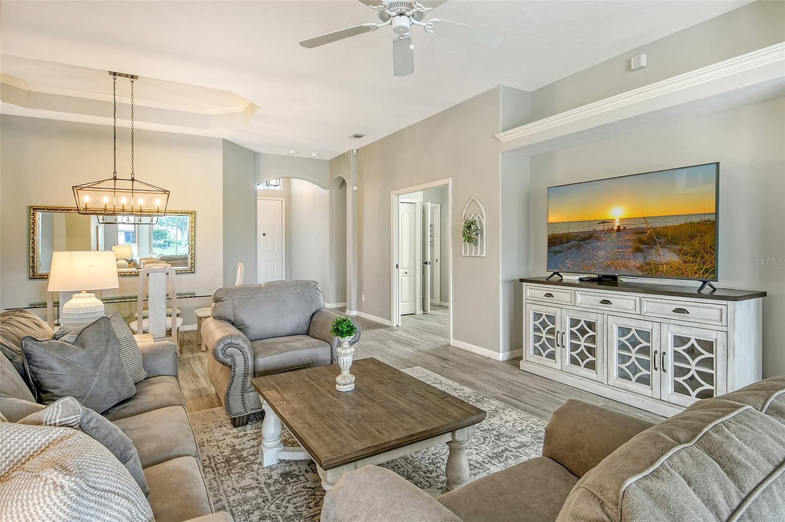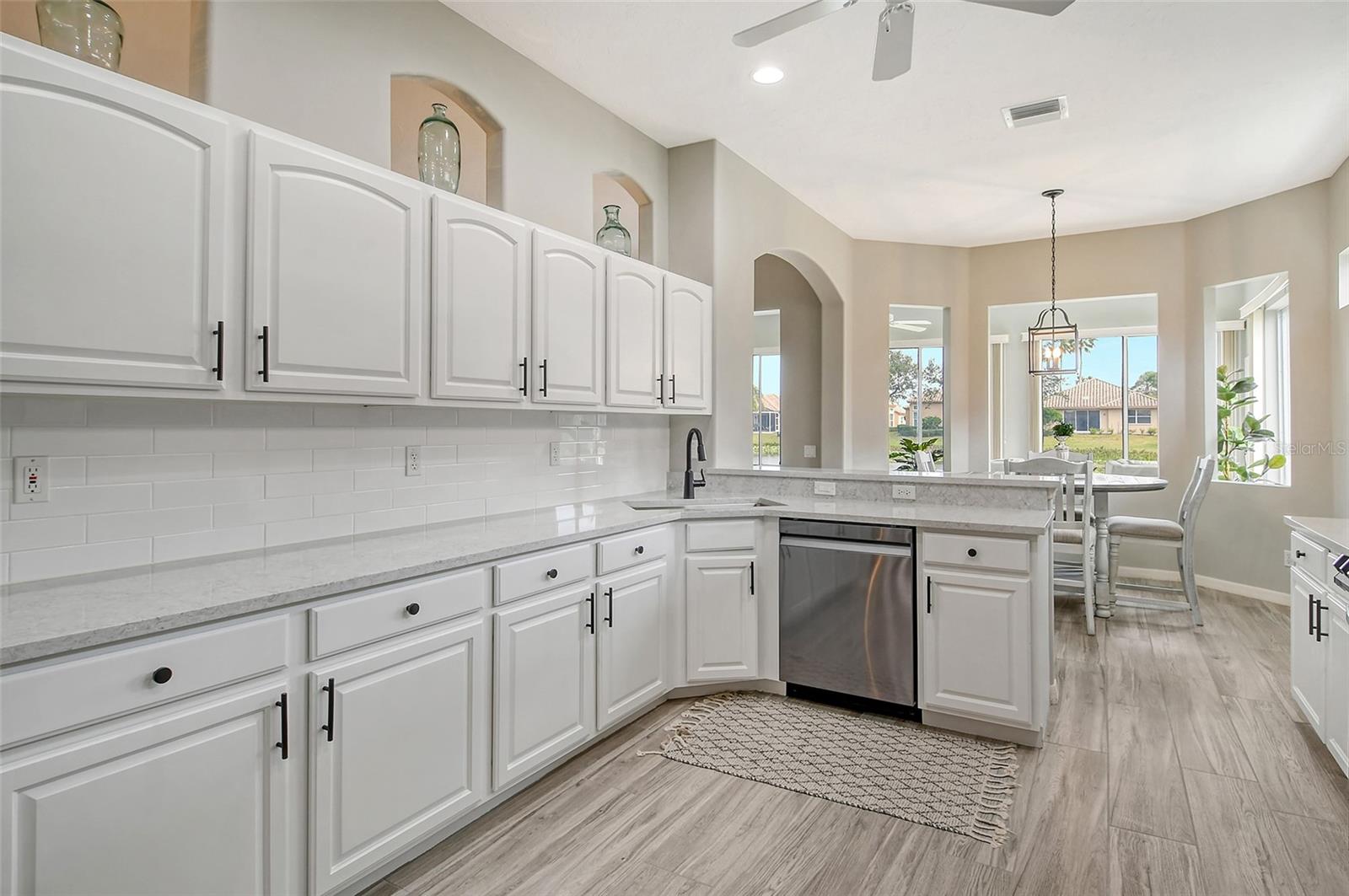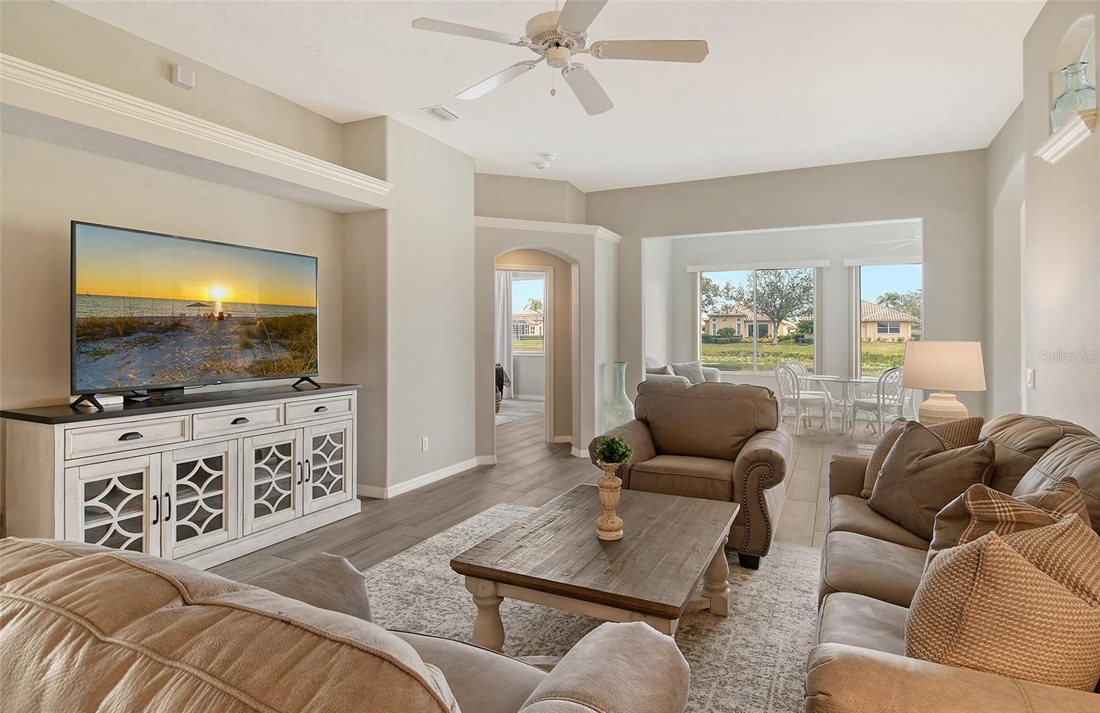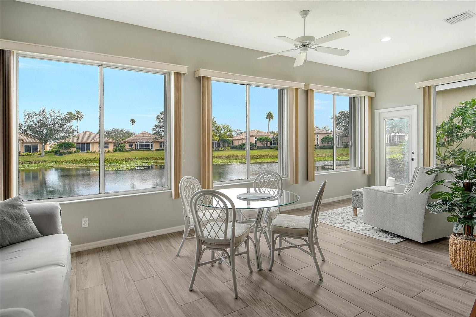 Immediate occupancy available at Palisades of Palmer Ranch! Step into this elegantly remodeled, turnkey-furnished home in the highly sought-after Palisades of Palmer Ranch. Offering 2,228 square feet of open living space, this three-bedroom, two-bath home is a perfect blend of style and functionality. The entire home features stunning porcelain tile flooring imported from Spain, beautifully paired with furnishings that harmonize with the wall and floor colors. The thoughtfully designed interior overlooks a peaceful lake bustling with vibrant birdlife, creating a serene and picturesque backdrop. The kitchen is a showstopper, featuring crisp white cabinetry, quartz countertops and premium Samsung slate stainless steel appliances, including a five-burner natural gas range. Perfect for entertaining or everyday living, this remodeled space is as practical as it is beautiful. Safety and peace of mind come standard, with impact glass on the east side of the home and hurricane shutters installed in 2012. Situated 20 feet above sea level in Zone X, the home does not require flood insurance. Additional features include: exterior painted in 2023, new AC system installed in 2023 and repiped in 2014 for worry-free living. The oversized garage provides ample storage. Located in the meticulously maintained, maintenance-free community of Palisades, this home is free from CDD fees and perfectly positioned at the northwest corner of Palmer Ranch. Enjoy proximity to Sarasota’s vibrant lifestyle, including its world-class dining, shopping and cultural attractions. This home is more than a must-see — it’s a must-have. Schedule your showing today and experience the best of Sarasota living!