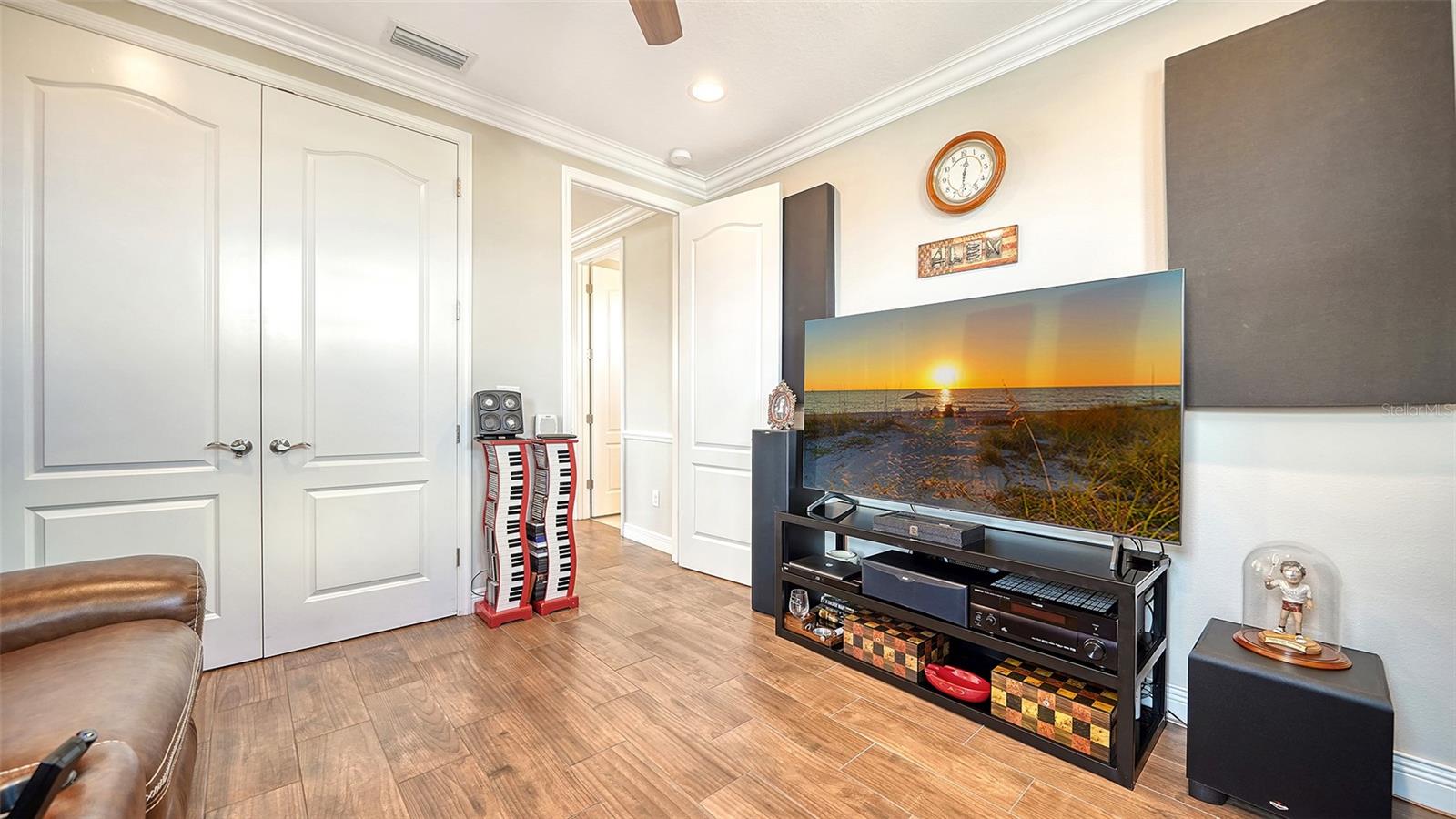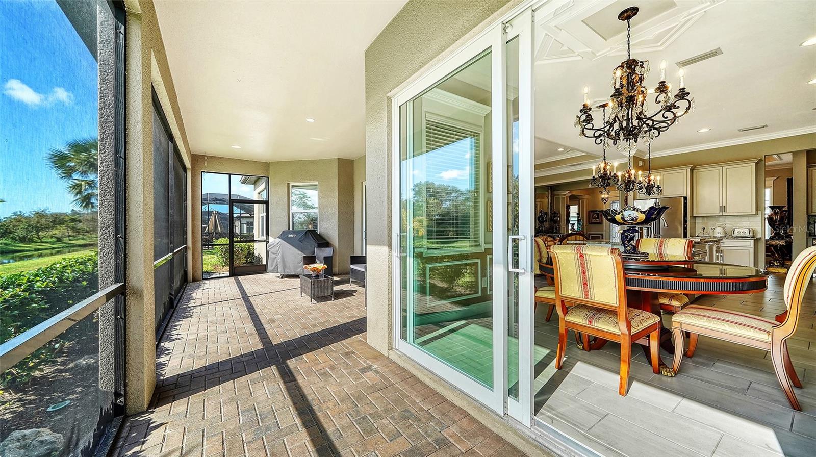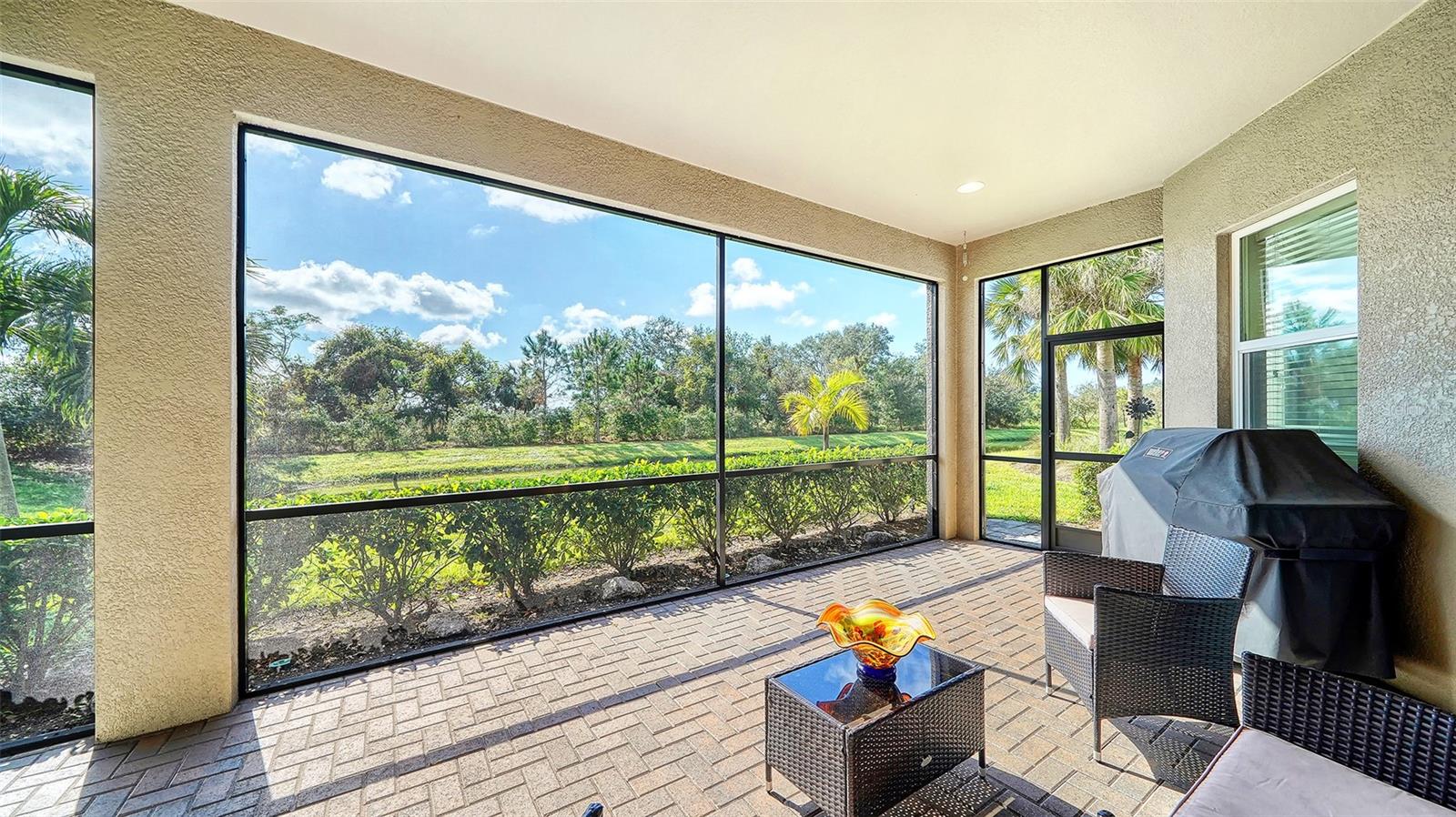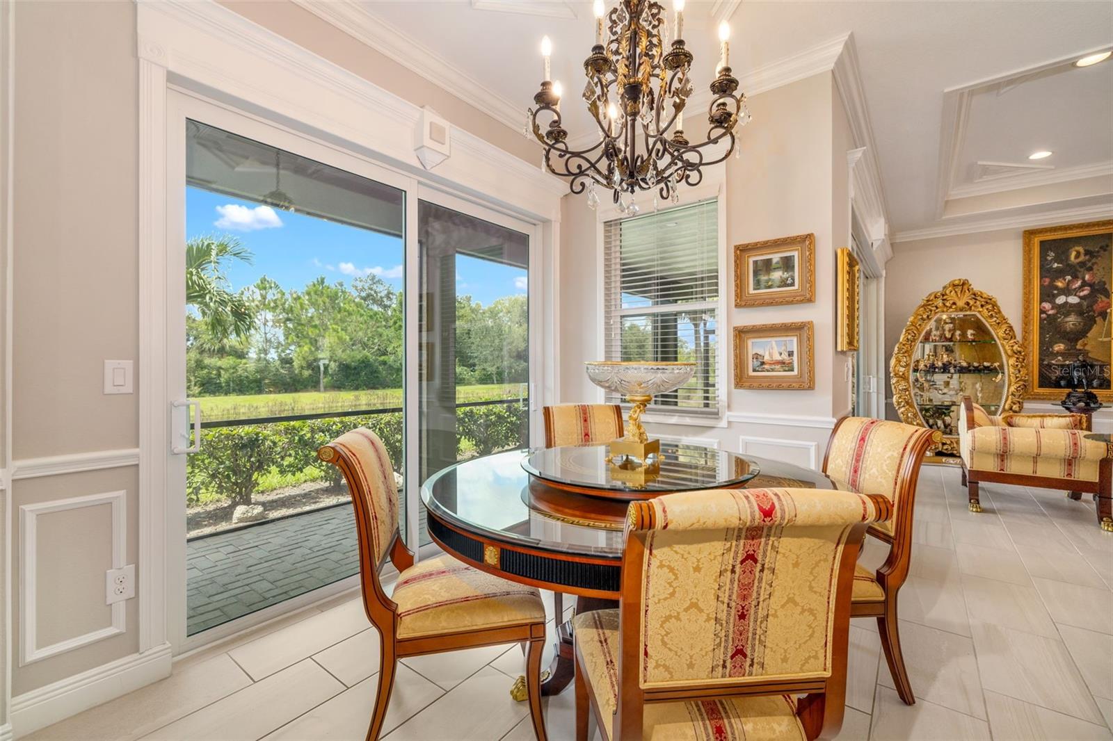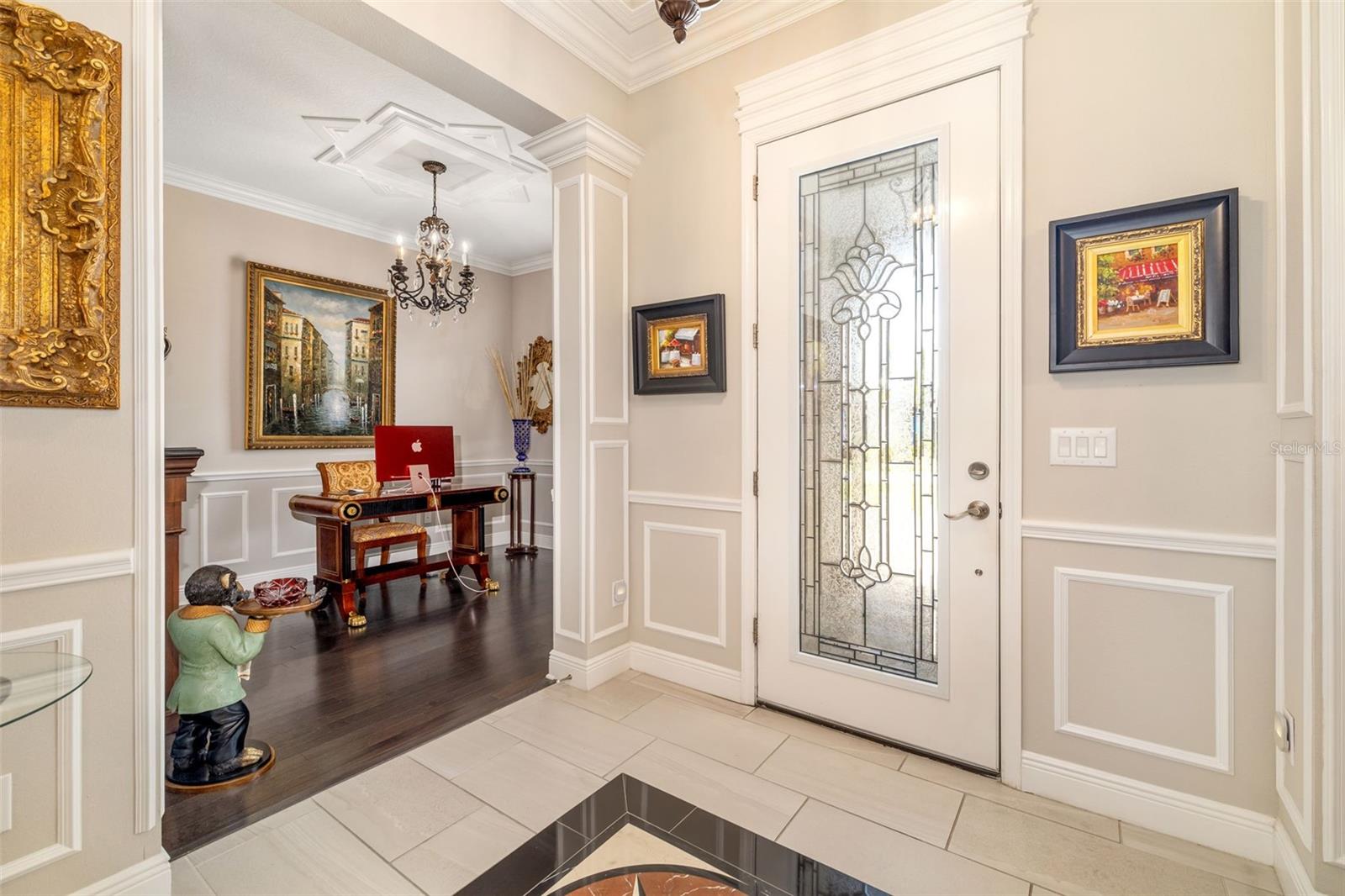 Nestled behind the gates of Rivo Lakes, this stunning home exudes timeless elegance with its impressive Tuscan-inspired facade and exquisite stone accents. FRESHLY PAINTED LIVING AREA, BEAUTIFUL LIGHT NEUTRAL COLOR. The meticulously landscaped grounds are adorned with lush tropical foliage, setting the stage for a truly exceptional living experience. Step inside to find a spacious, open floor plan with soaring ceilings and custom millwork throughout. Gorgeous custom Italian inlays grace the floors, adding sophistication to the space. This home offers 4 spacious bedrooms, 4 luxurious bathrooms, a bonus room, den, formal dining room, and a game room—plenty of space for entertaining or family relaxation. The gourmet kitchen is a chef’s dream, featuring custom cabinetry, granite countertops, high-end stainless steel appliances, and a cozy café dining area. A massive granite center island with counter-height seating seamlessly connects to the expansive family room, creating an ideal flow for both casual and formal gatherings. Upstairs, you'll find a private retreat with a large bonus room, bedroom, and bathroom, offering both comfort and versatility. The master suite is a true sanctuary, located on its own wing of the home, complete with a spa-like 5-piece en-suite and a generously sized walk-in closet. Sliding doors lead to the lanai, where you can relax and enjoy tranquil views of the serene pond. Why wait for new construction when you can move right into this better-than-new, custom home today? Whether you're teeing off at a nearby golf course or enjoying cocktails with friends, this home is the perfect setting for every lifestyle. Priced to sell...welcome home!