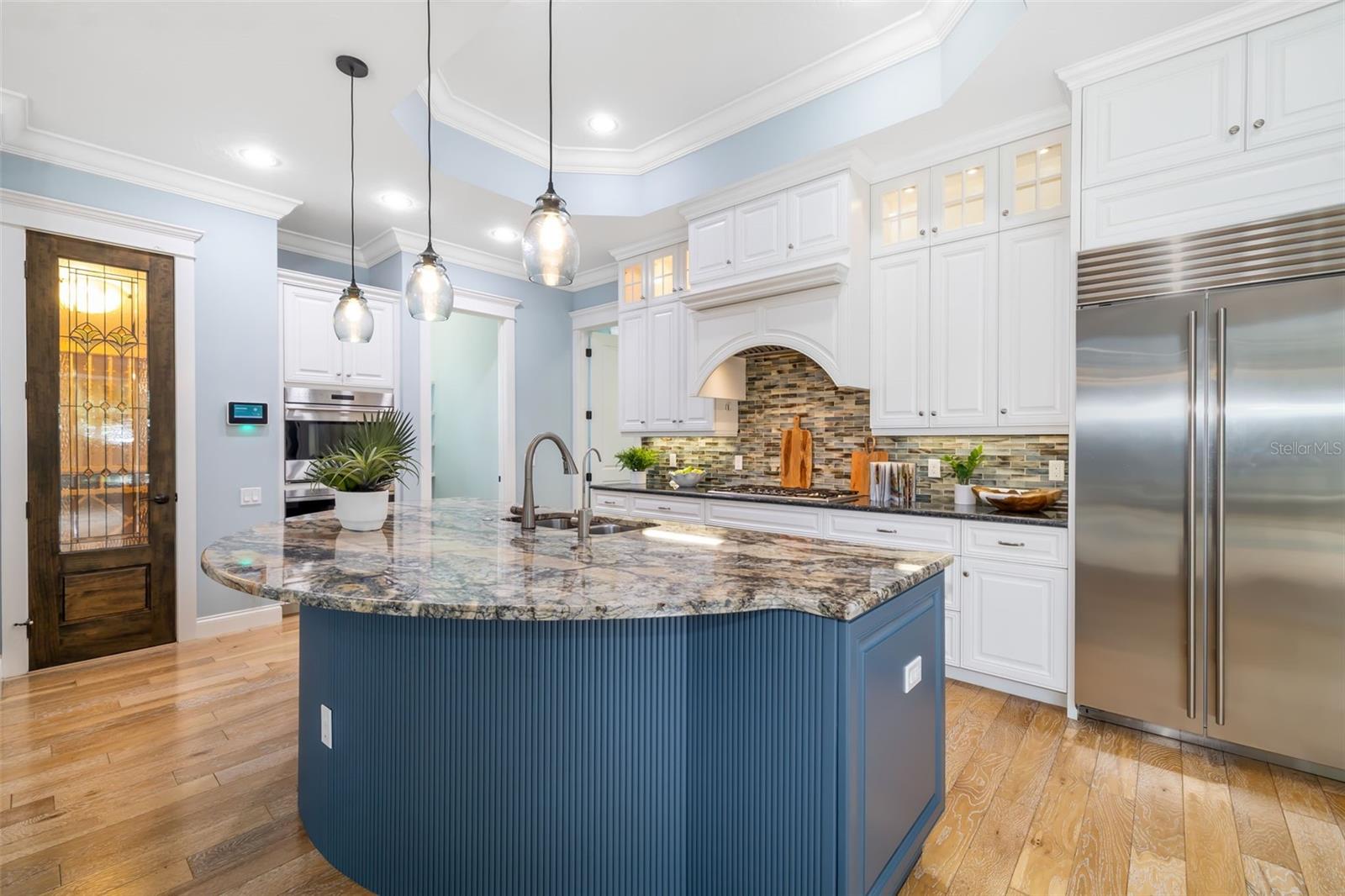 Be ready to fall in love—just like the current owners did the moment they saw this home. Located in the coveted Avondale neighborhood, West of Trail, this custom Todd Johnston-built residence combines elegant design, quality craftsmanship, and exceptional convenience. Just moments from downtown Sarasota, the Bayfront, and Southside Village, this home offers walkable access to Sarasota’s best shops, restaurants, and cultural gems. Though close to everything, the home is a peaceful retreat. Built with block construction, hurricane impact-rated windows, and a newly constructed foam noise-reducing privacy wall, it offers impressive sound insulation and privacy. The lush, professionally landscaped front yard creates a garden-like entrance, attracting birds and butterflies, with a soothing water feature setting a tranquil tone from the moment you arrive. Inside, the home welcomes you with a sun-filled, open-concept layout. The main living areas and primary suite are all on the ground floor, offering comfort and convenience, while guests enjoy privacy in the upstairs ensuites and bonus spaces. The chef’s kitchen is outfitted with Sub-Zero, Wolf, Thermador, and Bosch appliances, custom cabinetry, granite counters, and a spacious island. Entertain in style with a dedicated bar area and a recently updated 450-bottle wine cellar. French doors lead to a private study, and the luxurious primary suite includes dual walk-in closets and a spa-inspired bath. Upstairs offers two additional ensuite bedrooms, a bonus room with balcony, and a separate guest suite—perfect for extended family, a home office, or fitness studio. Out back, enjoy the ultimate Florida lifestyle: a screened lanai, heated saltwater pool with rock grotto waterfall, and a fully equipped summer kitchen with granite bar, Lynx Sedona grill, Thor beverage fridge, and stainless sink—ideal for alfresco gatherings. This home also includes thoughtful features that enhance both comfort and peace of mind. It is built with solid concrete block construction, a Kohler whole-house generator, and a tankless gas water heater. The three-car side-entry garage is finished with epoxy flooring, abundant cabinetry, and a full-size stainless refrigerator for added convenience. A brick-paved driveway leads to custom wrought-iron gates, and the entire property is enclosed by a stucco privacy wall perfect for keeping your pets secure. The lush tropical landscaping is complemented by outdoor lighting and an irrigation system, completing the sense of a true Sarasota sanctuary. Whether you’re a family, retiree, entertainer, or empty nester needing flexible guest space or an in-law suite, this West of Trail gem in Avondale offers the perfect blend of location, luxury, and tranquility.