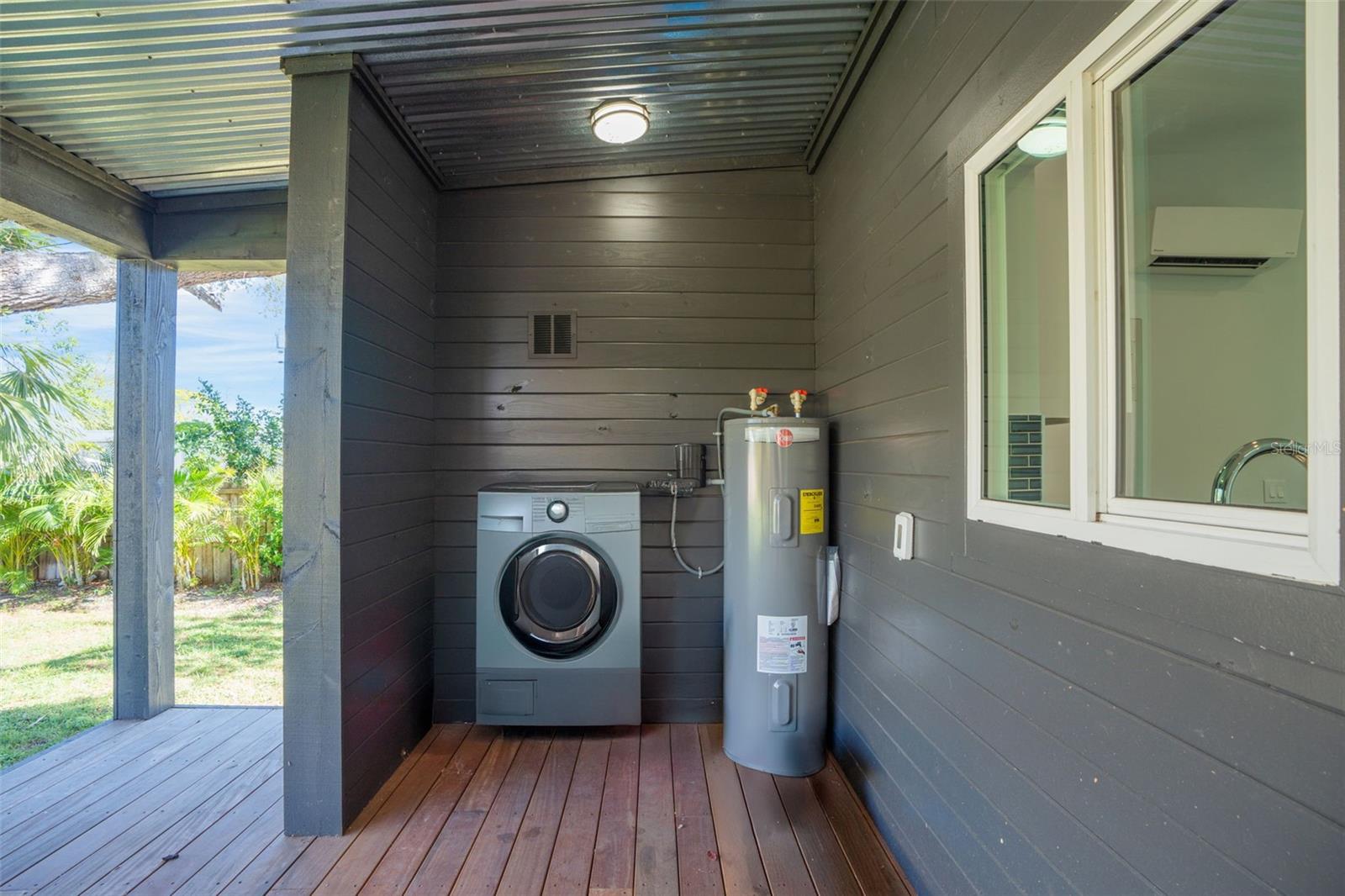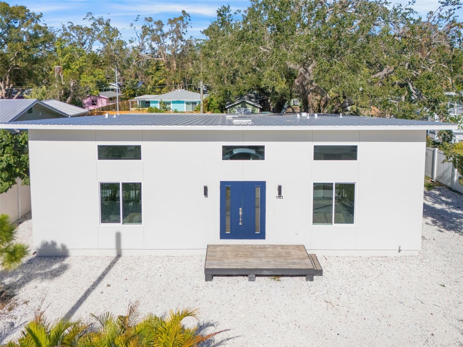 One or more photo(s) has been virtually staged. Seller offering $10,000 toward closing costs! Take a look at this stunning two-bedroom, two-and-a-half-bathroom new construction home-- offering the perfect blend of style, comfort, and convenience. Located near Ringling College; just 2 miles from vibrant downtown Sarasota, 4 miles from the pristine sands of Lido Beach, and a short 3-mile drive to Sarasota/Bradenton Airport, this home is perfectly located to enjoy the best of Sarasota, and without HOA fees! Step inside and discover a natural light filled interior with an airy, open layout. The kitchen and living areas boast soaring ceilings, complemented by expansive French doors and oversized windows that seamlessly bring the outdoors in. The luxury teak-wood flooring adds a touch of sophistication throughout. The oversized, fenced backyard has plenty of space for an outdoor fire pit, activities, or simply enjoying the tranquil surroundings. The spacious back porch invites you to unwind or host gatherings year-round. Built with quality and resilience in mind, this home features hurricane-rated impact windows and doors, a durable metal roof, and meticulous attention to detail. Don’t miss your opportunity to own this beautifully appointed home at an unbeatable value. Excellent Airbnb/VRBO opportunity.