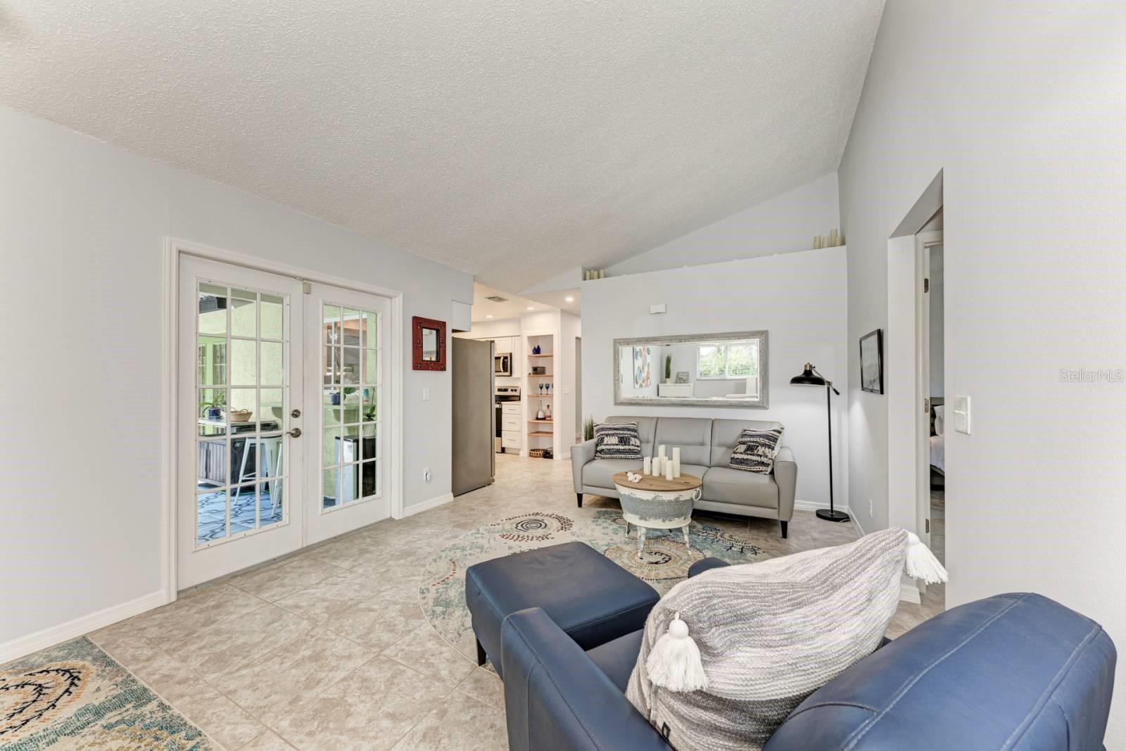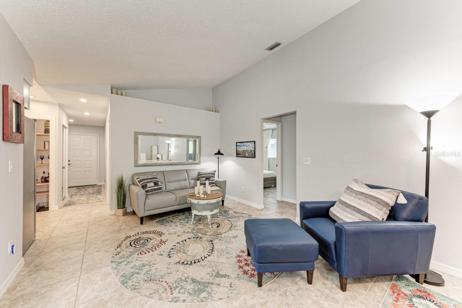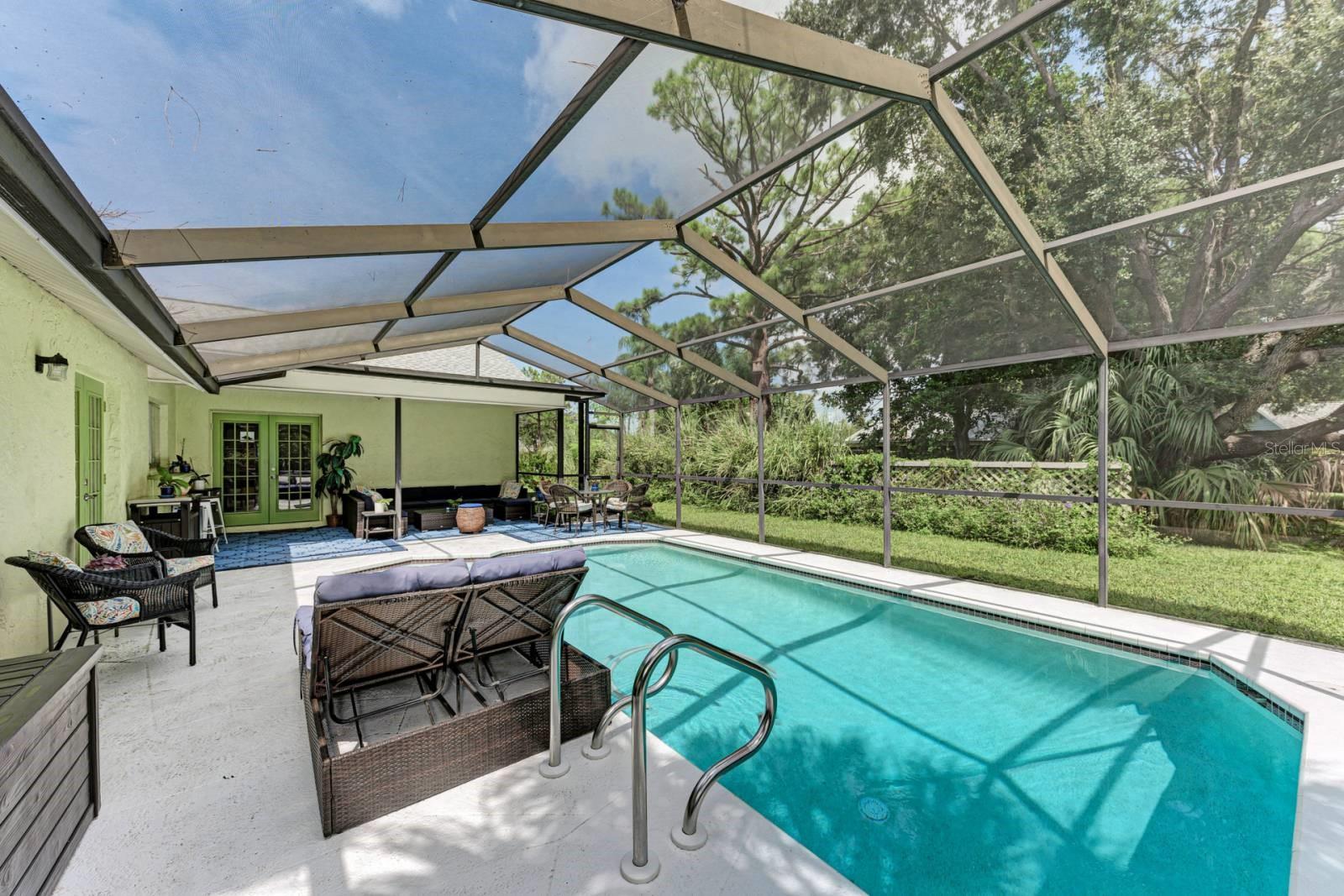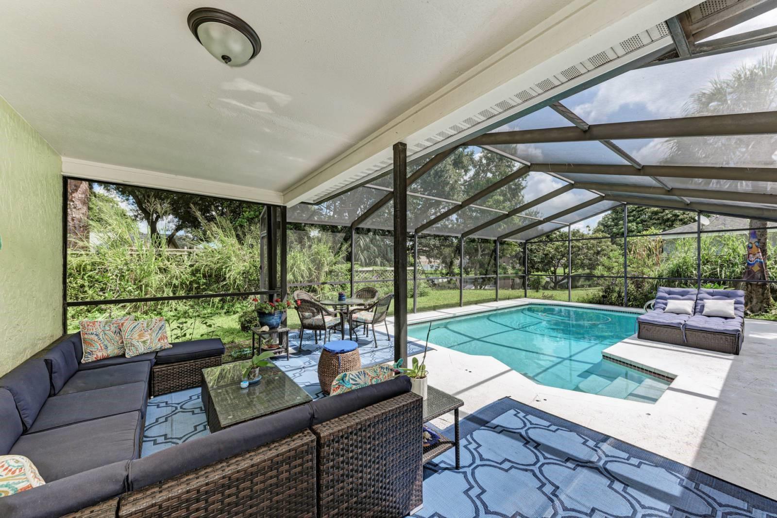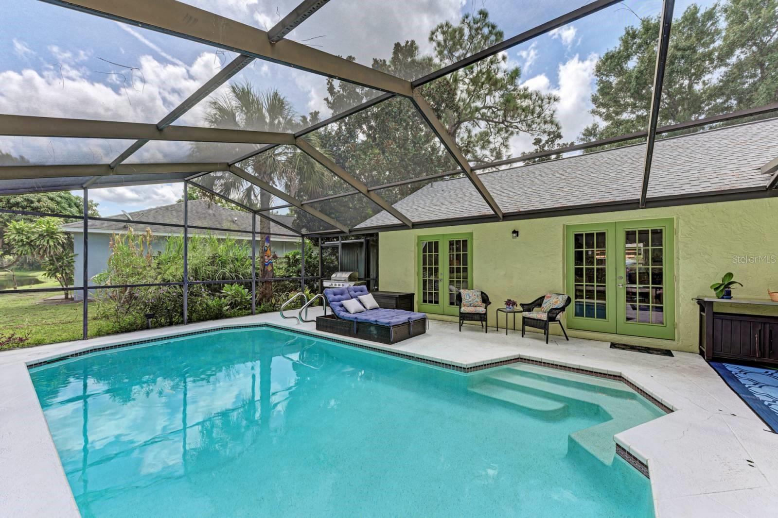GORGEOUS LAKEFRONT POOL HOME IN SARABAY WOODS!!! This beautiful 3 bedroom, 2 bathroom home with a 2 car garage is a must see and is being sold FULLY FURNISHED!!! Nestled in a picturesque setting, the property features mature landscaping, including a majestic oak tree, palm trees, and a stunning magnolia tree. The screened front porch adds charm and warmth to the curb appeal. Inside, the home boasts vaulted ceilings, ample natural light, and a split bedroom floor plan. The updated kitchen includes shaker cabinets, quartz countertops, and stainless steel appliances, flowing seamlessly into the formal dining area. The spacious family room is ideal for gatherings. The master suite offers vaulted ceilings, a walk-in closet, and a luxurious updated ensuite bathroom. Two guest bedrooms share a well-appointed bathroom with a tub/shower combo. Step outside thru the french doors to your private screened-in pool and enjoy serene lake views from the covered patio or pool deck—perfect for relaxing or entertaining. Prime Location only minutes from downtown Sarasota, Ringling Museum, USF, UTC Mall, Anna Maria Island beaches, St. Armands Circle, and Sarasota-Bradenton International Airport. Perfect as a permanent residence or a VACATION RENTAL. Don't miss out on this stunning property!