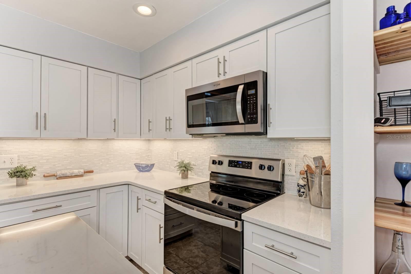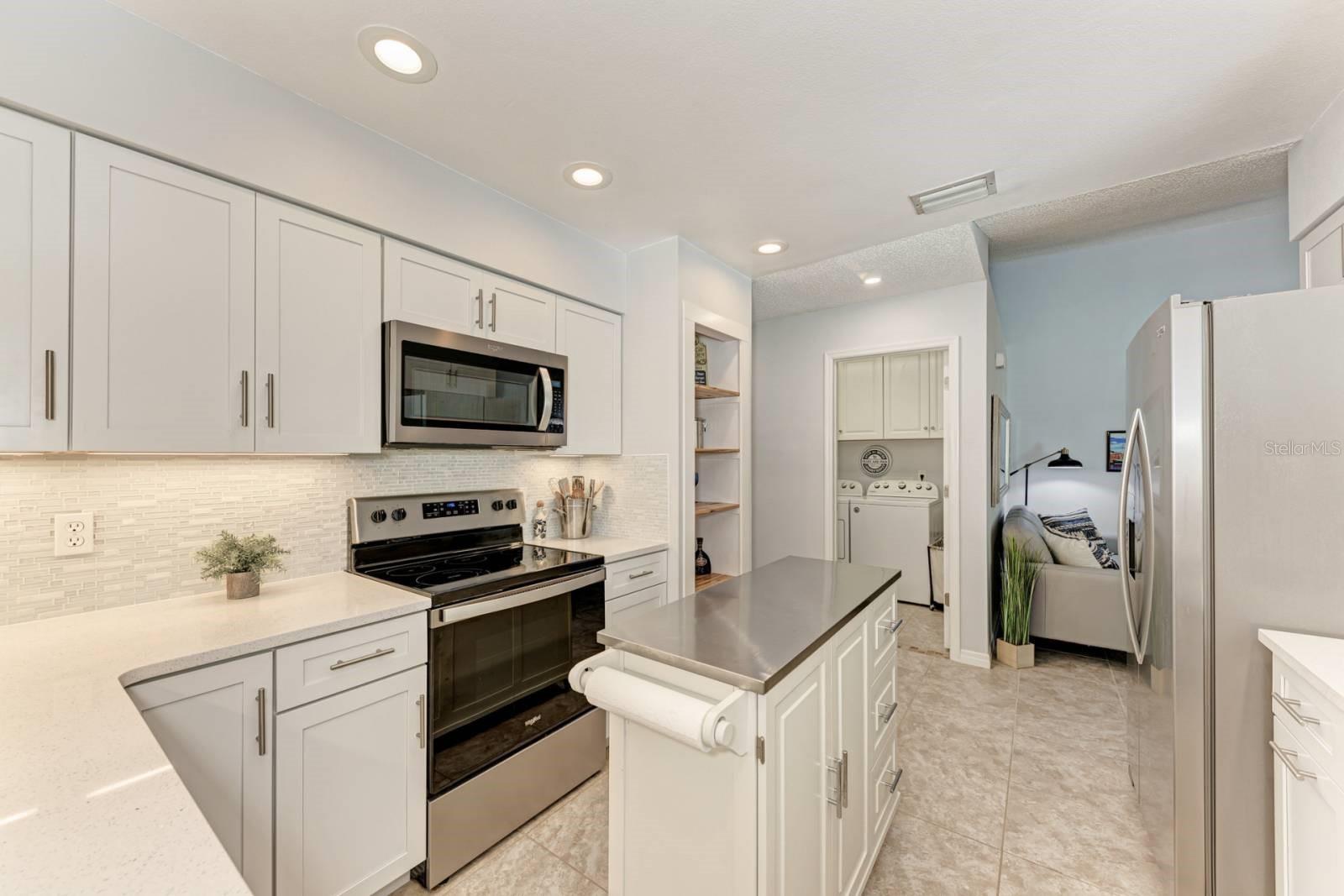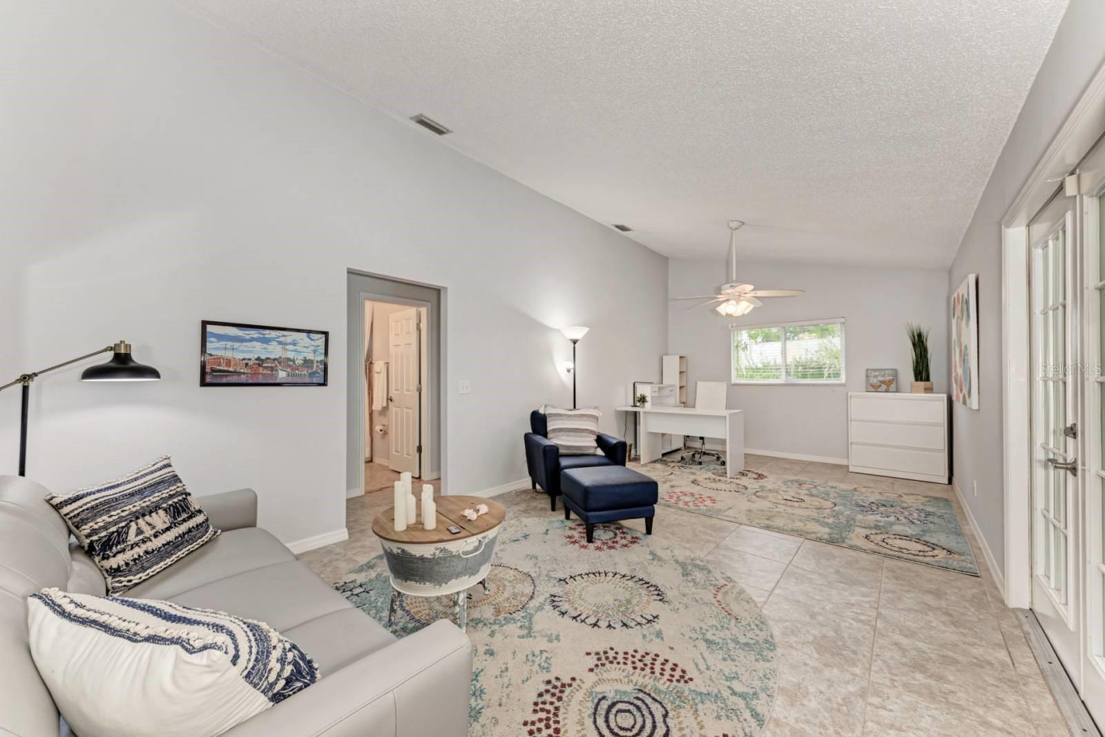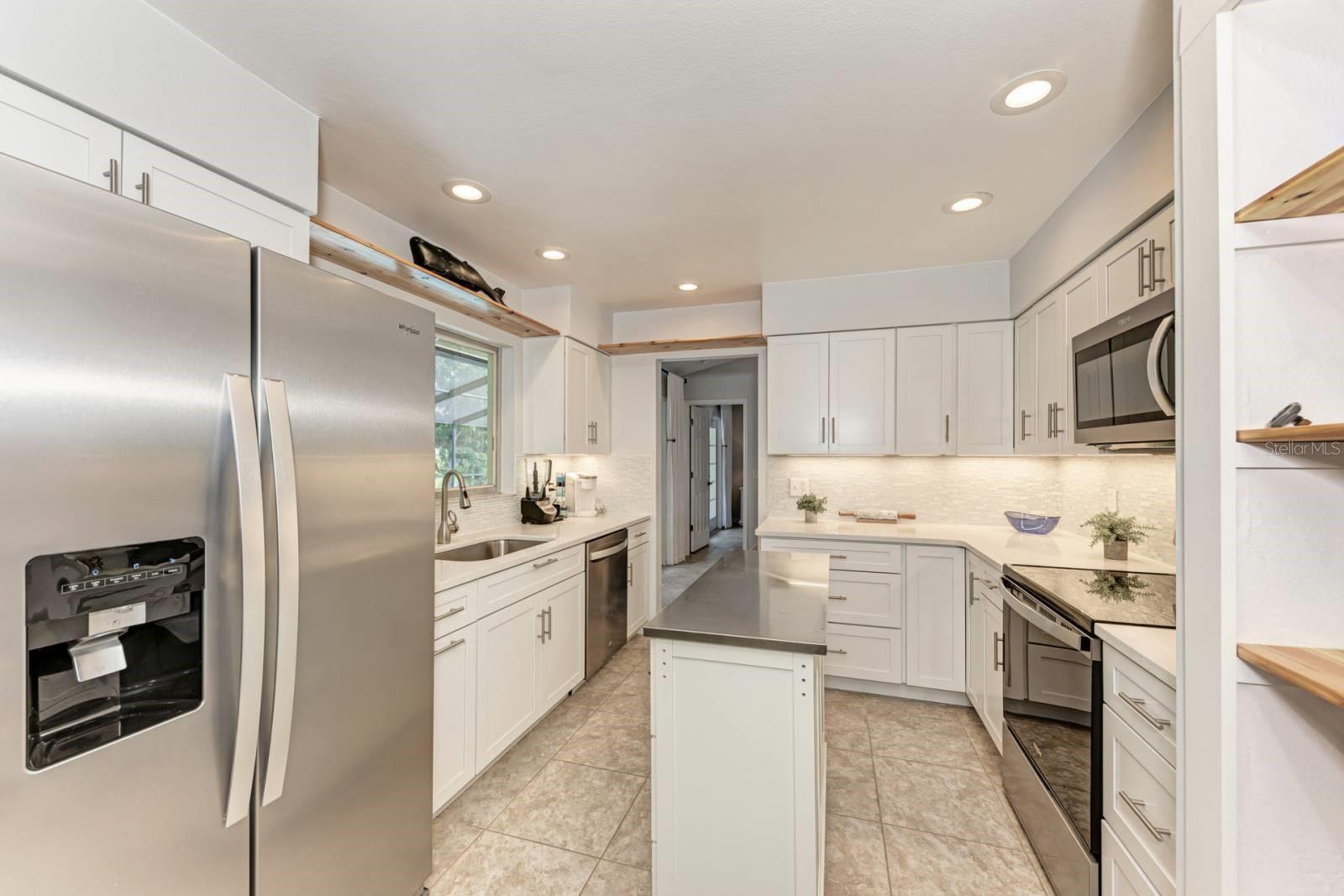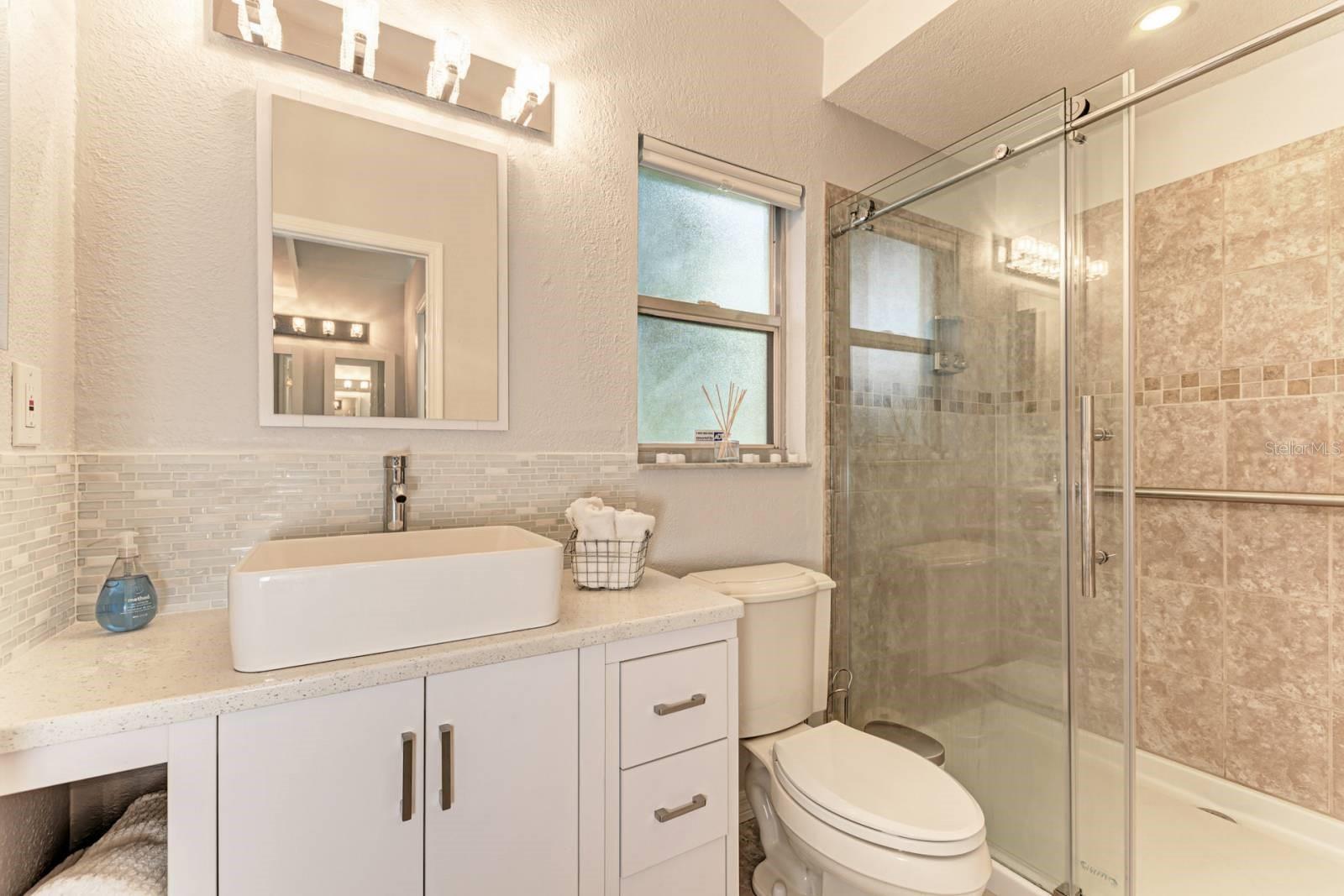 GORGEOUS LAKEFRONT POOL HOME IN SARABAY WOODS!!! This beautiful 3 bedroom, 2 bathroom home with a 2 car garage is a must see and is being sold FULLY FURNISHED!!! Nestled in a picturesque setting, the property features mature landscaping, including a majestic oak tree, palm trees, and a stunning magnolia tree. The screened front porch adds charm and warmth to the curb appeal. Inside, the home boasts vaulted ceilings, ample natural light, and a split bedroom floor plan. The updated kitchen includes shaker cabinets, quartz countertops, and stainless steel appliances, flowing seamlessly into the formal dining area. The spacious family room is ideal for gatherings. The master suite offers vaulted ceilings, a walk-in closet, and a luxurious updated ensuite bathroom. Two guest bedrooms share a well-appointed bathroom with a tub/shower combo. Step outside thru the french doors to your private screened-in pool and enjoy serene lake views from the covered patio or pool deck—perfect for relaxing or entertaining. Prime Location only minutes from downtown Sarasota, Ringling Museum, USF, UTC Mall, Anna Maria Island beaches, St. Armands Circle, and Sarasota-Bradenton International Airport. Perfect as a permanent residence or a VACATION RENTAL. Don't miss out on this stunning property!
