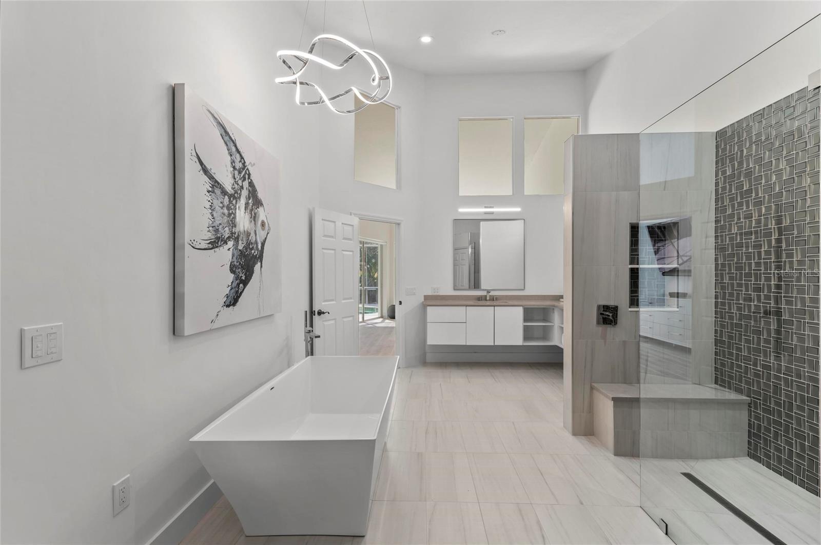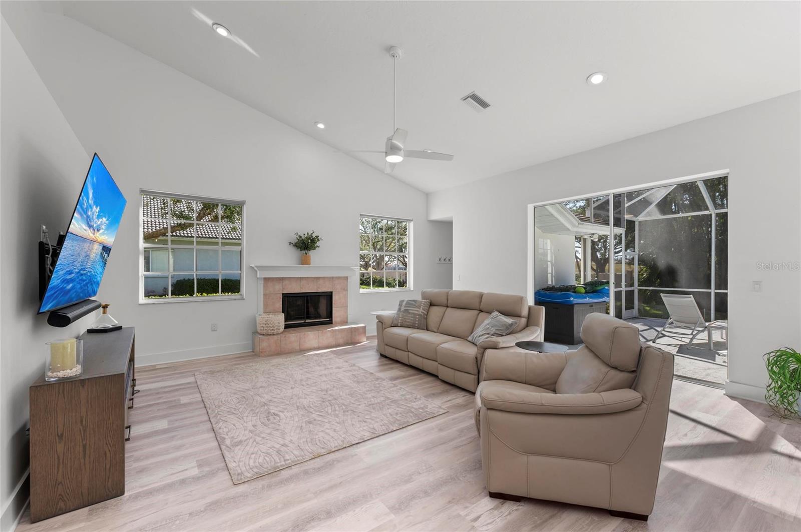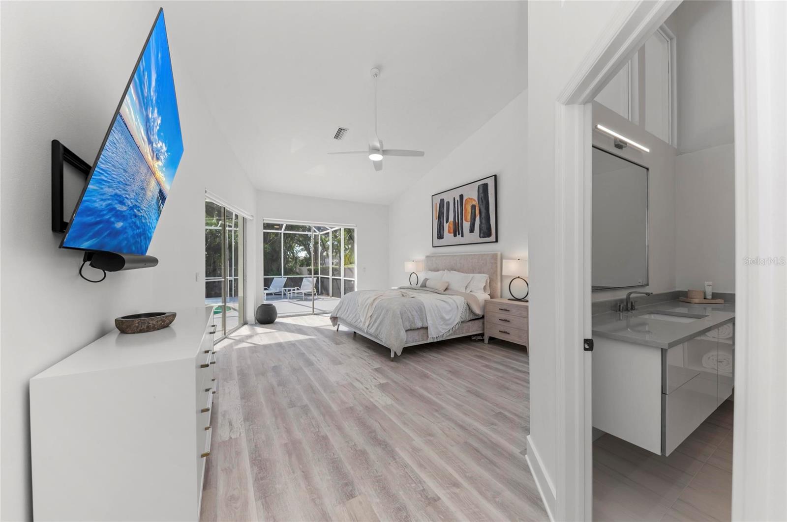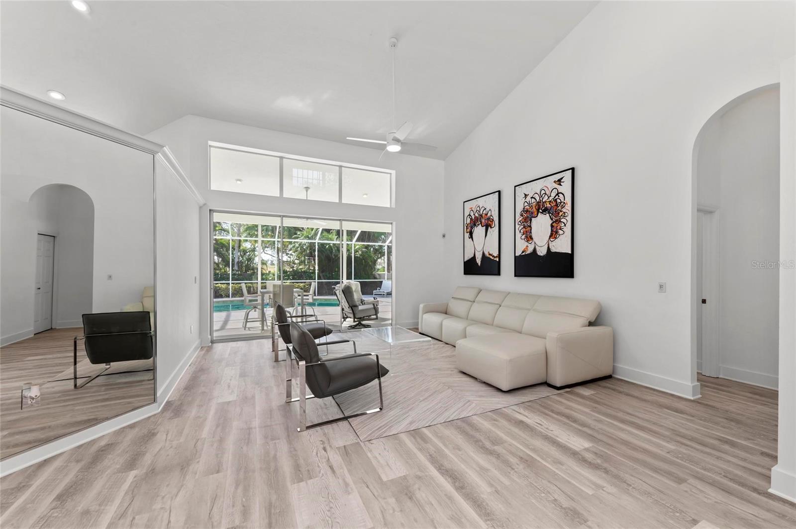 Welcome to 4214 Palacio Drive, an exquisite pool residence nestled within the exclusive TPC Prestancia golf community in Sarasota, Florida. This distinguished home offers a harmonious blend of luxury, comfort, and premier golf course living. Property Highlights: Spacious Layout: Encompassing 2,873 square feet of updates, this home features 4 generously sized bedrooms and 3.5 elegantly appointed bathrooms, providing ample space for family and guests. Elegant Design: Recently updated, the residence boasts a classic elevation with a side-entry 3-car garage. The double-door entry welcomes you into light-filled rooms accentuated by high ceilings and transom windows, creating an airy and inviting atmosphere. Outdoor Oasis: The property is situated on a meticulously maintained 0.48-acre lot, offering lush lawns and mature landscaping while enjoying your expansive lanai and pool area. The southern rear exposure ensures abundant natural light throughout the day. Recent updates include: Freshly sealed driveway. Fresh paint, baseboards, and flooring throughout the home. The primary bathroom suite and guest bathroom have been remodeled to encompass clean lines with quartz countertops, and ample storage in closet organizers and vanities. The walk in shower and tub is like walking into a spa with its high ceilings, clean lines, and secluded setting in the primary suite. The 4th bedroom can be a guest bedroom, office, or family bonus room with a door that enters the primary suite as well as door from main living area. Electric blinds on the main windows. Roof was completed in 2021. Community Features: TPC Prestancia: As a resident, you'll enjoy optional membership access to 36 holes of world-class golf, including the renowned Stadium and Players courses. The community spans 565 acres of lush landscapes, providing a balance of aesthetic beauty and championship play. Clubhouse Amenities: Again with optional membership...The recently renovated 35,000 square-foot clubhouse offers a full-service experience, including casual indoor and outdoor dining with gourmet menus, a variety of social activities and events, and world-class golf facilities and instruction. Prime Location: Located within the Palmer Ranch area, TPC Prestancia is just minutes from the white sands of Siesta Key and provides easy access to the arts and culture of downtown Sarasota. Experience Florida living where luxury meets leisure in a serene golf course setting. Recent updates include: Freshly sealed driveway. Fresh paint, baseboards, and flooring throughout the home. The primary bathroom suite and guest bathroom have been remodeled to encompass clean lines with quartz countertops, and ample storage in closet organizers and vanities. The walk in shower and tub is like walking into a spa with its high ceilings, clean lines, and secluded setting in the primary suite. The 4th bedroom can be a guest bedroom, office, or family bonus room with a door that enters the primary suite as well as door from main living area.