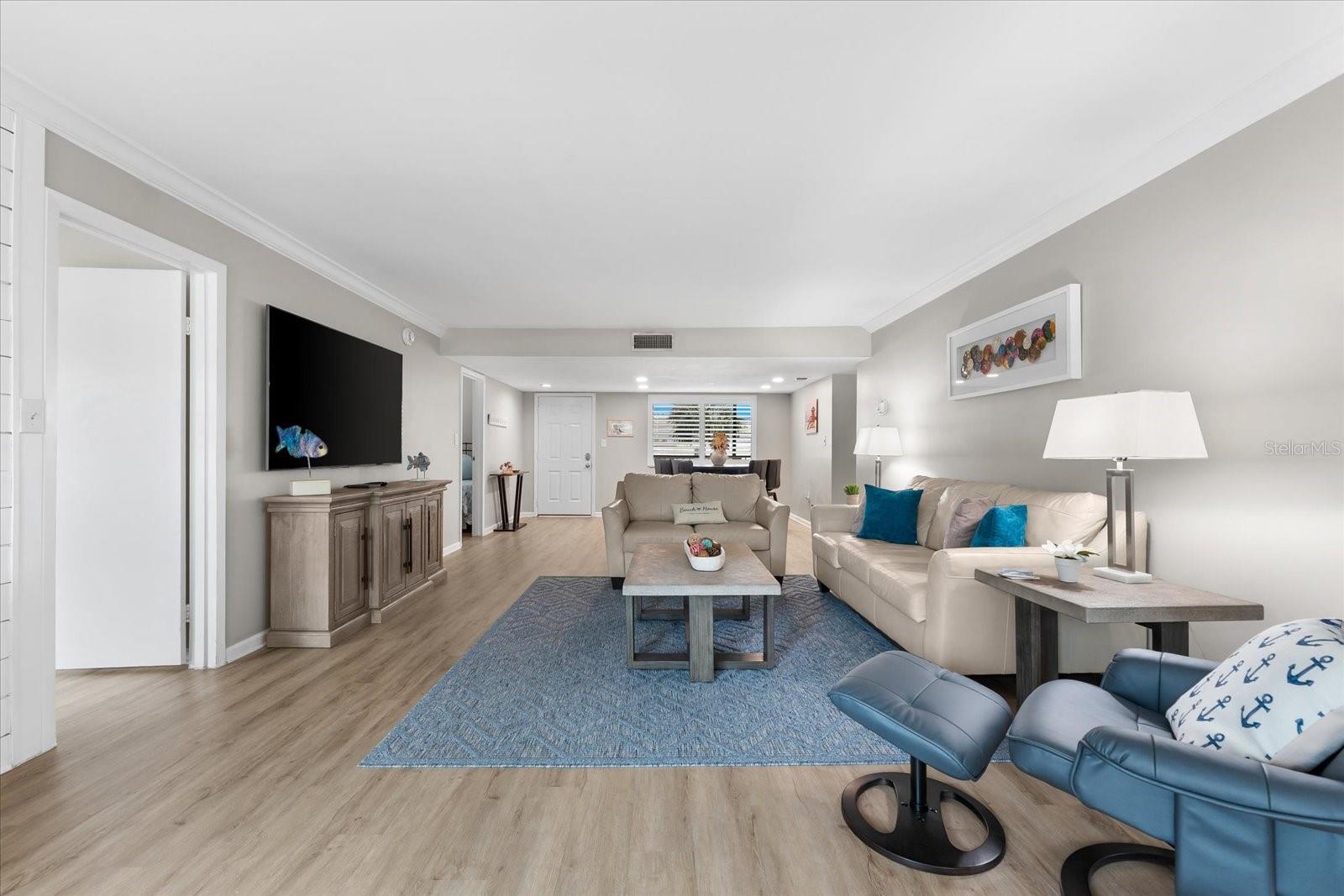 PRICE IMPORVEMENT OF $40,000!! Beachfront Luxury Awaits at 101, El Presidente, Siesta Key located directly on the pristine silicon sand of Crescent Beach in the prestigious El Presidente complex. Step into coastal elegance and direct access with this beautifully remodeled two-bedroom, two-bathroom condo, 1766 sq ft gross living area, one of only 5 “Diplomat” models in this 48-unit Condominium. Considered a first-floor unit, 101 sits atop the dedicated parking area at ground level. A single short flight of stairs to your front door or elevator access. Perfect for families and guests, the dedicated raised walkways provide safe and secure access to the gulf side pool and beach access. The perfect beachfront retreat or investment property. El President features exclusive gulf coast living, resort-style amenities: heated pool, tennis court, pickleball area, and a owner fitness center. The gated complex with professional on-site management, allowing weekly rentals for exceptional rental income potential. Remodeled over the past 18 months in a contemporary, yet comfortable modern vibe, 101 updates feature a beautiful and large new kitchen, new appliances, granite countertops and an open attached private dining area for those special family and entertainment meals! Other updates include an upgraded electric panel service, new water heater (2022), all new furniture and large 85” TV in the main living room area. New master bedroom and Lanai furniture (2025). Unit 101 experienced no damage not even a drop of water, from the recent storms. Following the storms, a new highly efficient HVAC system and air handling system was installed in December 2024. magnificent HURRICAINE WINDOWS AND GLASS DOORS (4 sets) WERE INSTALLED January 2025! Safe Efficient and Quiet peace – wow ! Location Location Location ! Conveniently located near the south bridge for easy and fast access on and off the Key, and a short 5-minute walk to grocery, dining options, and cup or bowl of the famous clam chowder at Captain Curts. Free trolly services are available to Siesta Key Village and it’s lively dining and shopping scene at the north end of the Key. Downtown Sarasota’s cultural attractions are only minutes away, featuring the Ringling Museum of Art and the Sarasota Opera House to name a few. A partial assessment to support storm clean up efforts has already been paid, and the balance will be paid by the seller. A Milestone project has been underway well prior to the storms of 2024. Information and an update are available upon request. Whether you are searching for a luxurious vacation home or a high-performing rental investment, Unit 101 at El Presidente offers the best of Siesta Key living. Own a slice of paradise on the Gulf Coast! Call today for your private showing and experience this remarkable beachfront property firsthand!