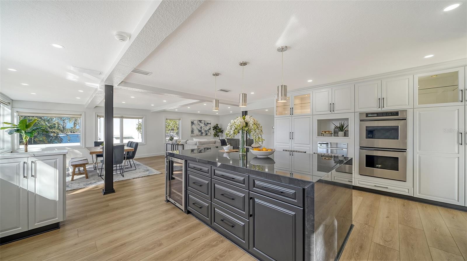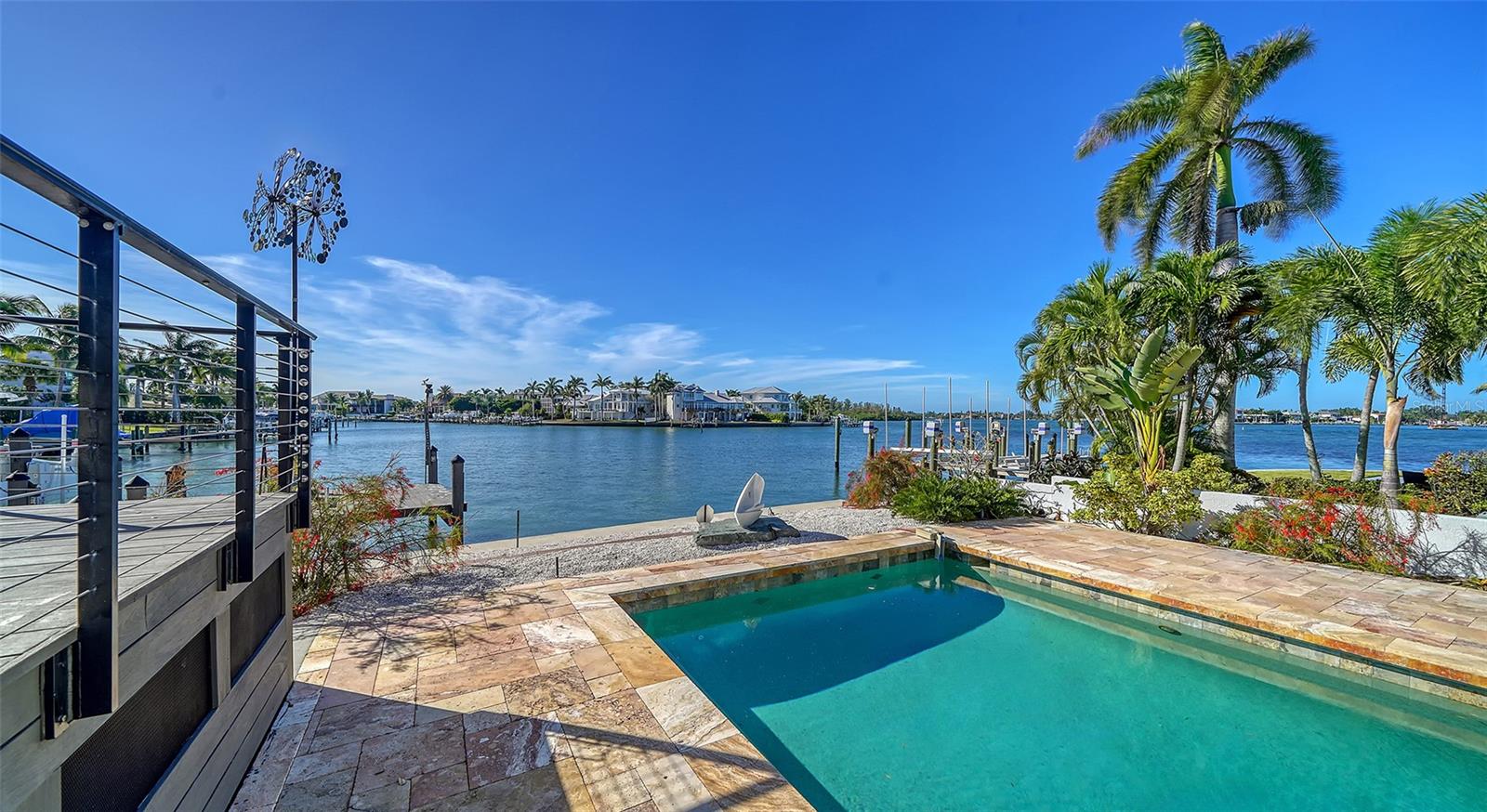 Experience the pinnacle of waterfront luxury and convenience in this updated Sarasota bayfront home. Located in the highly sought after West of Trail area, this gated property spans half an acre and offers 160 feet of waterfront, newer seawall, and space for a boat dock and lift, perfect for boating enthusiasts seeking quick access to open waters. Minutes from Siesta Key Beach, Sarasota's Downtown District, shopping, dining, and A+ schools, this home blends privacy with prime accessibility. Featuring a new metal roof (2022), hurricane-impact windows, the residence is designed for the comforts of modern living. Inside, high ceilings, panoramic bay views, and an elevator enhance the spacious layout. The remodeled kitchen features stone countertops, waterfall quartzite island, Sub-Zero refrigerator, double oven, wine cooler, and custom cabinetry. The owner’s suite offers stunning water views, a custom walk-in closet, and a resort-style ensuite. Outdoors, a 45-foot heated saltwater pool and serene garden create a private oasis. 1410 Siesta Drive is the epitome of Sarasota’s waterfront lifestyle, combining luxury, functionality, and an unmatched location.