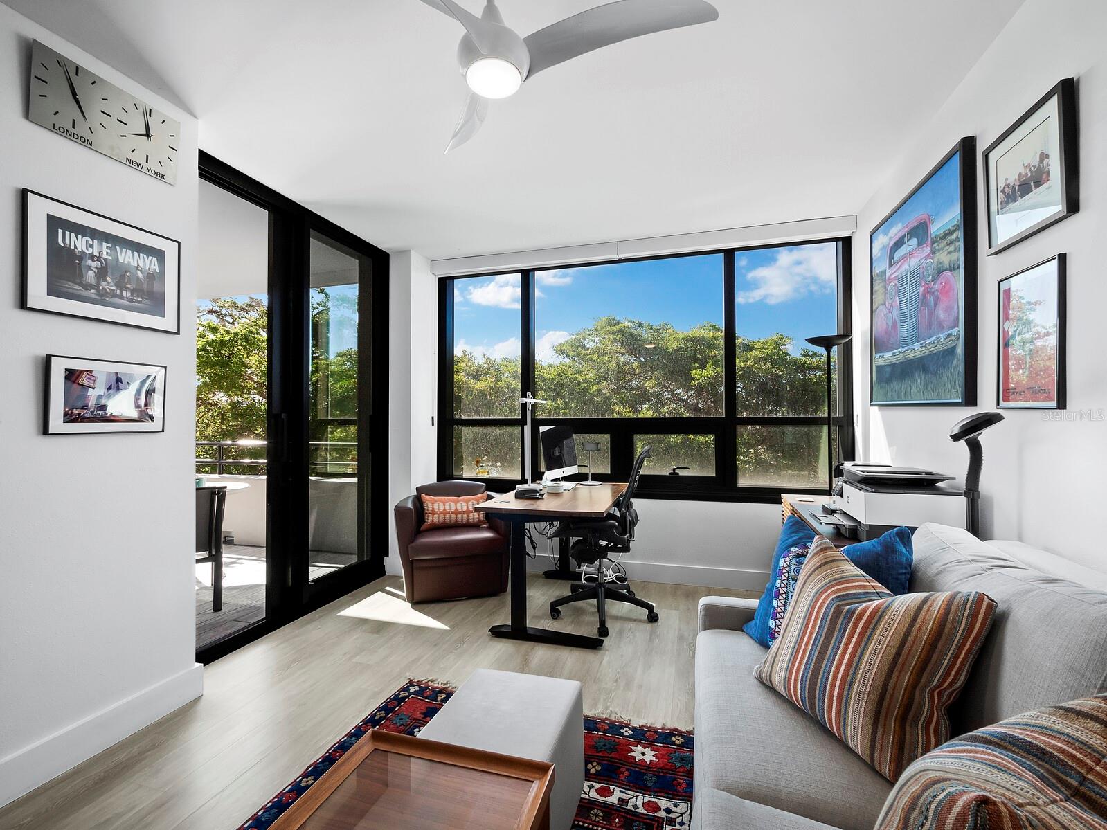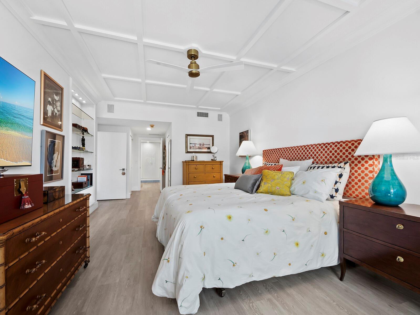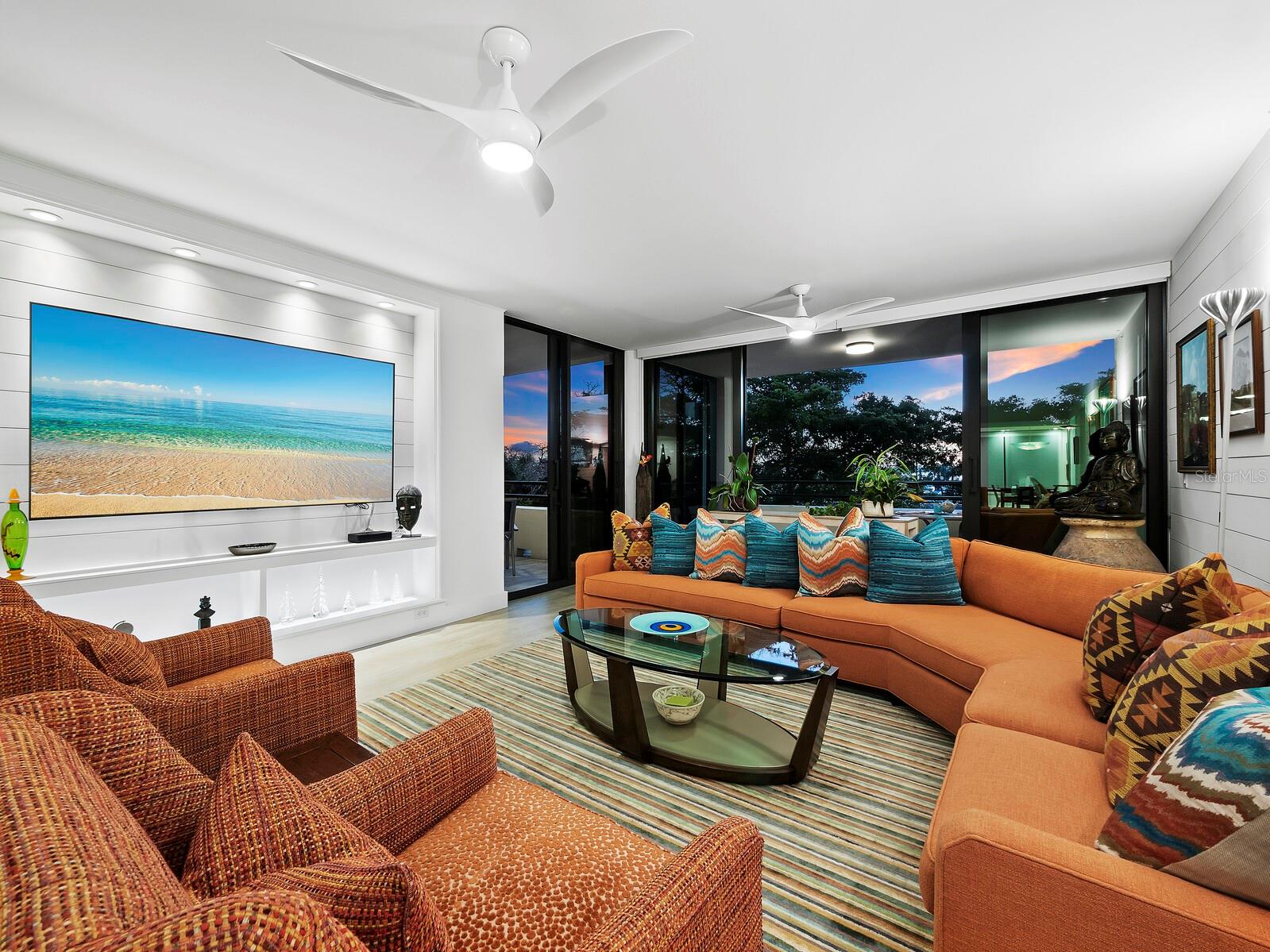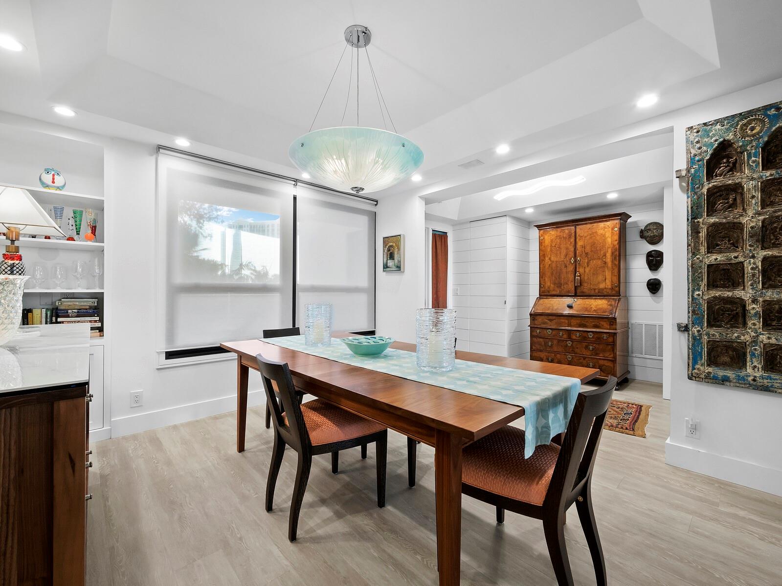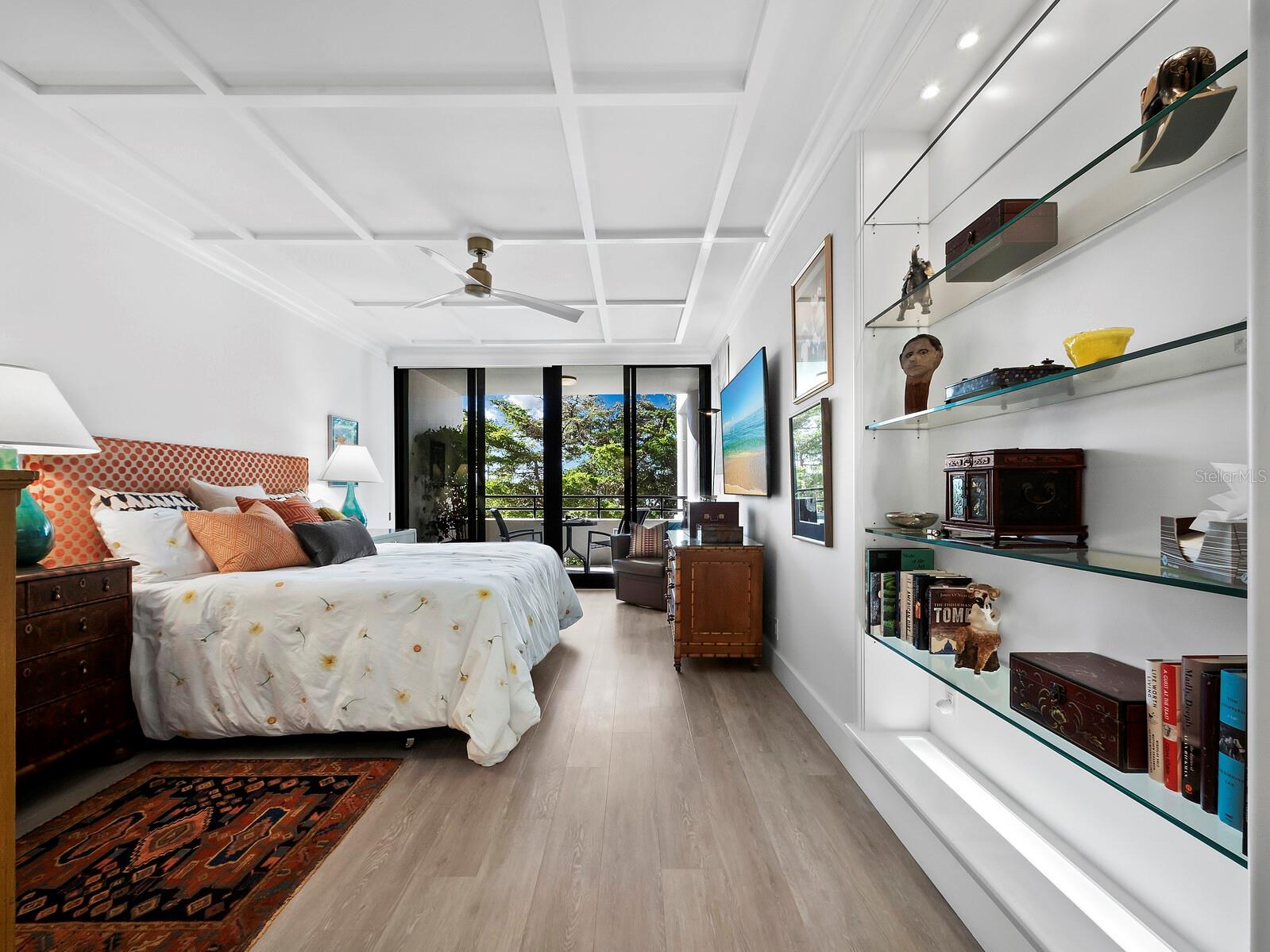 Experience a luxurious downtown Sarasota lifestyle in the highly coveted Bay Plaza condominium—with its timeless architectural appeal designed by renowned architect Tim Siebert. This location—this building—has everything one needs to immediately enjoy the convenience of downtown living. Sarasota is well-known as the cultural and creative coast of Florida. When you choose to live at Bay Plaza you are steps from enjoying performances by the Sarasota Opera or shows at one of Florida Studio Theater’s 5 stages, or for intellectual stimulation on global issues, there is SILL, Sarasota Institute for Lifetime Learning. Enjoy numerous restaurants and cafes with outdoor dining availability—all within steps of your front door. This handsomely renovated 2nd floor residence offers delicate views of Sarasota Bay through the airy structure of Shady Lady black olive trees lining the street below. The unit 204’s interior vibe is coastal contemporary, with shiplap walls and lighted insets, light wood-grained vinyl flooring throughout, LED lighting, ceiling fans and generous storage. The recent installation of new hurricane impact sliding doors, as well as windows, will provide peace of mind during inclement weather. You will appreciate the brightly updated kitchen with quartzite counters and designer backsplash, shaker cabinetry, and space to eat in casually, or possible other use as a den. The more formal dining area has a beautiful painted glass chandelier and easily accommodates up to 10 guests. The large living room has built in recessed cabinetry and gorgeous natural light from the two balconies. The owner's ensuite bath includes a large double floating vanity and backlit mirror, newly installed matching cabinetry across one wall for added storage, and separate shower/water closet with Toto toilet. In the suite, there are two walk in closets plus a linen closet. A private terrace is accessed from the primary suite, and new electronic roll-down shades provide complete privacy. The large guest suite on the opposite side of the apartment has access to the main terrace; there is a walk-in closet in the adjacent hallway, and a large guest bath with shower and laundry closet. Residents enjoy 5-star services, amenities, and security, including a full-service concierge, 24-hour valet parking, on-site management and maintenance, bike storage, large lobby with grand piano, well-equipped fitness center, locker rooms, each with sauna and steam, lap pool and hot tub, EV charging stations, media room, separate gathering room, catering kitchen, library. For the health enthusiasts, you are a short walk to the Ringling Bridge or enjoy Yoga at The Bay Park or nearby Marie Selby Botanical Garden. With a well-managed association and this impeccable building, you can immediately enjoy the lifestyle afforded by true downtown living at Sarasota’s Bay Plaza.