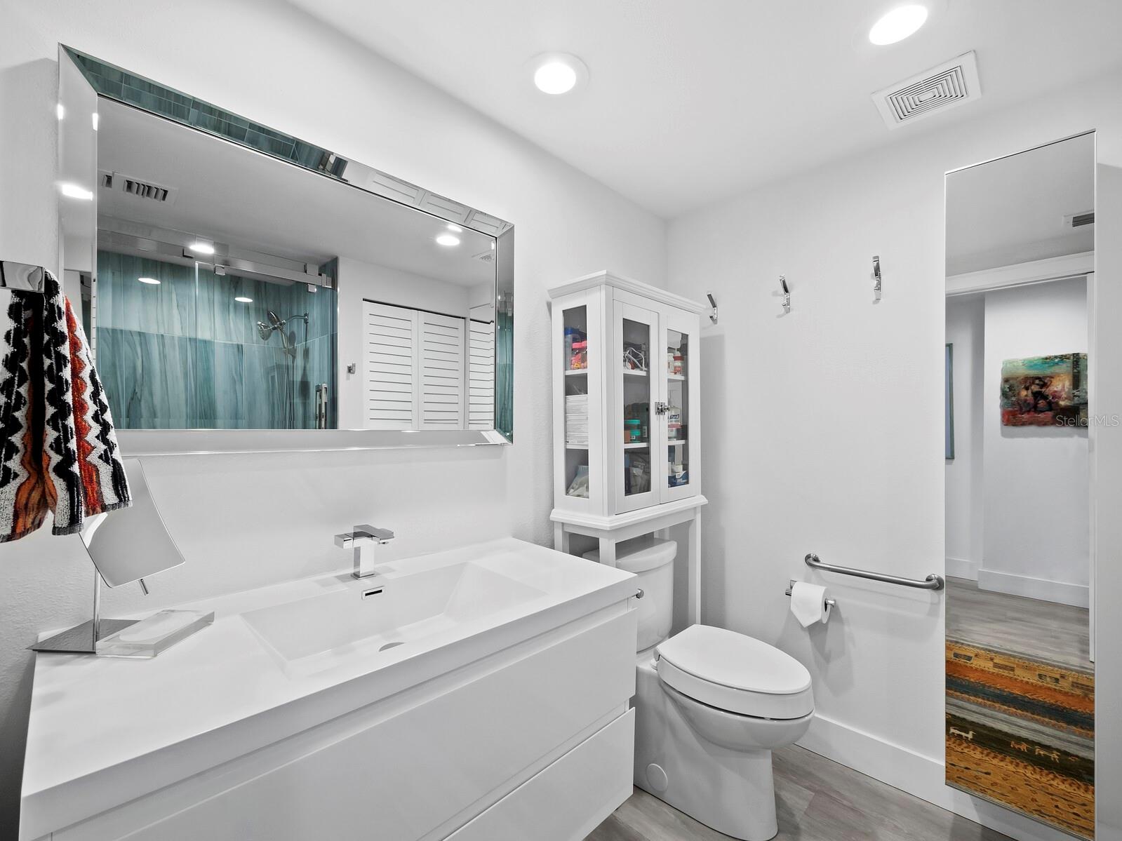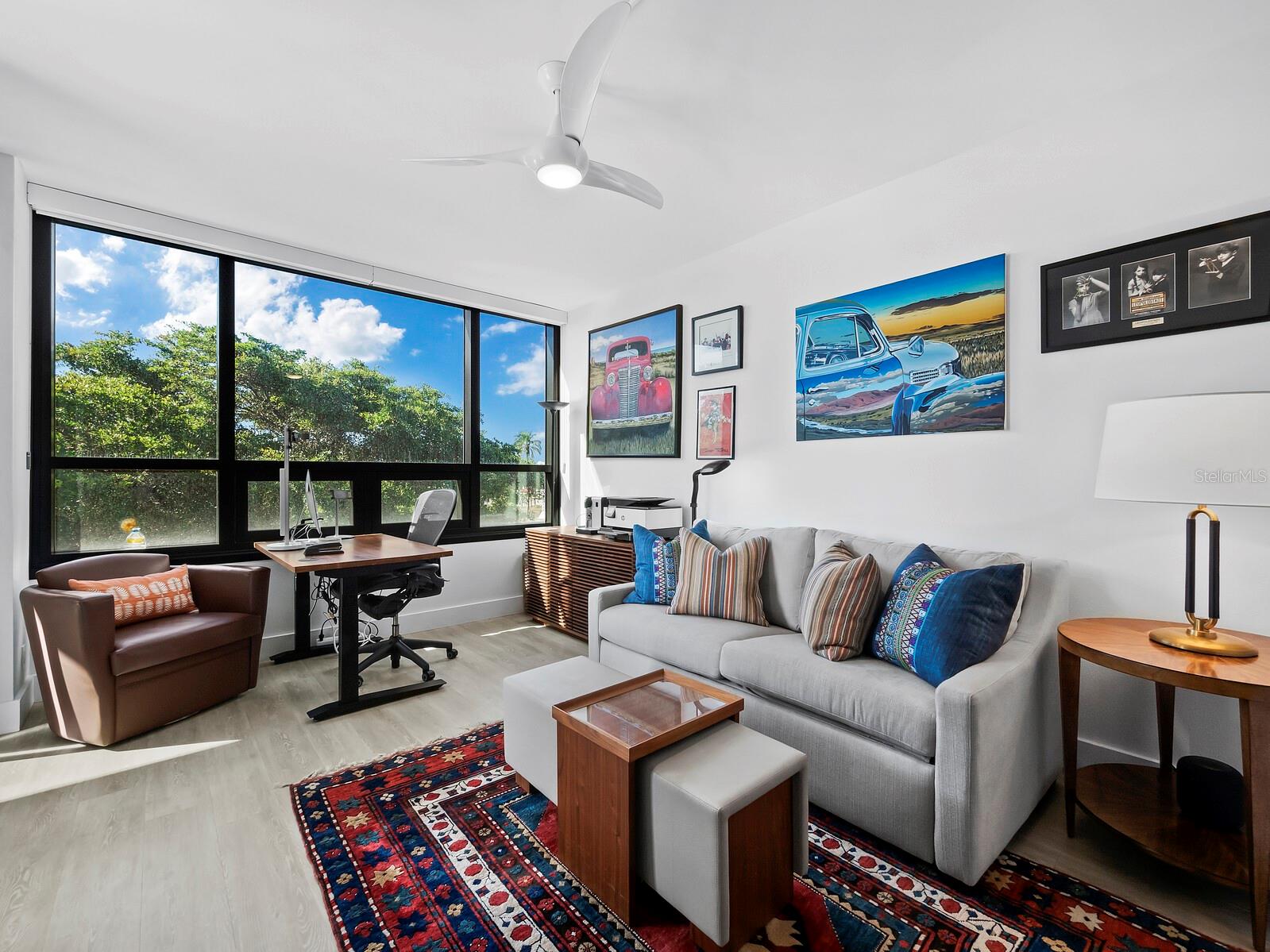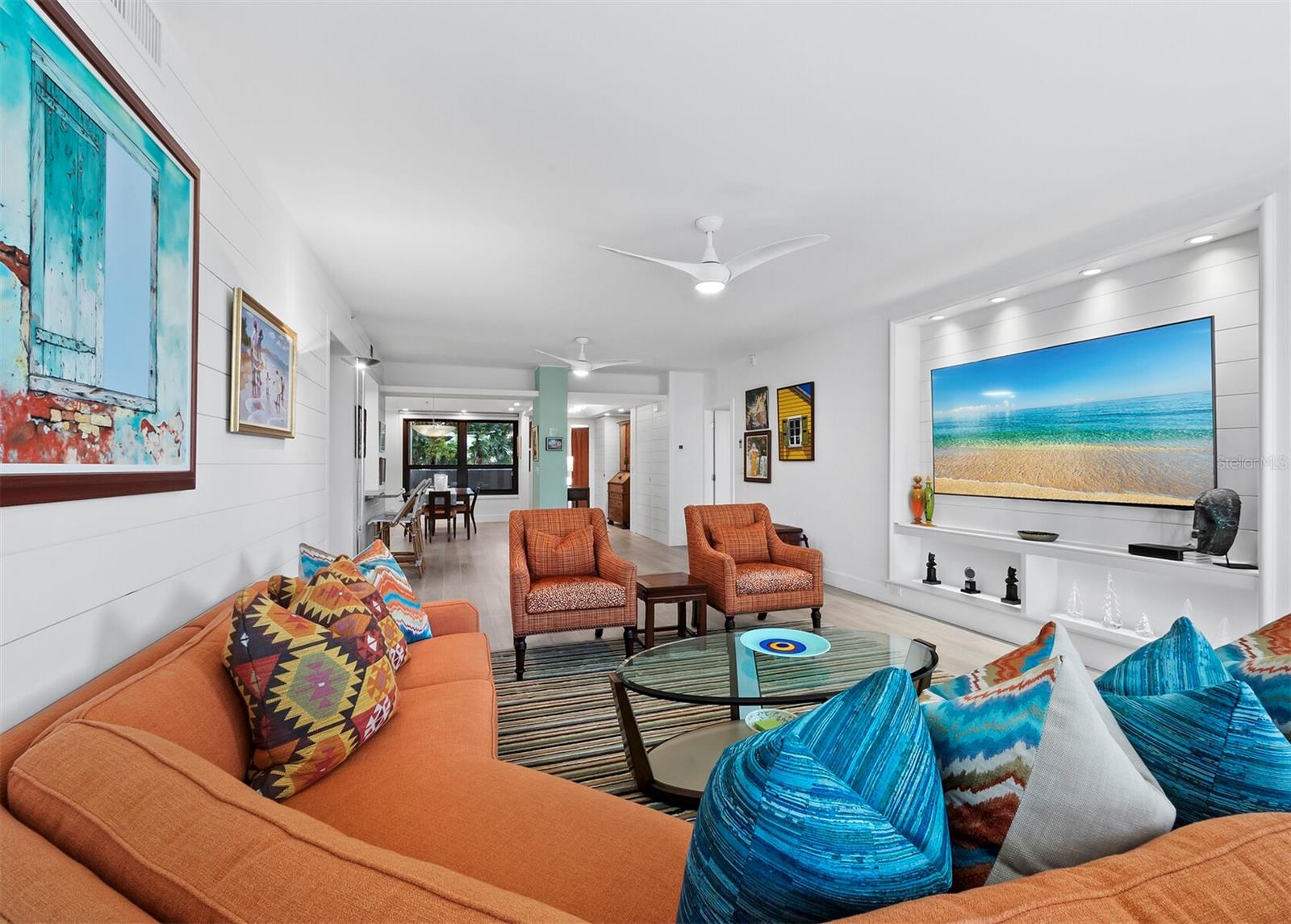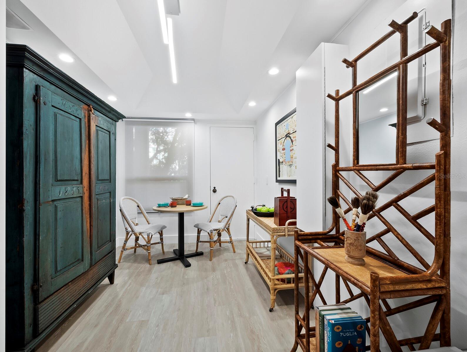 Experience a luxurious downtown Sarasota lifestyle in the highly coveted Bay Plaza condominium—with its timeless architectural appeal designed by renowned architect Tim Siebert. This location—this building—has everything one needs to immediately enjoy the convenience of downtown living. Sarasota is well-known as the cultural and creative coast of Florida. When you choose to live at Bay Plaza you are steps from enjoying performances by the Sarasota Opera or shows at one of Florida Studio Theater’s 5 stages, or for intellectual stimulation on global issues, there is SILL, Sarasota Institute for Lifetime Learning. Enjoy numerous restaurants and cafes with outdoor dining availability—all within steps of your front door. This handsomely renovated 2nd floor residence offers delicate views of Sarasota Bay through the airy structure of Shady Lady black olive trees lining the street below. The unit 204’s interior vibe is coastal contemporary, with shiplap walls and lighted insets, light wood-grained vinyl flooring throughout, LED lighting, ceiling fans and generous storage. The recent installation of new hurricane impact sliding doors, as well as windows, will provide peace of mind during inclement weather. You will appreciate the brightly updated kitchen with quartzite counters and designer backsplash, shaker cabinetry, and space to eat in casually, or possible other use as a den. The more formal dining area has a beautiful painted glass chandelier and easily accommodates up to 10 guests. The large living room has built in recessed cabinetry and gorgeous natural light from the two balconies. The owner's ensuite bath includes a large double floating vanity and backlit mirror, newly installed matching cabinetry across one wall for added storage, and separate shower/water closet with Toto toilet. In the suite, there are two walk in closets plus a linen closet. A private terrace is accessed from the primary suite, and new electronic roll-down shades provide complete privacy. The large guest suite on the opposite side of the apartment has access to the main terrace; there is a walk-in closet in the adjacent hallway, and a large guest bath with shower and laundry closet. Residents enjoy 5-star services, amenities, and security, including a full-service concierge, 24-hour valet parking, on-site management and maintenance, bike storage, large lobby with grand piano, well-equipped fitness center, locker rooms, each with sauna and steam, lap pool and hot tub, EV charging stations, media room, separate gathering room, catering kitchen, library. For the health enthusiasts, you are a short walk to the Ringling Bridge or enjoy Yoga at The Bay Park or nearby Marie Selby Botanical Garden. With a well-managed association and this impeccable building, you can immediately enjoy the lifestyle afforded by true downtown living at Sarasota’s Bay Plaza.