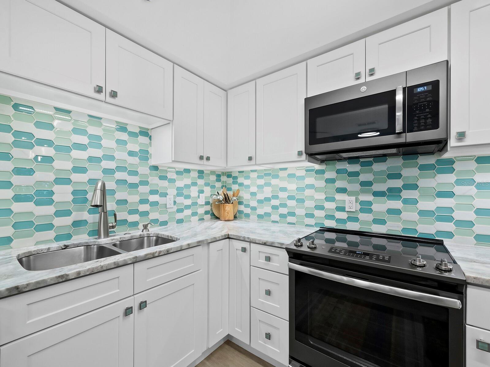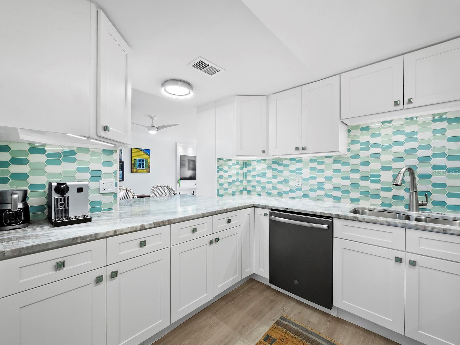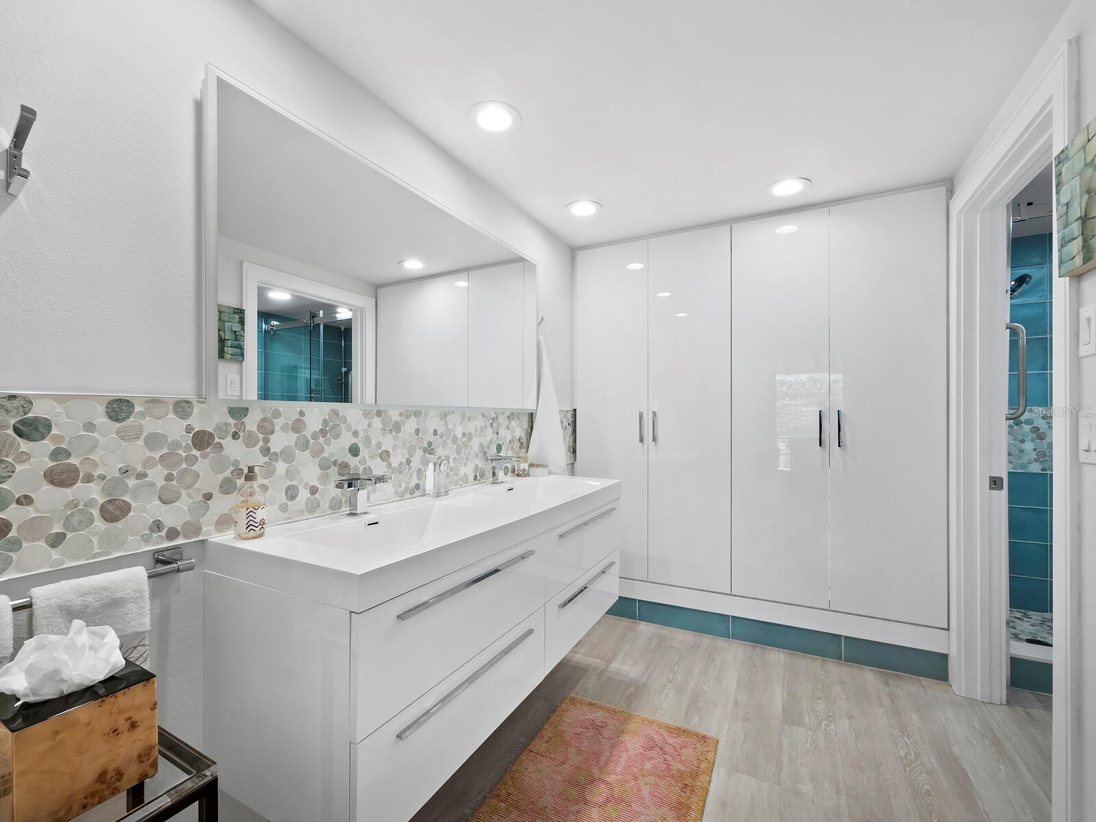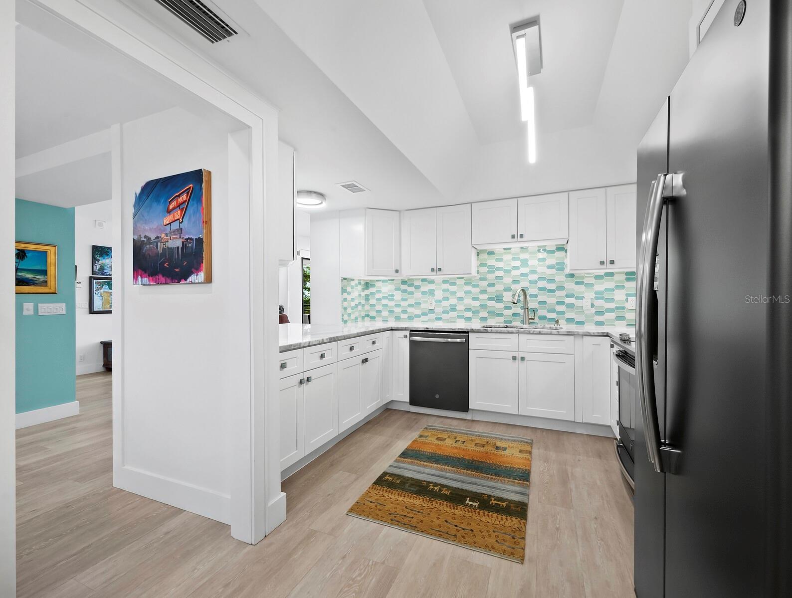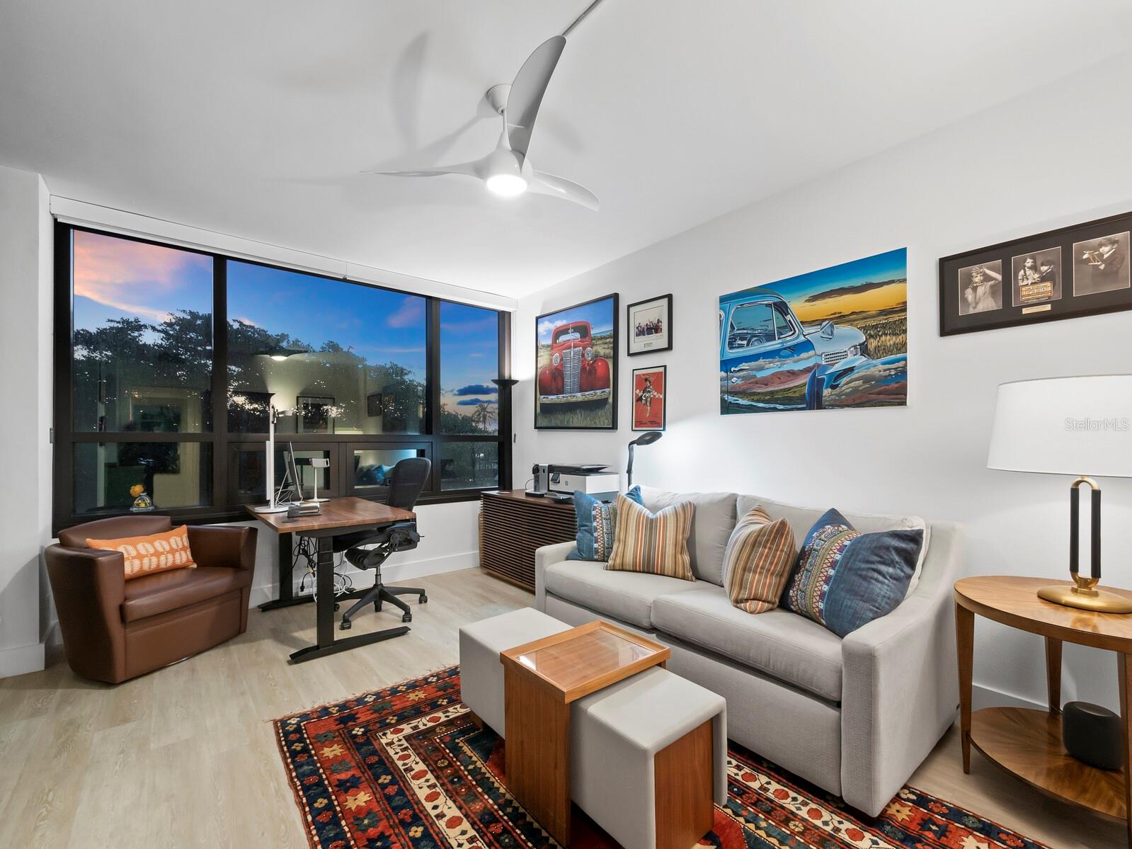 Experience a luxurious downtown Sarasota lifestyle in the highly coveted Bay Plaza condominium—with its timeless architectural appeal designed by renowned architect Tim Siebert. This location—this building—has everything one needs to immediately enjoy the convenience of downtown living. Sarasota is well-known as the cultural and creative coast of Florida. When you choose to live at Bay Plaza you are steps from enjoying performances by the Sarasota Opera or shows at one of Florida Studio Theater’s 5 stages, or for intellectual stimulation on global issues, there is SILL, Sarasota Institute for Lifetime Learning. Enjoy numerous restaurants and cafes with outdoor dining availability—all within steps of your front door. This handsomely renovated 2nd floor residence offers delicate views of Sarasota Bay through the airy structure of Shady Lady black olive trees lining the street below. The unit 204’s interior vibe is coastal contemporary, with shiplap walls and lighted insets, light wood-grained vinyl flooring throughout, LED lighting, ceiling fans and generous storage. The recent installation of new hurricane impact sliding doors, as well as windows, will provide peace of mind during inclement weather. You will appreciate the brightly updated kitchen with quartzite counters and designer backsplash, shaker cabinetry, and space to eat in casually, or possible other use as a den. The more formal dining area has a beautiful painted glass chandelier and easily accommodates up to 10 guests. The large living room has built in recessed cabinetry and gorgeous natural light from the two balconies. The owner's ensuite bath includes a large double floating vanity and backlit mirror, newly installed matching cabinetry across one wall for added storage, and separate shower/water closet with Toto toilet. In the suite, there are two walk in closets plus a linen closet. A private terrace is accessed from the primary suite, and new electronic roll-down shades provide complete privacy. The large guest suite on the opposite side of the apartment has access to the main terrace; there is a walk-in closet in the adjacent hallway, and a large guest bath with shower and laundry closet. Residents enjoy 5-star services, amenities, and security, including a full-service concierge, 24-hour valet parking, on-site management and maintenance, bike storage, large lobby with grand piano, well-equipped fitness center, locker rooms, each with sauna and steam, lap pool and hot tub, EV charging stations, media room, separate gathering room, catering kitchen, library. For the health enthusiasts, you are a short walk to the Ringling Bridge or enjoy Yoga at The Bay Park or nearby Marie Selby Botanical Garden. With a well-managed association and this impeccable building, you can immediately enjoy the lifestyle afforded by true downtown living at Sarasota’s Bay Plaza.