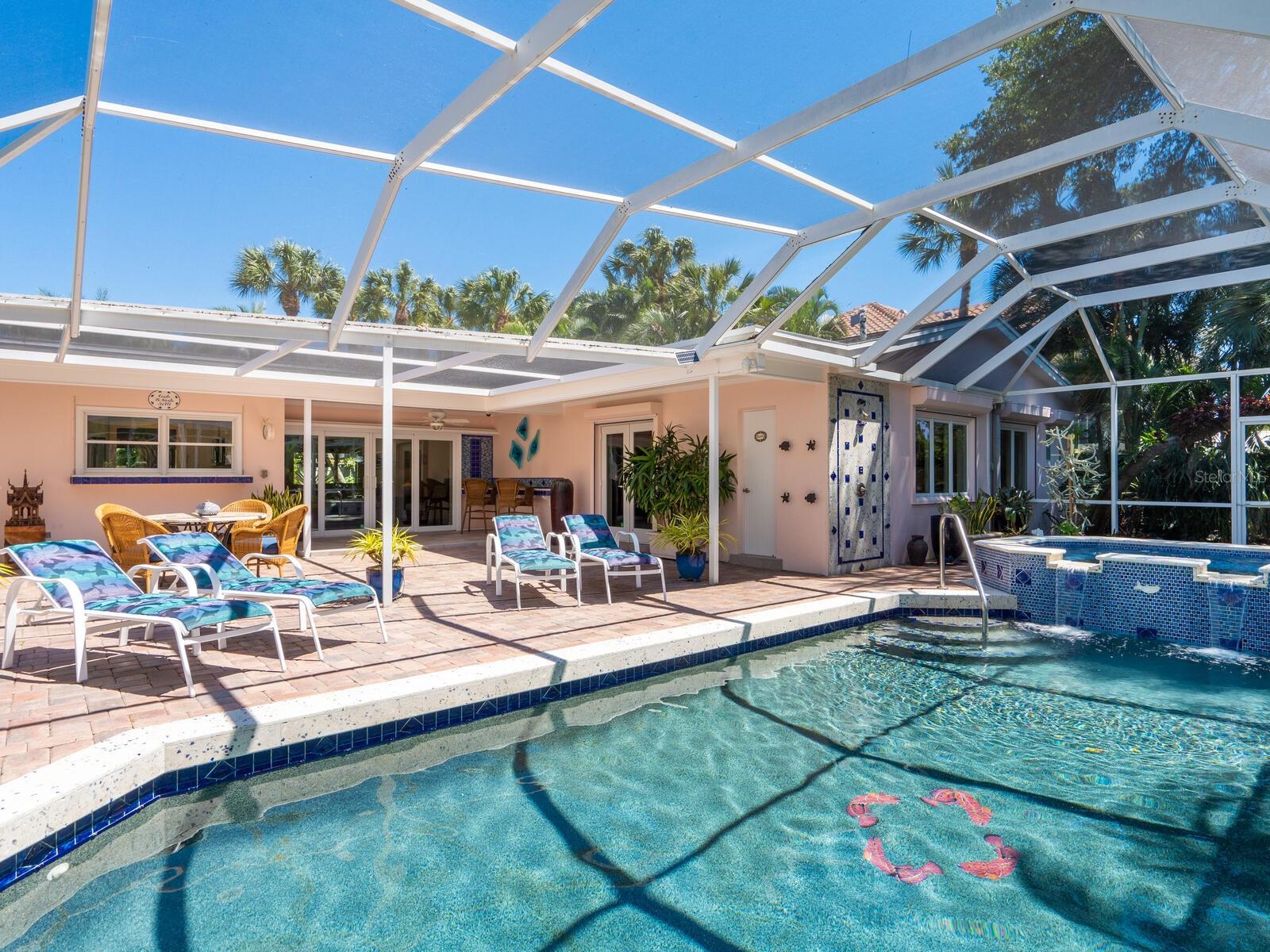 A fabulous boating water opportunity - $345,000 price reduction! Professionally remediated and ready for renovation or to build your new luxury home. Welcome to your private, gated garden oasis nestled on boating water in the heart of Siesta Key. Boasting a seamless blend of indoor-outdoor living spaces, this three-bedroom, two-and-a-half-bath residence was storm-damaged, remediated, sanitized, and ready for renovation. The open-concept design effortlessly guides you from room to room, with easy-care tile flooring enhancing the spaciousness. Picture-perfect views of the sparkling pool and lush gardens await. Entertaining is a delight in this home, with the expansive screened pool and spa as the focal point of outdoor gatherings. Bask in the Florida sunshine on the paver deck or seek shade under the covered lanai area — the choice is yours. Beyond the pool lies a sprawling, landscaped tropical yard that gently slopes towards the waterfront, offering a serene backdrop for relaxation or outdoor activities. Boating enthusiasts will relish the convenience of the 7,000-pound lift, providing easy access to Sarasota Bay, the Intracoastal Waterway, and the Gulf of Mexico. Whether you prefer kayaking, paddleboarding, or fishing, your waterfront haven provides endless opportunities for aquatic adventures. The floor plan offers a primary bedroom suite and bath, and two additional guest bedrooms. Indulge in the Bali-inspired guest bath with its indoor-outdoor shower, adding a touch of tropical paradise. Beyond the confines of your oasis, explore the world-renowned Siesta Beach, just moments away, where powder-white sands and breathtaking sunsets await. Discover the vibrant culture of nearby Siesta Village, with its eclectic boutiques and restaurants, or venture to downtown Sarasota for a taste of urban sophistication and cultural richness. With its unparalleled location and laid-back elegance, this property offers the perfect sanctuary to embrace the carefree beach lifestyle you've always dreamed of. Don't miss your chance to make this exquisite retreat your own — and embark on a journey to waterfront luxury living on Siesta Key.