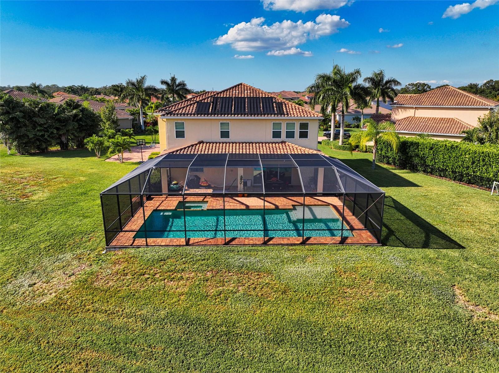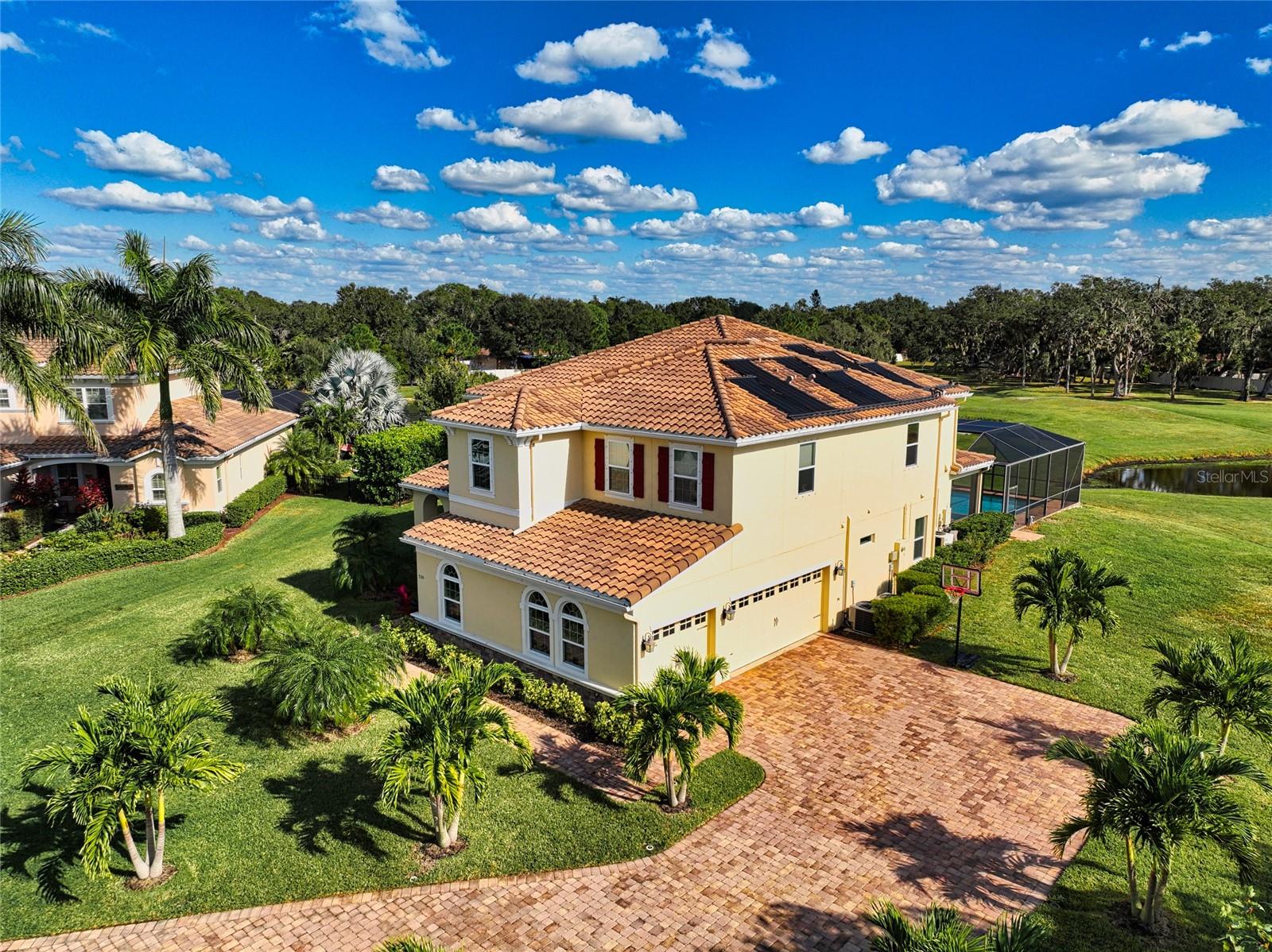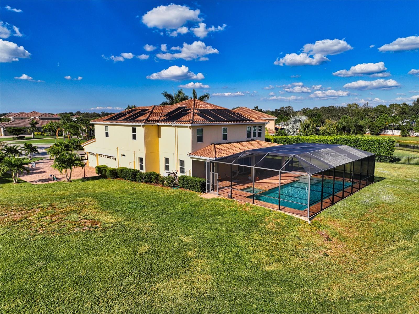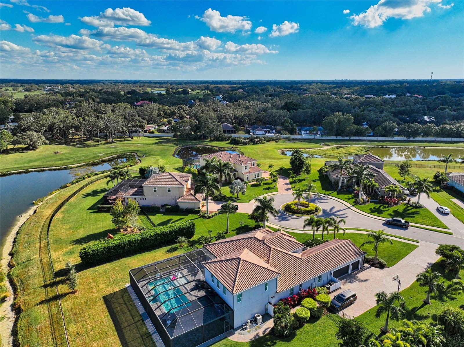 **New Price Adjustment! Luxury Home on 3.76 Acres in Gated Community** Welcome to Vilano, located East of I-75, is known for its spacious custom-built homes, large lots, beautifully landscaped surroundings. and offers a unique blend of luxury, tranquility, and convenience. Key Features: Luxury-Custom Built home: Sits on a 3.76-acre cul-de-sac lot. / 5-Bedrooms / 4.5-Baths / 3-Car Garage / Very desirable Gourmet Kitchen / Large Paver Pool Patio. The expansive outdoor space includes the largest swimming pool in the development—a solar-heated, salt pool measuring 44' x 18'. The pool area, with perfect sun orientation, complemented by a spacious lanai, great for both relaxing and entertaining. Step inside to discover a thoughtfully designed floor plan that combines elegance with functionality. The first floor features an expansive open layout, highlighted by a gourmet kitchen complete with granite countertops, a desk area, a pantry, and a butler's pantry. The great room flows seamlessly into the dining room, creating an inviting space for family gatherings and formal entertaining. Also on the first floor are a private office, a guest bath, and a bedroom with an en suite bath, which provide versatile living options. A conveniently located laundry room and generous storage areas add to the home's practicality. Upstairs, you'll find four additional spacious bedrooms, three of which feature en suite baths and walk-in closets. A large living/recreation room provides ample space for family activities or a private retreat. Crown molding throughout the home adds a touch of sophistication, enhancing the luxurious ambiance. This property is located near top-rated schools, convenient shopping, professional services, and a major hospital, ensuring that all your needs are met. Downtown Sarasota and its world-famous beaches are just a short 20-minute drive away, making this property a blend of luxury and convenience. The oversized 3-car garage offers additional storage and versatile space for work or recreation. This home truly stands out for its expansive cul de sac lot, luxurious amenities, and prime, peaceful location. Don't miss the opportunity to own this exceptional property. There is a $480.00 Buyer Capital Contribution due at closing. This home is not in a flood zone and has never experienced flooding?