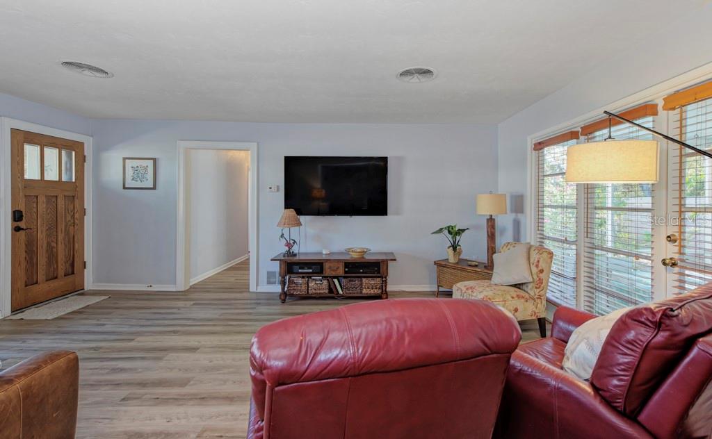 Welcome to this charming home perfectly situated in an excellent location near some of Sarasota’s top attractions. This delightful property is nestled on an oversized corner lot, offering privacy and space with no HOA restrictions. Inside, you’ll find thoughtful updates, including a brand-new electrical box, a tankless water heater, a repiped plumbing system, and a durable metal roof, all designed to provide comfort and peace of mind. The living room and hallway feature newly installed floors, adding a fresh and modern touch to the interior. The kitchen is a chef’s dream with its gas range, while the covered patio is perfect for relaxing or entertaining. The home also features a flex room that could easily be turned into a fourth bedroom, offering additional living space to suit your needs. The property is fenced in, making it ideal for pets, outdoor activities, or added privacy. Additionally, a garage provides added convenience and storage. Best of all, this home is located just 8 miles from the world-renowned Siesta Key Beach, consistently ranked as one of the top beaches in the United States. Enjoy the best of Sarasota’s lifestyle with its vibrant arts scene, dining, and outdoor activities all within a short drive. This is a rare opportunity to own a beautifully updated home in the heart of Sarasota. Don’t miss it!