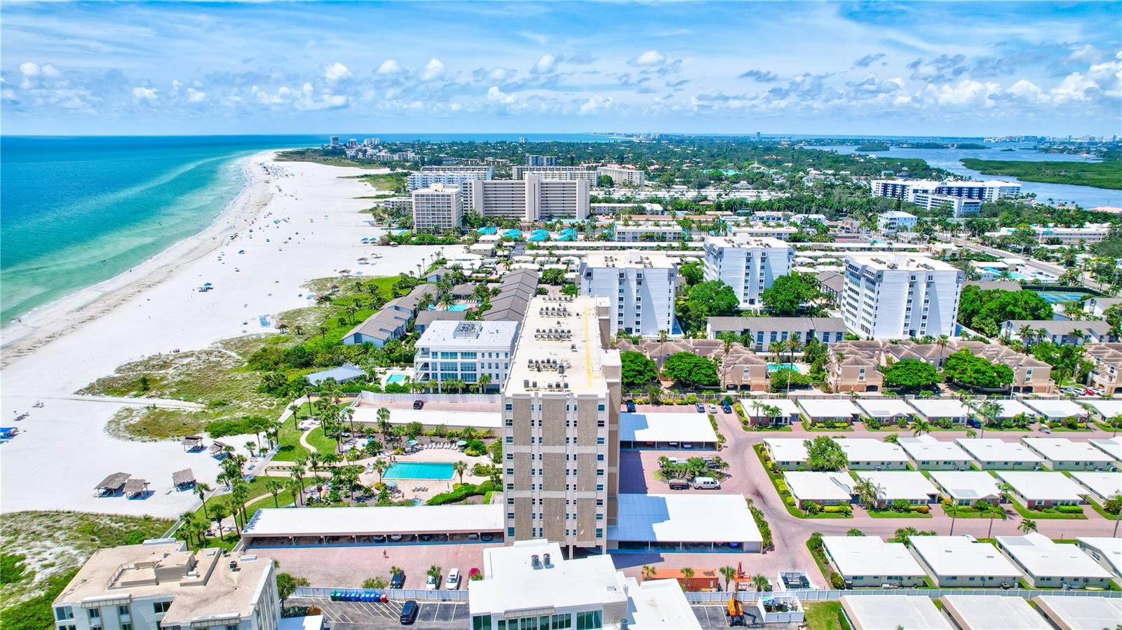 GREAT NEW PRICE! Tired of the long winters? Need a tranquil beach hideaway? Just want to get away to paradise? This spectacular 9th floor Penthouse on Siesta Key’s famous Crescent Beach is waiting for you. FULL Gulf of Mexico views ensure you’ll never miss a sunset from this stunning contemporary property. Enjoy your morning coffee or evening beverage while taking in the shimmering crystal sand and majestic blue water from Point of Rocks to the northern tip of Crescent Beach. This spacious one bedroom, one bath unit is the perfect beach getaway. An open floorplan allows you to take in the views from the living room, dining room and large, open kitchen. This unit’s generous size allows you to add a sleeper sofa or Murphy bed for family and friends. The oversized walk-in pantry can be reimagined as a second bath with entry from the hallway. Just bring your bathing suit and sunglasses as this beautiful unit is sold turnkey furnished. A new impact door was just installed and new refrigerator and 2023 microwave. The unit has impact windows, 2021 AC, and new glass railing for unobstructed beach views. In the bedroom you will find a 2023 king-sized bed, plenty of custom closet space and updated bathroom with walk-in shower. Your paradise is located in Horizons West, a gulf-to-bay community consisting of over 7-acres. The gulf side has 300 feet of deeded beach access, beach cabanas, a beachside pool and spa, and beachside grilling areas. There is a second pool adjacent to the community clubhouse. Explore the grounds and private intracoastal waterway park with day dock that is perfect for picnicking, fishing or just watching boats cruise by. Bayside is the perfect place to launch your kayaks and paddle boards to explore the mangroves. Use Siesta Key’s free trolley to partake in the Key’s exceptional dining, entertainment, and shopping. Come visit carefree living on Siesta Key!