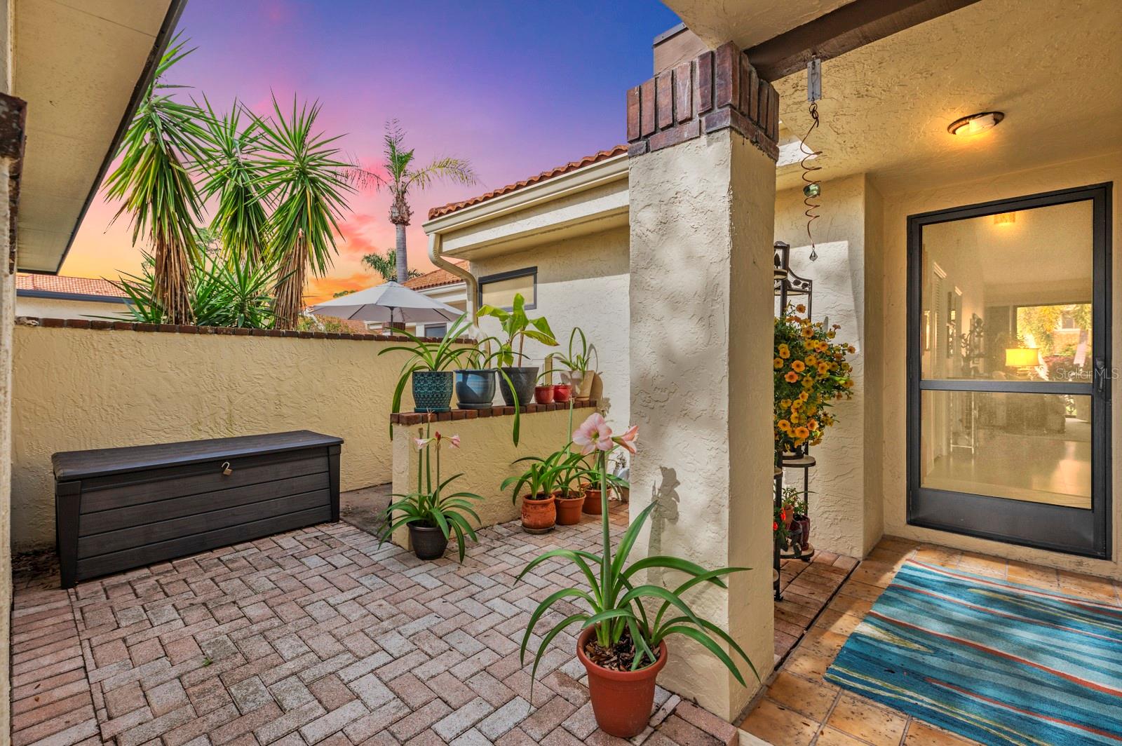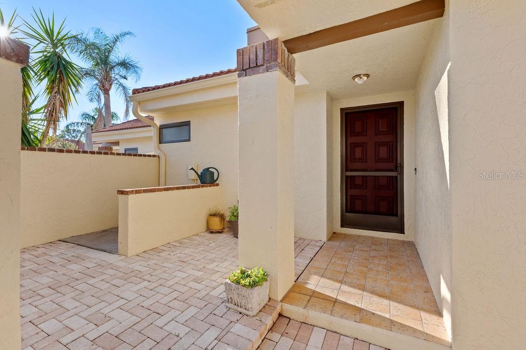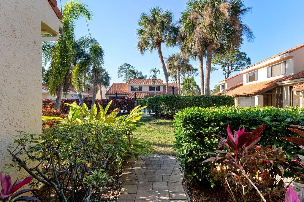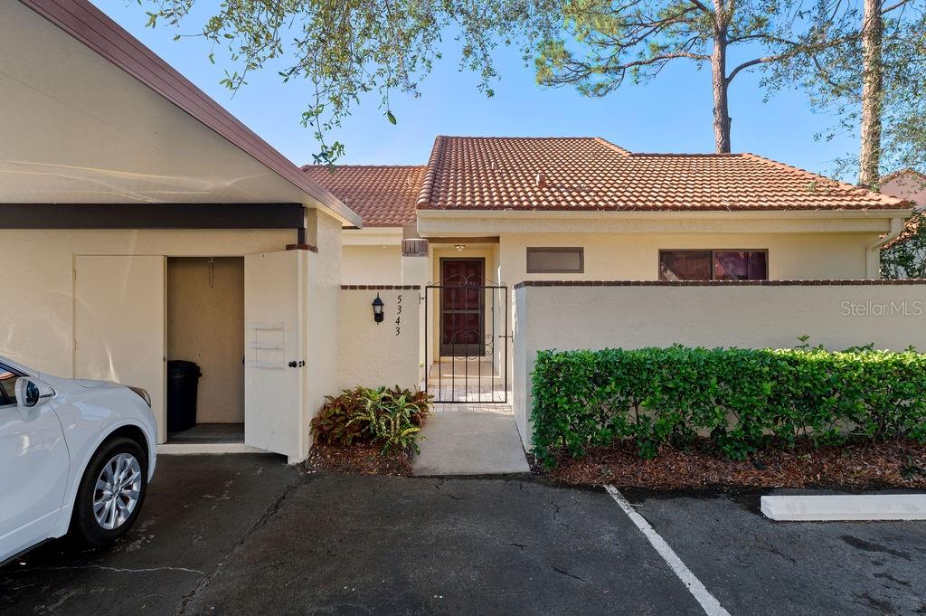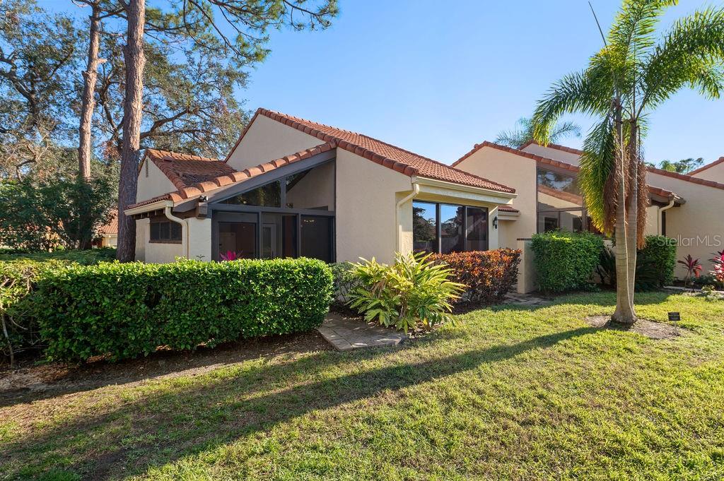 Discover the charm of the Huntingwood neighborhood, nestled in the heart of The Meadows. This exceptional 2-bedroom, 2-bathroom home offers a perfect blend of comfort, style, and low-maintenance living, ideal for embracing the Florida lifestyle. From the moment you enter, the vaulted ceilings and an airy, open layout invite you to enjoy a home designed for both relaxation and entertaining. The modernized kitchen showcases stone countertops and a breakfast bar that flows effortlessly into the living and dining areas, creating a welcoming space to gather. Step into the enclosed lanai, where tranquility abounds, offering the perfect spot to unwind or enjoy your morning coffee. The primary bedroom is your personal retreat, featuring a beautifully updated ensuite bath with granite countertops, double sinks, and a stunning walk-in shower with custom tile work. Open the doors to your private paver patio and savor peaceful moments outdoors. For added convenience, the home includes an interior laundry room, a covered carport with an attached storage closet, and plenty of guest parking. The front paver courtyard provides an inviting space for al fresco dining or casual get-togethers. And when it’s time to relax, the sparkling community pool is just steps away. Huntingwood provides a maintenance-free lifestyle, with recent updates including new roofs (2021) and freshly painted exteriors—all completed without special assessments. The Meadows community enhances your experience with an incredible array of amenities, including a junior Olympic pool, fitness center, pickleball courts, and 14 miles of scenic trails for walking or biking. Golf enthusiasts will appreciate the option to play at The Highlands and The Groves courses. Located just minutes from Sarasota’s vibrant downtown, this home offers quick access to world-class restaurants, arts, cultural venues, and the white sand beaches of Siesta Key. Whether you’re looking for outdoor adventure, a bustling social scene, or serene natural beauty, this location has it all. Experience the perfect balance of sophistication and leisure—schedule your private tour today and make this home in Huntingwood your own!
