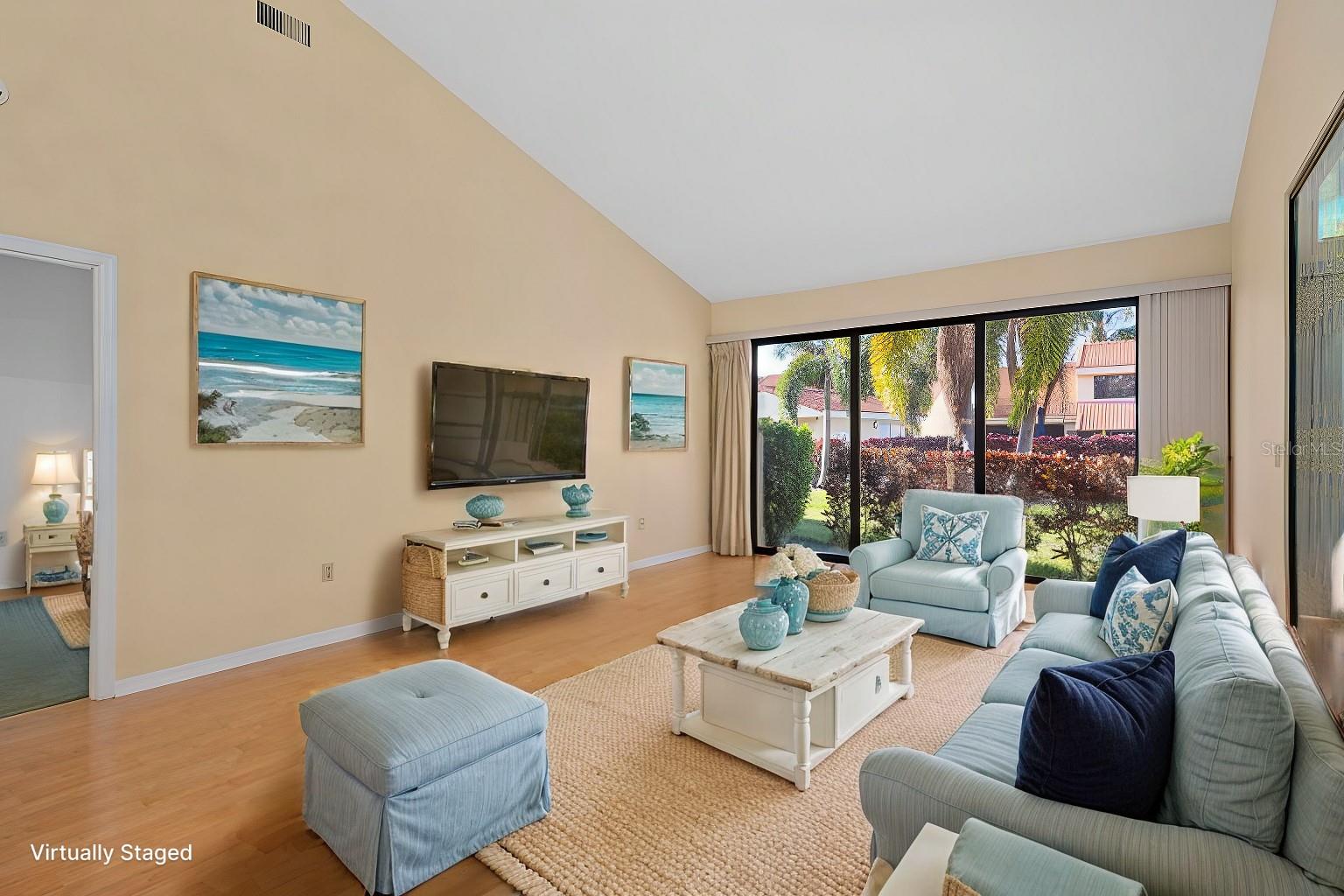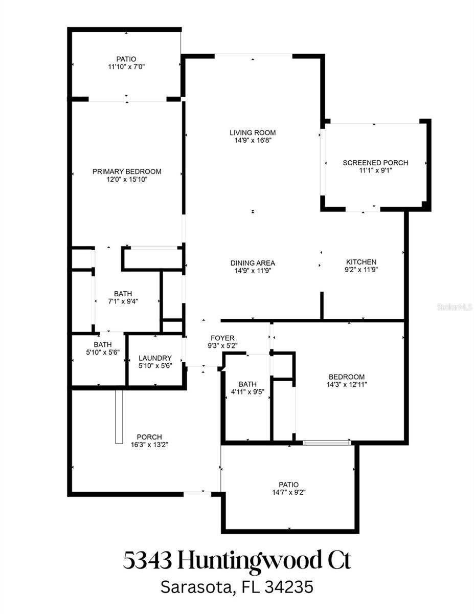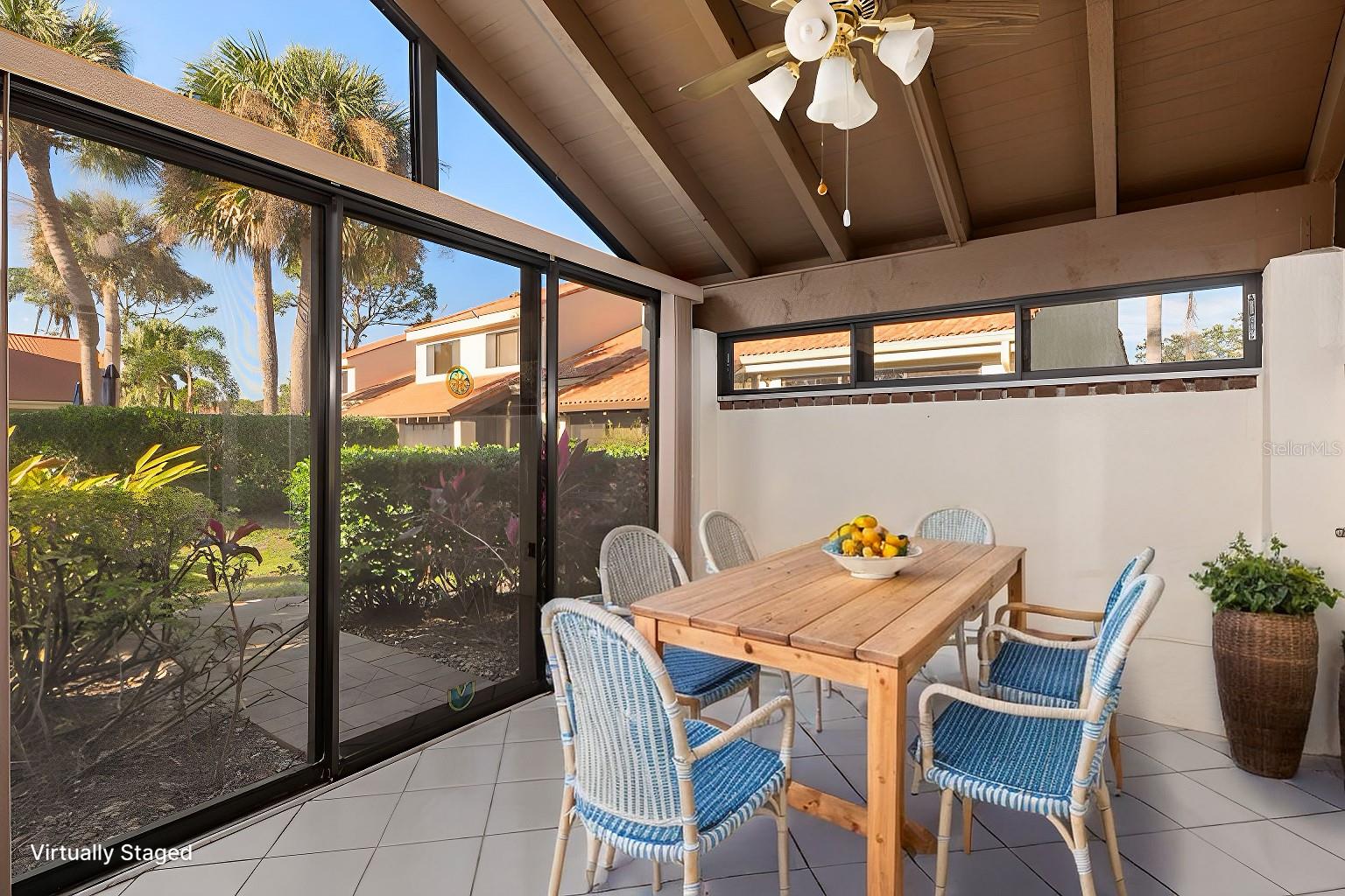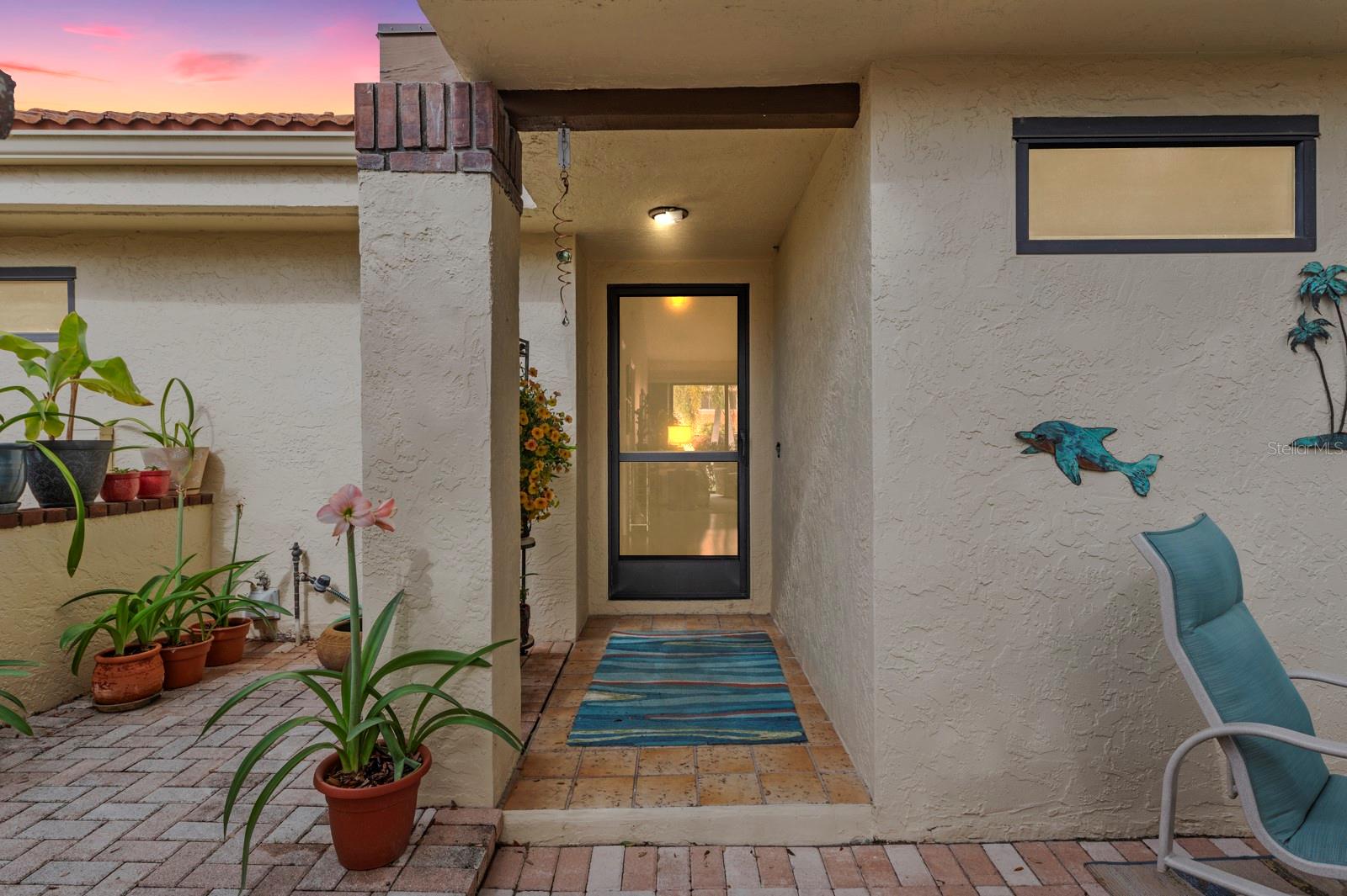 Discover the charm of the Huntingwood neighborhood, nestled in the heart of The Meadows. This exceptional 2-bedroom, 2-bathroom home offers a perfect blend of comfort, style, and low-maintenance living, ideal for embracing the Florida lifestyle. From the moment you enter, the vaulted ceilings and an airy, open layout invite you to enjoy a home designed for both relaxation and entertaining. The modernized kitchen showcases stone countertops and a breakfast bar that flows effortlessly into the living and dining areas, creating a welcoming space to gather. Step into the enclosed lanai, where tranquility abounds, offering the perfect spot to unwind or enjoy your morning coffee. The primary bedroom is your personal retreat, featuring a beautifully updated ensuite bath with granite countertops, double sinks, and a stunning walk-in shower with custom tile work. Open the doors to your private paver patio and savor peaceful moments outdoors. For added convenience, the home includes an interior laundry room, a covered carport with an attached storage closet, and plenty of guest parking. The front paver courtyard provides an inviting space for al fresco dining or casual get-togethers. And when it’s time to relax, the sparkling community pool is just steps away. Huntingwood provides a maintenance-free lifestyle, with recent updates including new roofs (2021) and freshly painted exteriors—all completed without special assessments. The Meadows community enhances your experience with an incredible array of amenities, including a junior Olympic pool, fitness center, pickleball courts, and 14 miles of scenic trails for walking or biking. Golf enthusiasts will appreciate the option to play at The Highlands and The Groves courses. Located just minutes from Sarasota’s vibrant downtown, this home offers quick access to world-class restaurants, arts, cultural venues, and the white sand beaches of Siesta Key. Whether you’re looking for outdoor adventure, a bustling social scene, or serene natural beauty, this location has it all. Experience the perfect balance of sophistication and leisure—schedule your private tour today and make this home in Huntingwood your own!