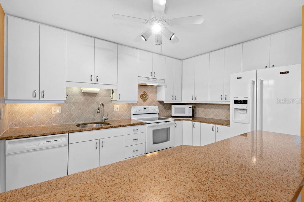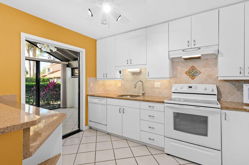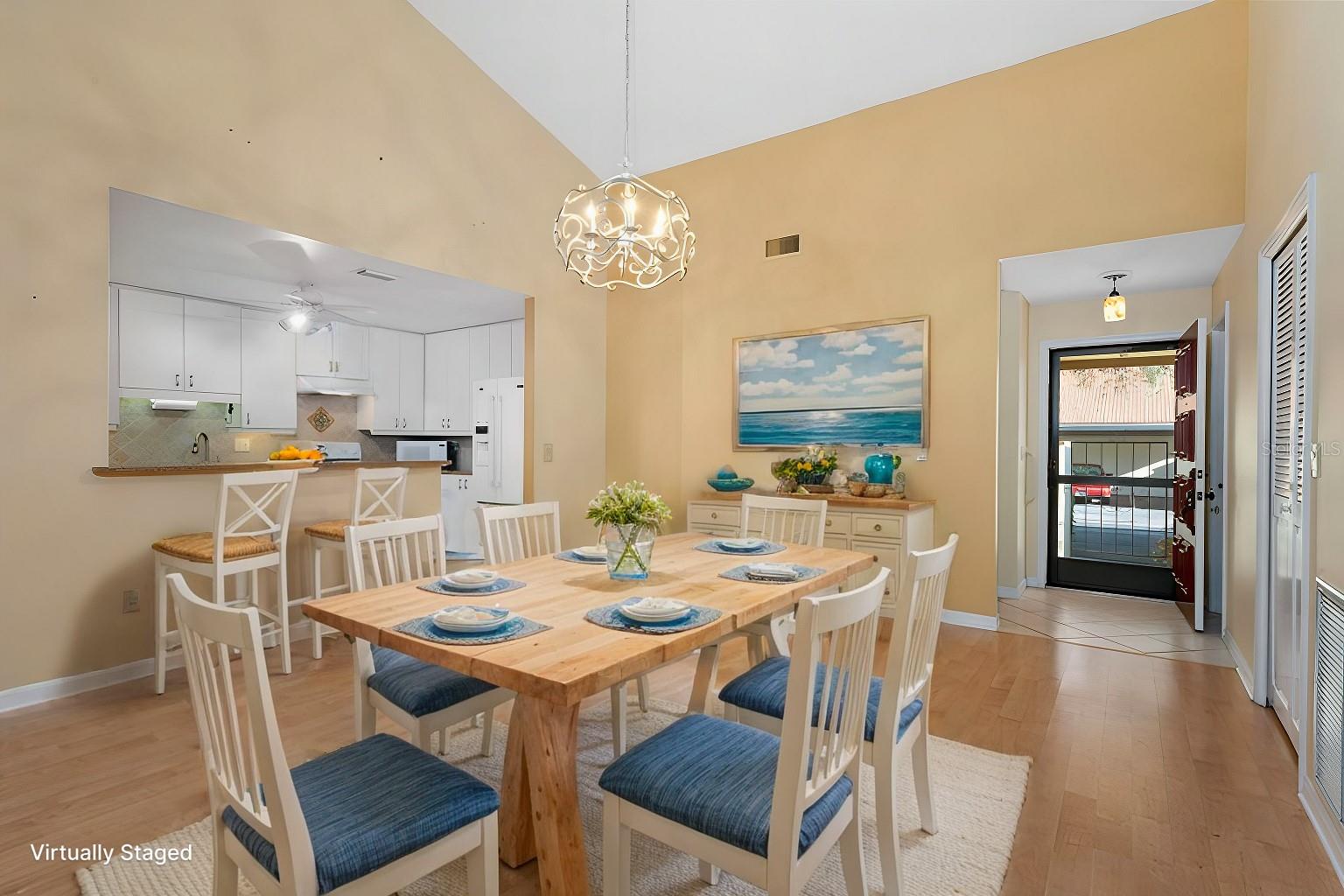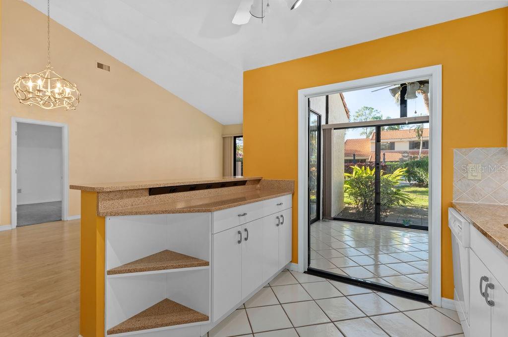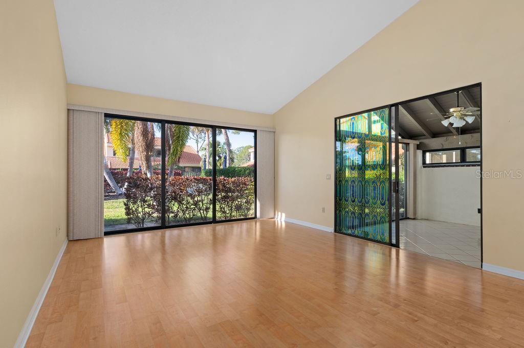 Discover the charm of the Huntingwood neighborhood, nestled in the heart of The Meadows. This exceptional 2-bedroom, 2-bathroom home offers a perfect blend of comfort, style, and low-maintenance living, ideal for embracing the Florida lifestyle. From the moment you enter, the vaulted ceilings and an airy, open layout invite you to enjoy a home designed for both relaxation and entertaining. The modernized kitchen showcases stone countertops and a breakfast bar that flows effortlessly into the living and dining areas, creating a welcoming space to gather. Step into the enclosed lanai, where tranquility abounds, offering the perfect spot to unwind or enjoy your morning coffee. The primary bedroom is your personal retreat, featuring a beautifully updated ensuite bath with granite countertops, double sinks, and a stunning walk-in shower with custom tile work. Open the doors to your private paver patio and savor peaceful moments outdoors. For added convenience, the home includes an interior laundry room, a covered carport with an attached storage closet, and plenty of guest parking. The front paver courtyard provides an inviting space for al fresco dining or casual get-togethers. And when it’s time to relax, the sparkling community pool is just steps away. Huntingwood provides a maintenance-free lifestyle, with recent updates including new roofs (2021) and freshly painted exteriors—all completed without special assessments. The Meadows community enhances your experience with an incredible array of amenities, including a junior Olympic pool, fitness center, pickleball courts, and 14 miles of scenic trails for walking or biking. Golf enthusiasts will appreciate the option to play at The Highlands and The Groves courses. Located just minutes from Sarasota’s vibrant downtown, this home offers quick access to world-class restaurants, arts, cultural venues, and the white sand beaches of Siesta Key. Whether you’re looking for outdoor adventure, a bustling social scene, or serene natural beauty, this location has it all. Experience the perfect balance of sophistication and leisure—schedule your private tour today and make this home in Huntingwood your own!