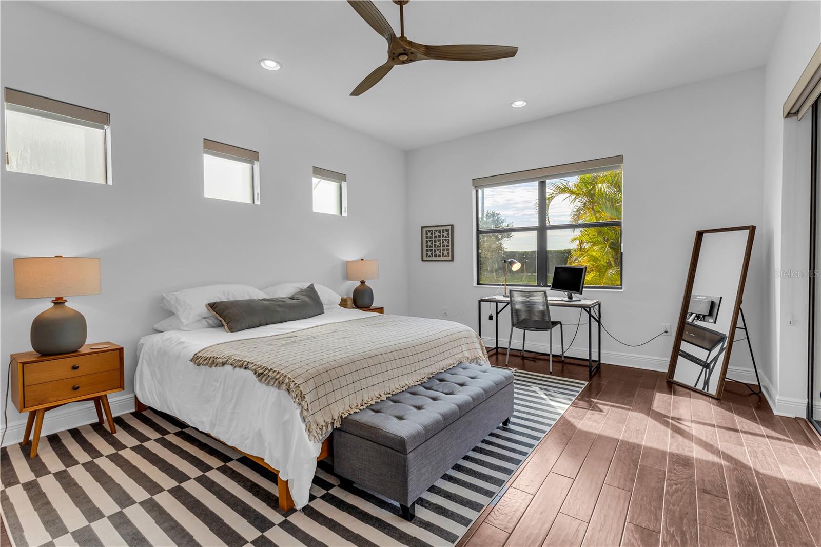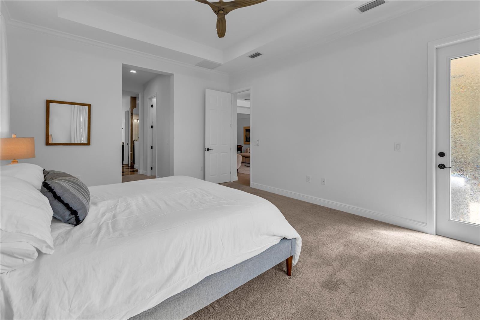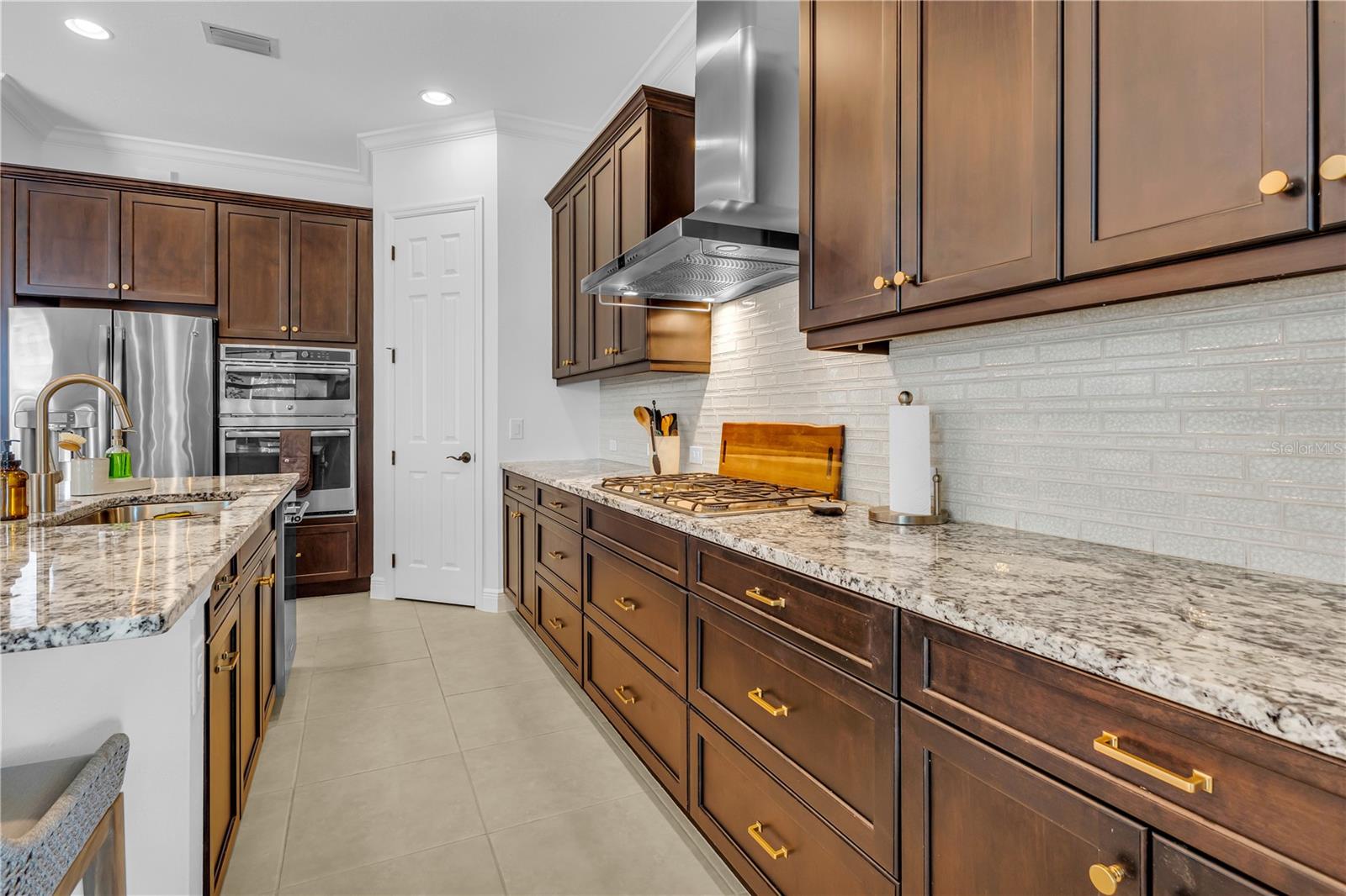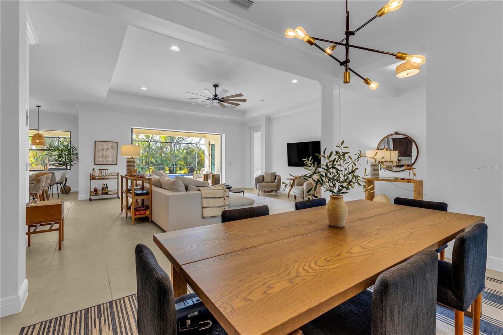 Welcome to Wildgrass, an exclusive gated community offering estate-size almost 1/2 acre lots, just minutes away from shopping, dining, and entertainment, and a short drive to the stunning Siesta Key Beach. This exquisite 4-bedroom, 3-bath pool home embodies the luxury and craftsmanship of a Neal Signature Homes. From the moment you drive up, you will be captivated by the beautifully manicured lawns and lush landscaping, with a stunning elevation, paver walkway and driveway that set the tone for the elegance within. Inside, architectural details abound, including arches, step ceilings, columns, crown molding, and more, providing an ambiance of sophistication throughout. The gourmet kitchen is a true masterpiece, featuring custom wood cabinets, granite countertops, decorative tile backsplash, stainless steel appliances with a gas cooktop, built-in convection oven and microwave oven, and a stainless steel cooktop hood. A large breakfast bar with pendant lighting offers ample seating, making it perfect for family gatherings or casual meals. The open and airy floor plan continues to impress with interior and exterior gathering spaces, and a spacious primary suite that offers direct access to the pool area, two large walk-in closets, and an elegant bath with dual sinks, granite countertops, custom cabinetry, a soaking tub, and a large walk-in shower with a frameless glass door. The additional bedrooms provide plenty of space for guests, while the versatile 4th bedroom, with engineered wood flooring and direct access to the outdoor living area, can serve as a home office. The 4th bedroom also has an adjacent bath, which functions as both a pool bath and a convenient guest bath. Step outside to the expansive outdoor living area, featuring a large pool with a PebbleTec finish, a soothing waterfall water feature, and a newer outdoor kitchen with a built-in grill, sink, refrigerator, and granite countertops. The travertine flooring, recently sealed, adds a touch of luxury, and lush landscaping ensures privacy for your enjoyment. The 3-car garage is impeccably designed with newly epoxied floors and offers plenty of space for both vehicles and storage. Notable upgrades include a dishwasher, outdoor kitchen, gutters and downspouts, garbage disposal, fresh interior and exterior paint, epoxied garage floors, sealed travertine, indoor and outdoor fans, pool heater control pad, a Wi-Fi-enabled Rainbird irrigation control panel, and a Lorex outdoor security camera system. This home truly offers the best of indoor and outdoor living in one of the most sought-after communities. Don’t miss the opportunity to make this stunning property your own!