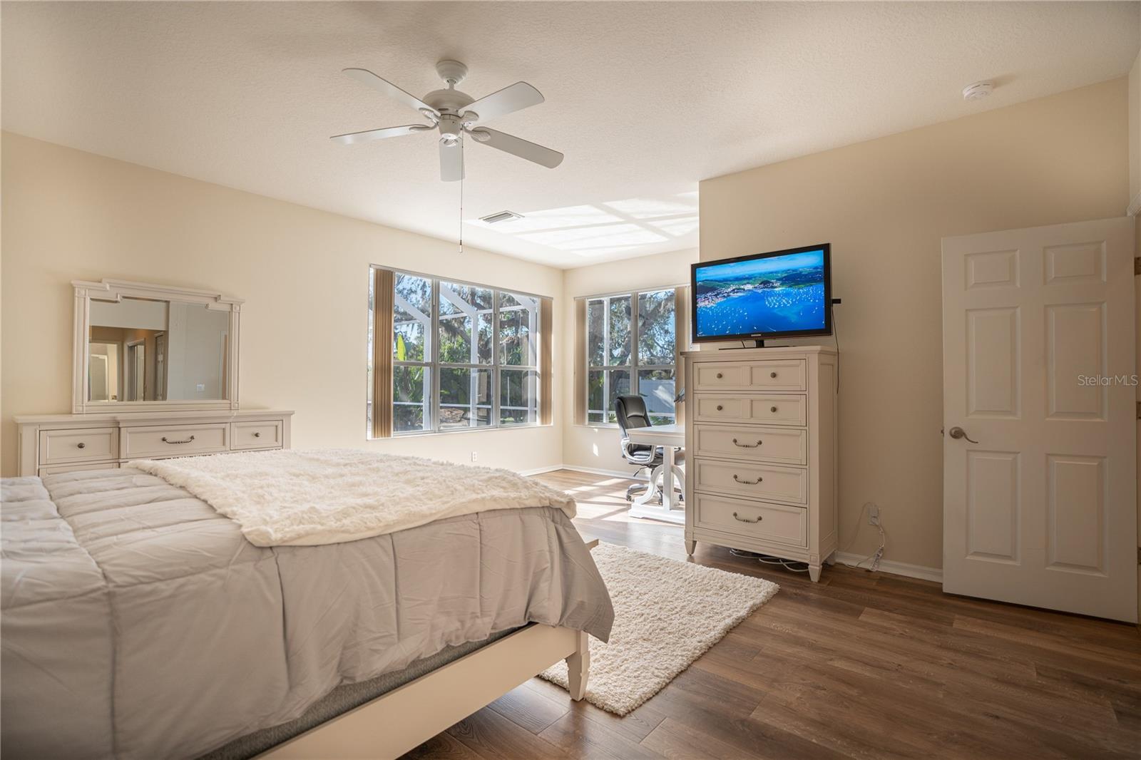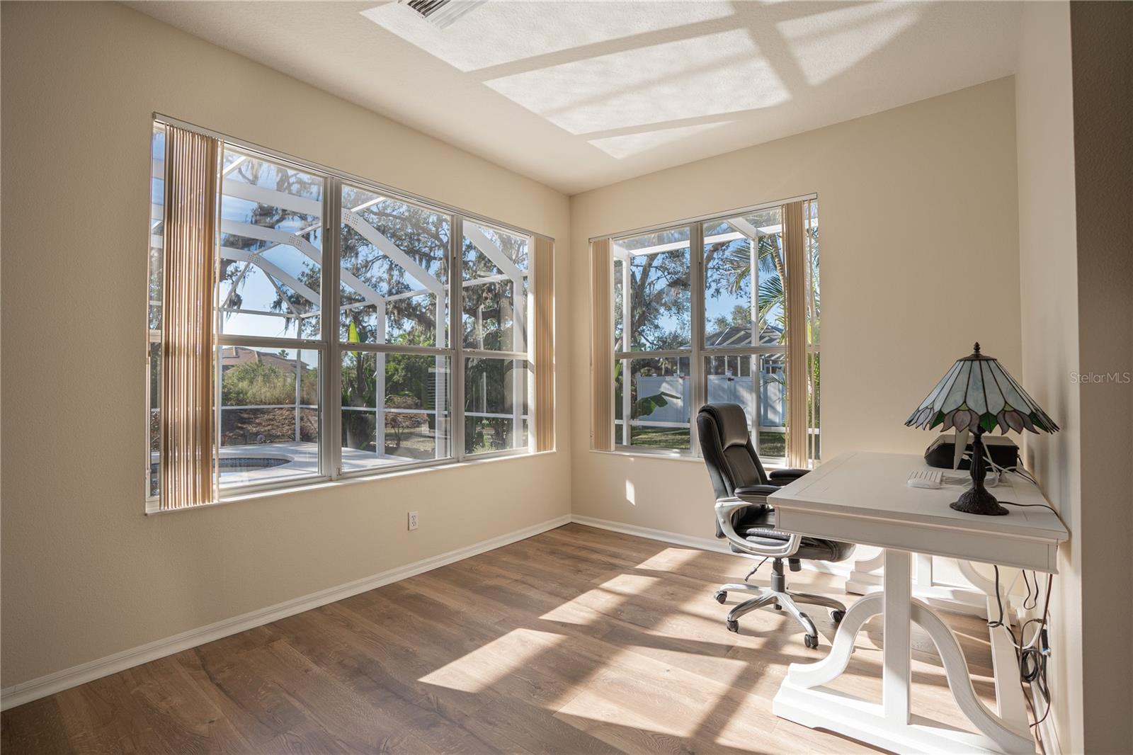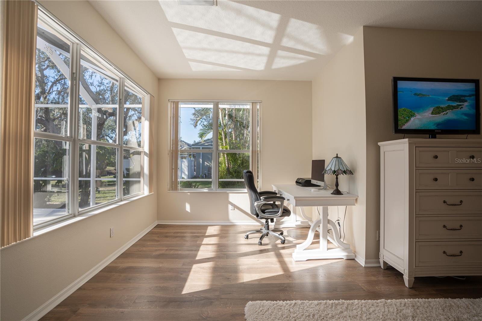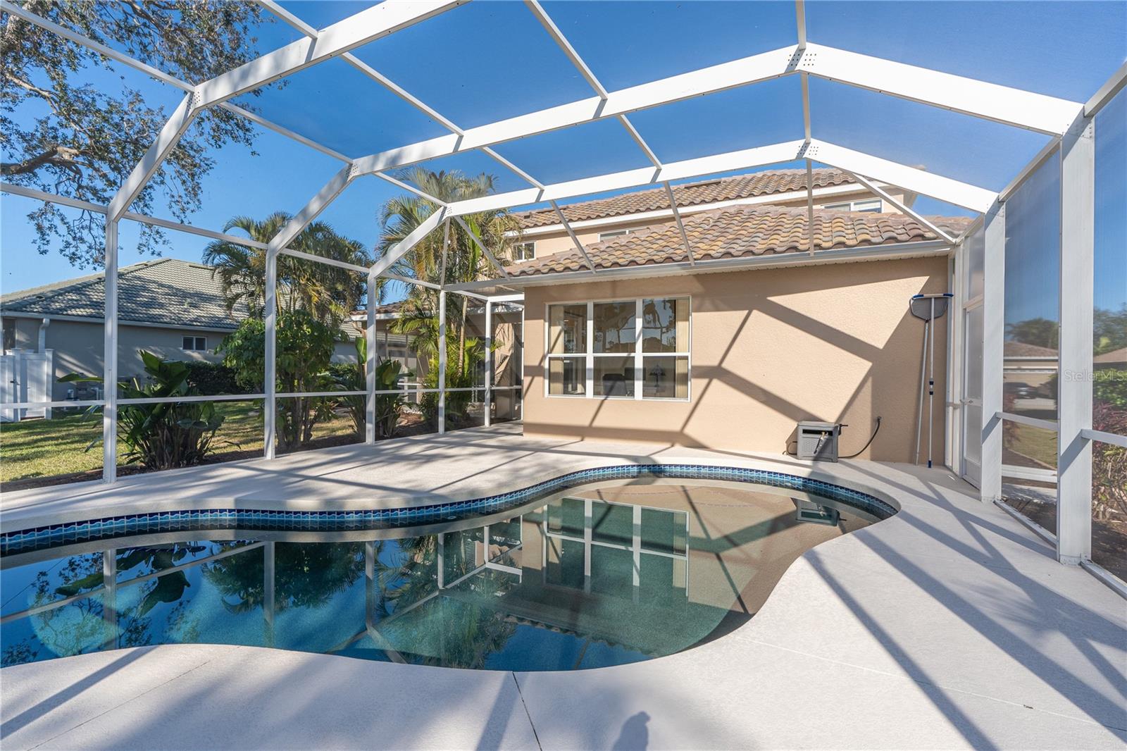 Don't wait to see this meticulously detailed - original owner - home, in The Enclave in Sarasota Florida. NEW ROOF in 2024 and NEW A/C's in 2023!! This impressively immaculate updated three bedroom, 3.5 bathroom, plus Flex Room (Flex Room could be remodeled and turned into a 4th bedroom) home, boasts 3,005 square feet of interior living space, offering an expansive and functional layout that is perfect for both relaxation and entertaining. The soaring 18 foot ceilings upon entering give you the impression of openness with lots of light and bright space and neutral colors throughout. The kitchen has been updated to meet the demands of the most discriminating home buyer, featuring modern stainless steel kitchen appliances, granite countertops in kitchen and baths, upgraded kitchen backsplash, built-in cook-top, double oven with top convection oven, large stainless deep kitchen sink, pull out drawers under kitchen cook top, soft close doors on all cabinets, a flowing workspace, and more. The oversized owner’s suite is a true sanctuary, featuring plenty of space for a sitting area, 2 large walk-in closets, and an en-suite bathroom with dual vanities, a soaking tub, and a separate shower. All baths have comfort height toilets with soft close seats. The heart of the home is the spacious kitchen, which flows seamlessly into the family room. Whether you're hosting a dinner party or enjoying a quiet evening, this space is designed for comfort and ease. No carpet in the home as laminate "designer wood" floors exist in all bedrooms, stairs, family, living and dining rooms, and second floor flex and loft space. Step outside to your private backyard oasis, complete with a swimming pool, screened patio, a pool bath, and serene nature and pond views that face West for those amazing Florida sunsets. Mature majestic oak trees dot the landscape ensuring privacy at any time of the day. Additional highlights include a brand-new roof (2024) and two new air conditioning systems (2023), ensuring comfort and peace of mind for years to come. The home also offers a three-car garage with modern programmable garage door systems, and epoxy floors, providing ample space for vehicles and storage. There are even two external keypads for garage door entry. Situated in a highly desirable location, this home is located within minutes to the top rated Tatum Ridge Elementary School, The Celery Fields, and a short drive to Rothenbach Park. Just a couple of miles away, there is a new Publix along with new restaurants and easy access to I-75 that make this location a no-brainer. The Enclave offers a peaceful environment and has a very low HOA with NO CDD fees, while still being close to all the amenities in Sarasota and Lakewood Ranch. Fences are allowed for your pets and privacy. Don’t miss out on the opportunity to live out East where life is quiet and tranquil. Make this exceptional property your forever home.