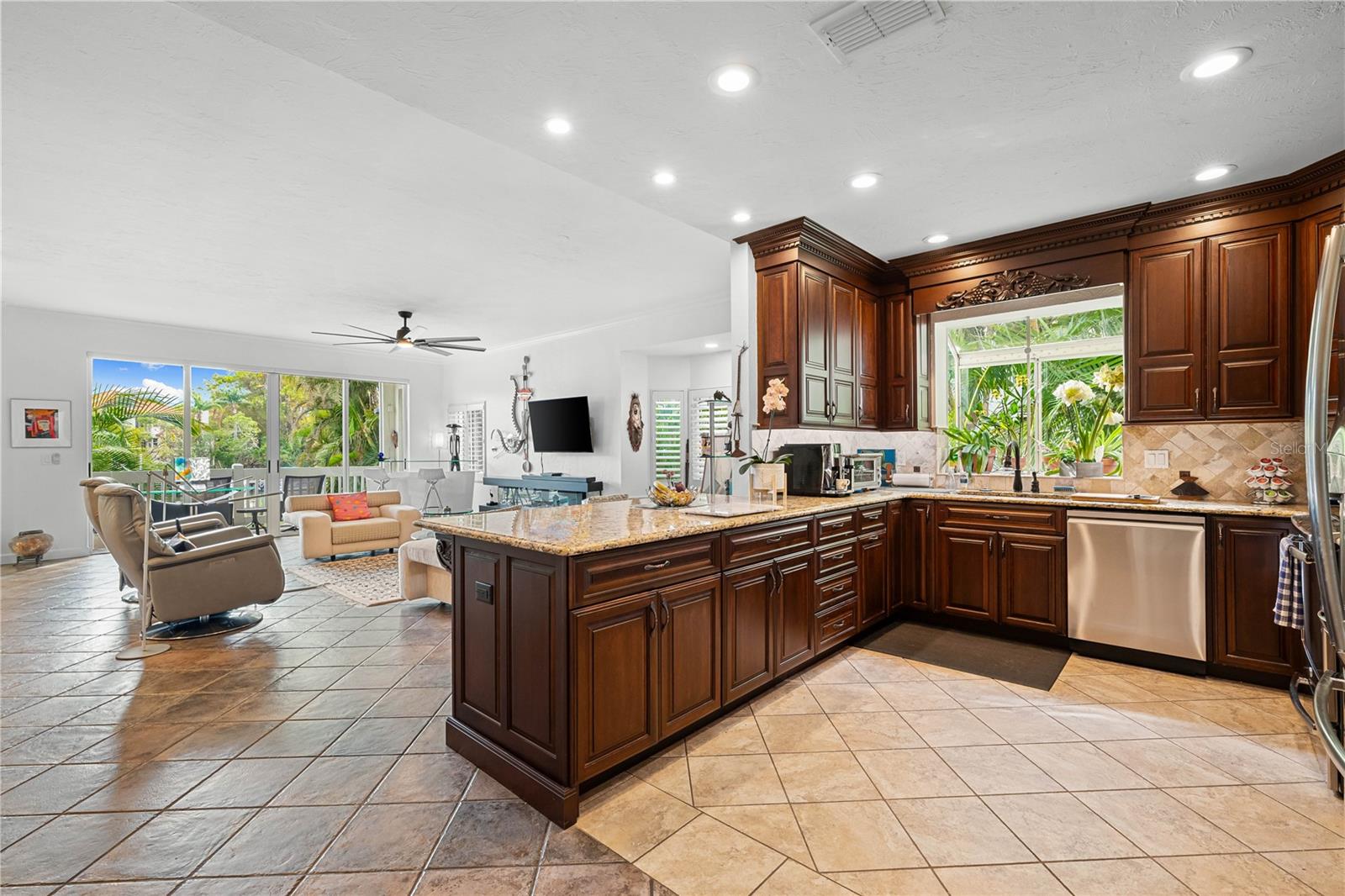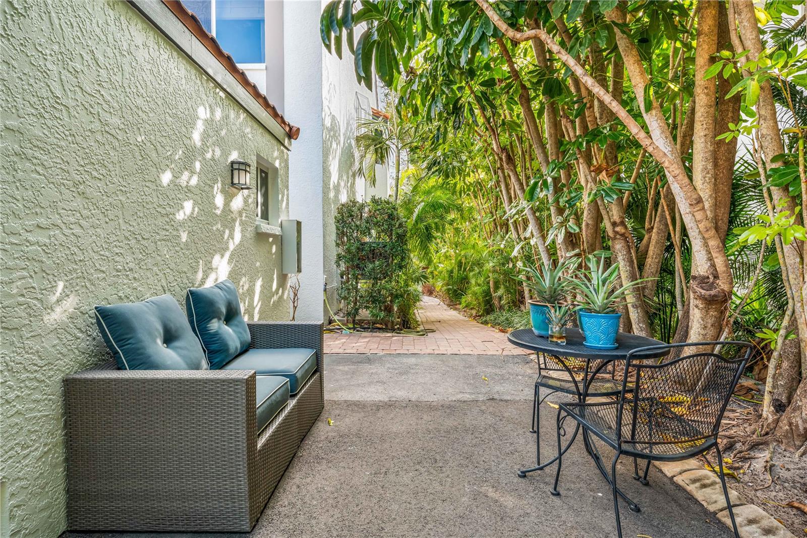 Waterfront double unit in Hudson Landings: Two residences have been combined into one creating this expansive 3 bedroom, 3 bath and 1 office/den home with large open living spaces, a deeded dock, 2 car garage plus 2 assigned parking spaces. This home features a well-appointed kitchen showcasing granite countertops and top of the line stainless appliances, a dry bar, crown molding, high ceilings with wood inlay and an Italian walk-in shower. Enjoy exceptional water and pool views from the master bedroom providing plenty of custom closet space. Take in the amazing water view from your patio with southern exposure while enjoying your morning coffee or a beautiful sunset from your private dock. Access your boat dock and the outdoor grilling area straight from your patio. This large, 2,300 sqft, single level corner unit is an incredible opportunity to live downtown overlooking the Hudson Bayou. The location offers a unique lifestyle and is walkable to Marie Selby Botanical Gardens and the beautiful Sarasota Bayfront and Marina. Hudson Landings is a best kept secret in Sarasota, with 12 residences tucked into a private, calm, and secluded location. Bring your boat and live downtown.