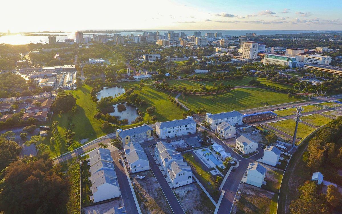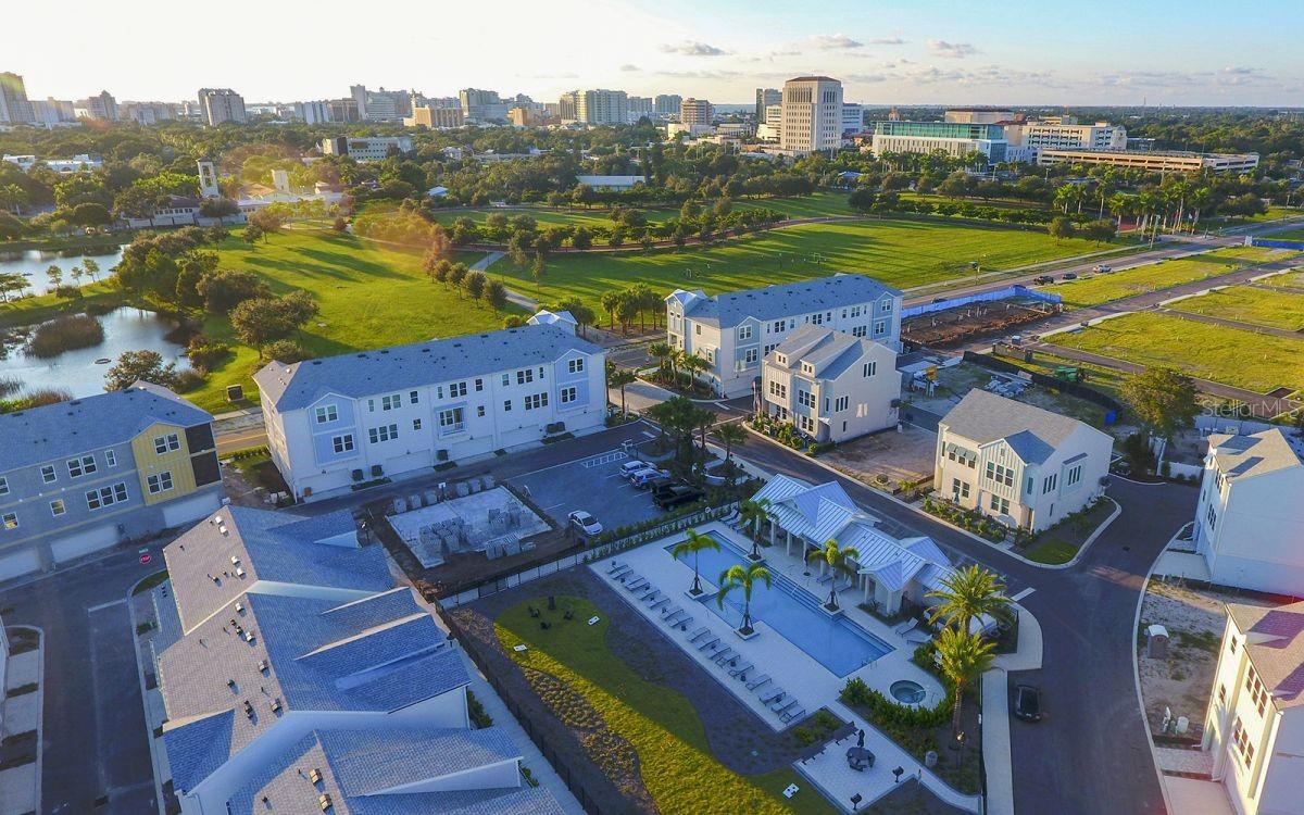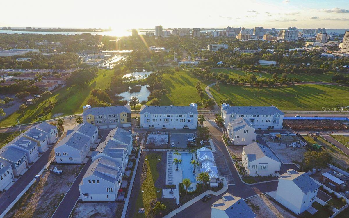 WELCOME to Payne Park Village, where modern living meets an unbeatable location!!! This STUNNING Deancross model by David Weekley is a 3 bedroom, 3 bathroom corner unit townhome featuring a 2 car garage and a spacious fenced in patio, perfectly blending style, comfort, and convenience. As you step inside, the first floor offers a versatile bedroom or home office and access to a roomy garage. The second floor is a true centerpiece, showcasing a chef inspired kitchen with SLEEK 42" white cabinets, a designer stainless steels vent hood and a built-in cooktop, quartz countertops, and a functional island with STYLISH beadboard, perfect for entertaining. Adjacent to the kitchen, the expansive family room boasts high ceilings, an open concept layout and breathtaking views of the community pool and green space. A second bedroom on this floor includes its own modern bathroom with a glass door walk-in shower, offering comfort and convenience for guests or family members. The oversized outdoor patio and enhanced natural lighting further enhance the home's unique appeal. The third floor provides a PEACEFUL retreat with the owner's suite, which features an ensuite bathroom with a glass door walk-in shower, dual sinks, and plenty of counter space, creating the perfect private sanctuary to unwind after a busy day. Thoughtful upgrades throughout the home include 3 interconnected Ecobee smart thermostats for energy efficiency, a new overflow tank for the hot water heater, a surge protector for the exterior HVAC unit, and a UV light in the A/C housing to prevent mold and mildew growth. Additional enhancements such as window treatments for privacy and elegance, and details like a curved shower curtain bar in the main floor bathroom, further elevate the home's comfort and style. Payne Park Village offers an impressive array of amenities, including a community swimming pool, jacuzzi, BBQ area, dog park, covered lanai and a turf play area. Just across the street, Payne Park serves as a pet-friendly haven with miles of walking trails, a tranquil pond, a disc golf course, tennis center, picnic tables, a Citrus Park playground and a skate park. The newly expanded Legacy Trail provides miles of scenic paths for walking and biking, making it easy to enjoy Florida's outdoor lifestyle. This prime location is also close to Sarasota's great schools, fine dining, boutiques, fitness studios, salons, St Armand's Circle and the WORLD-RENOWNED beaches of Lido, Siesta and Longboat Key. Blending thoughtful updates, exceptional amenities, and a vibrant setting, this home offers the perfect opportunity to embrace the best of Downtown Sarasota living. BOOK your showing today!!