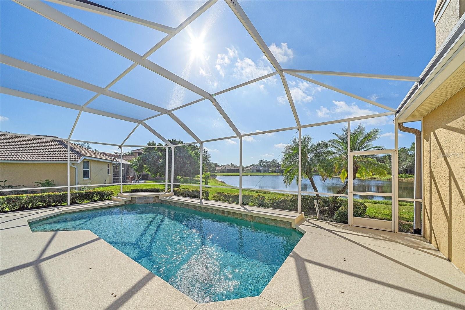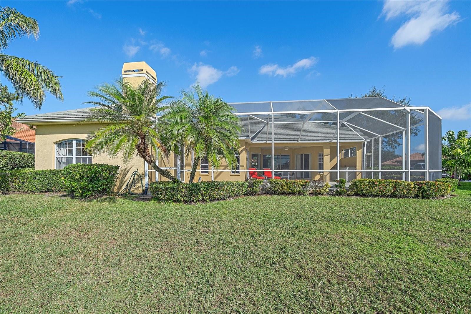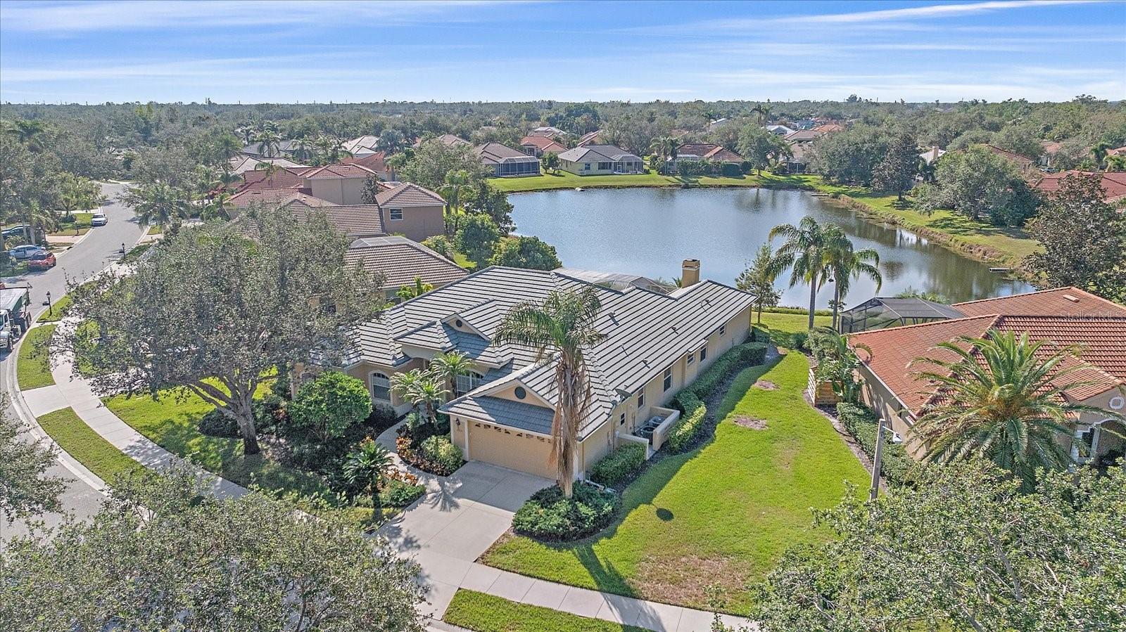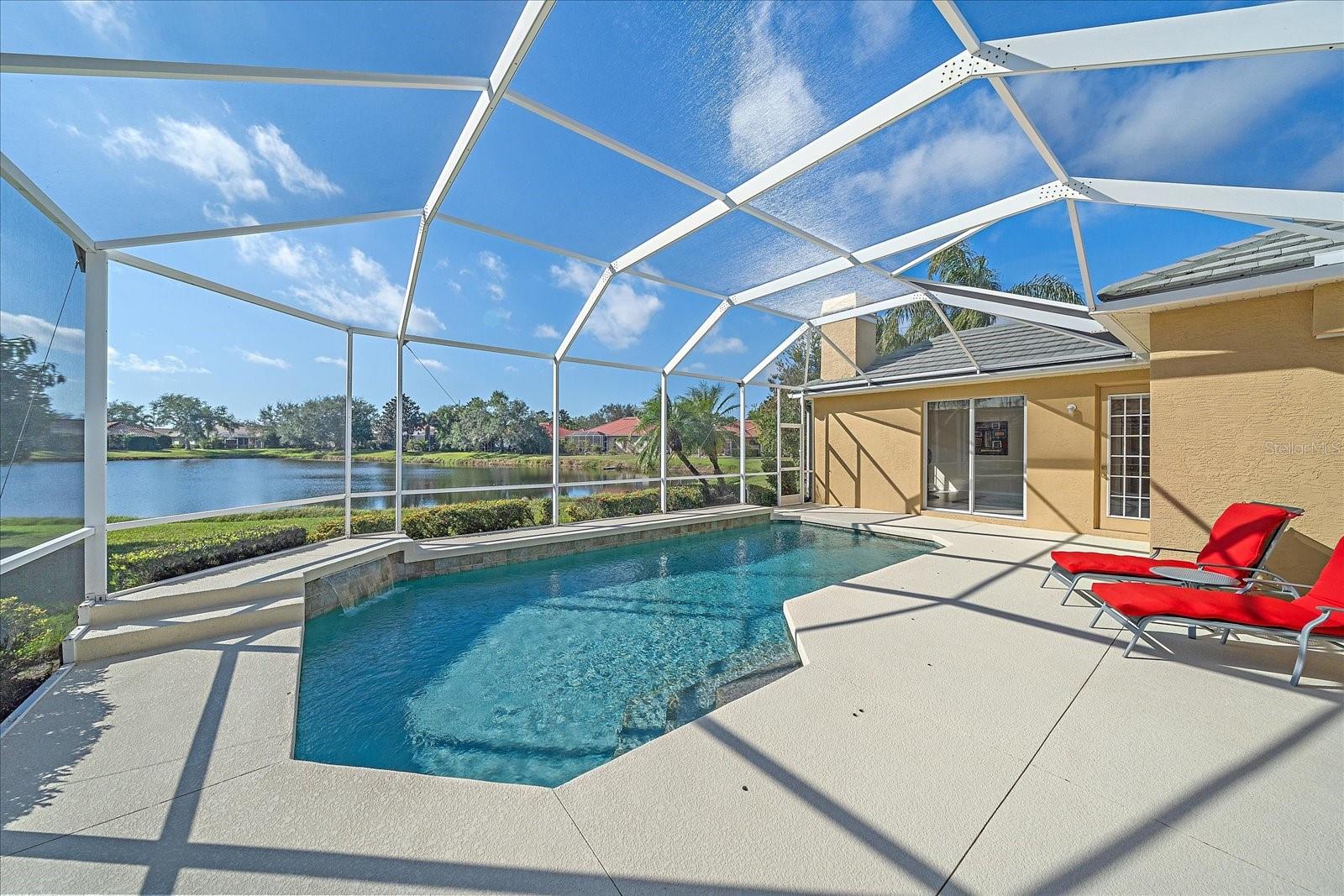 SPECTACULAR pool home with BREATHTAKING large lake view! Three bedrooms with a den and a large bonus room with fireplace! Tastefully decorated and impeccably maintained with pride of ownership. As you enter this well-loved home through the double etched glass doors, you will be welcomed by architectural details such as single and double tray ceilings to 13 feet, wall niches, 8’ doors, built-ins, arches, plant shelves and crown molding. Over-sized windows and transom windows allow an abundance of natural light into the home. The kitchen boasts 42" wood cabinets, granite countertops and stainless steel appliances. The rooms throughout the home are spacious. The den, located in the front of the home, makes a great office. The large bonus room, located in the back of the home, has a fireplace and a great view of the lake. The master en-suite features crown molding, tray ceiling and a Closet Tec closet. The Southern exposure, outdoor living is "Florida living at its best" with a large lake view, over-sized lanai and swimming pool. Built on one of the most desirable lots in Three Oaks, it's a must see home in a popular neighborhood. Centrally located in a most desirable A+ school district. Short distance to beaches, malls, everything! You will love this home.