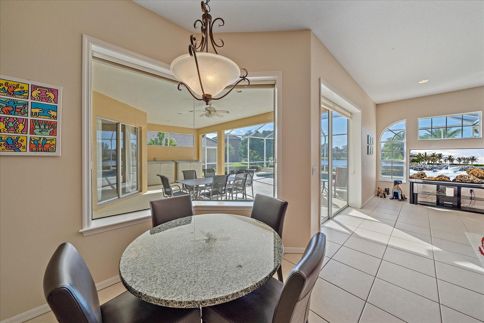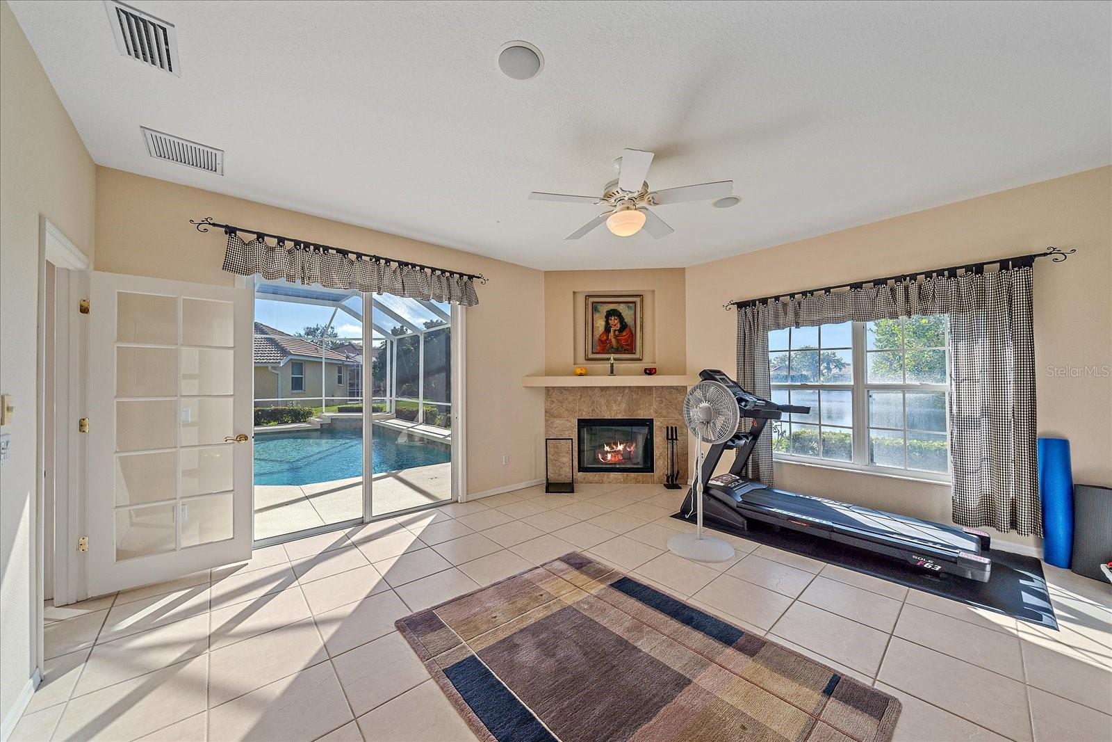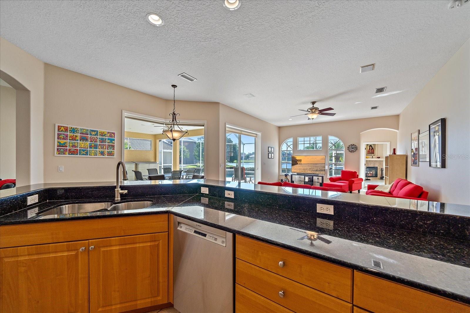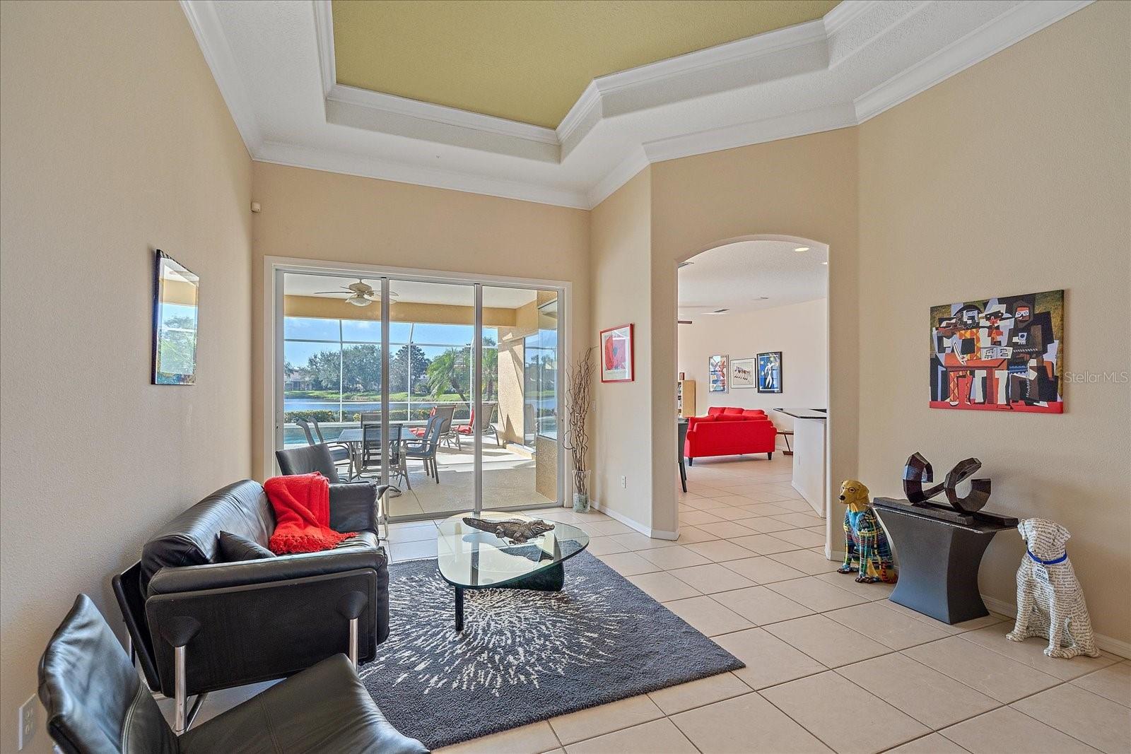 SPECTACULAR pool home with BREATHTAKING large lake view! Three bedrooms with a den and a large bonus room with fireplace! Tastefully decorated and impeccably maintained with pride of ownership. As you enter this well-loved home through the double etched glass doors, you will be welcomed by architectural details such as single and double tray ceilings to 13 feet, wall niches, 8’ doors, built-ins, arches, plant shelves and crown molding. Over-sized windows and transom windows allow an abundance of natural light into the home. The kitchen boasts 42" wood cabinets, granite countertops and stainless steel appliances. The rooms throughout the home are spacious. The den, located in the front of the home, makes a great office. The large bonus room, located in the back of the home, has a fireplace and a great view of the lake. The master en-suite features crown molding, tray ceiling and a Closet Tec closet. The Southern exposure, outdoor living is "Florida living at its best" with a large lake view, over-sized lanai and swimming pool. Built on one of the most desirable lots in Three Oaks, it's a must see home in a popular neighborhood. Centrally located in a most desirable A+ school district. Short distance to beaches, malls, everything! You will love this home.