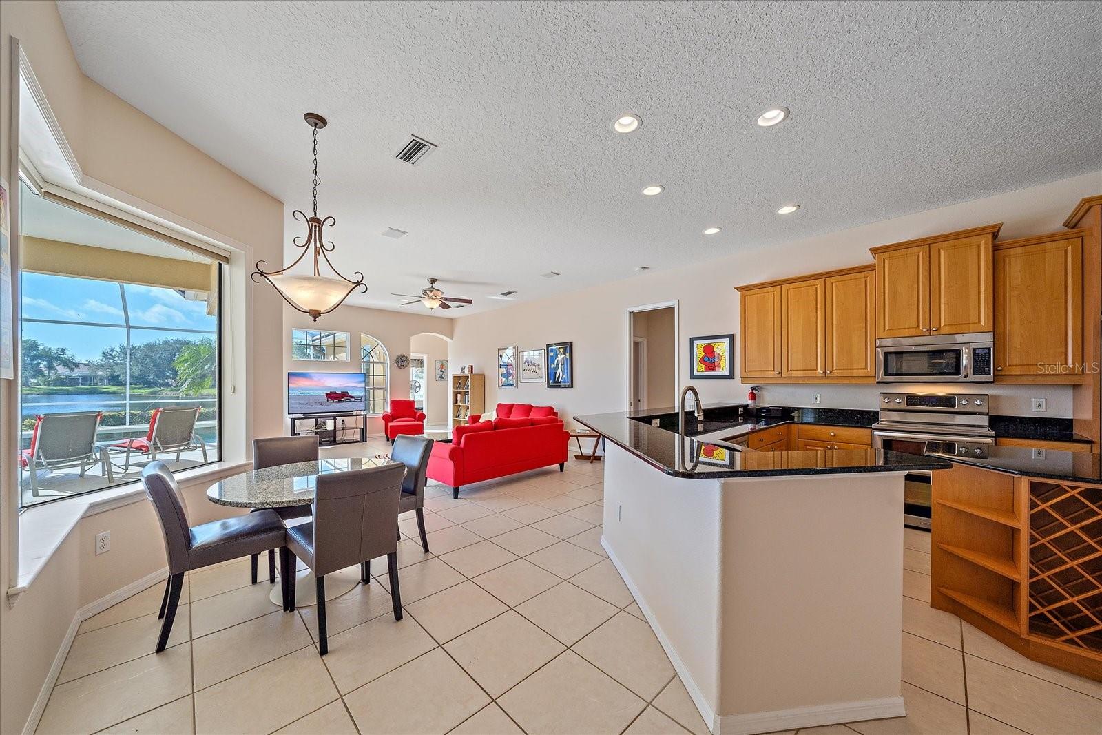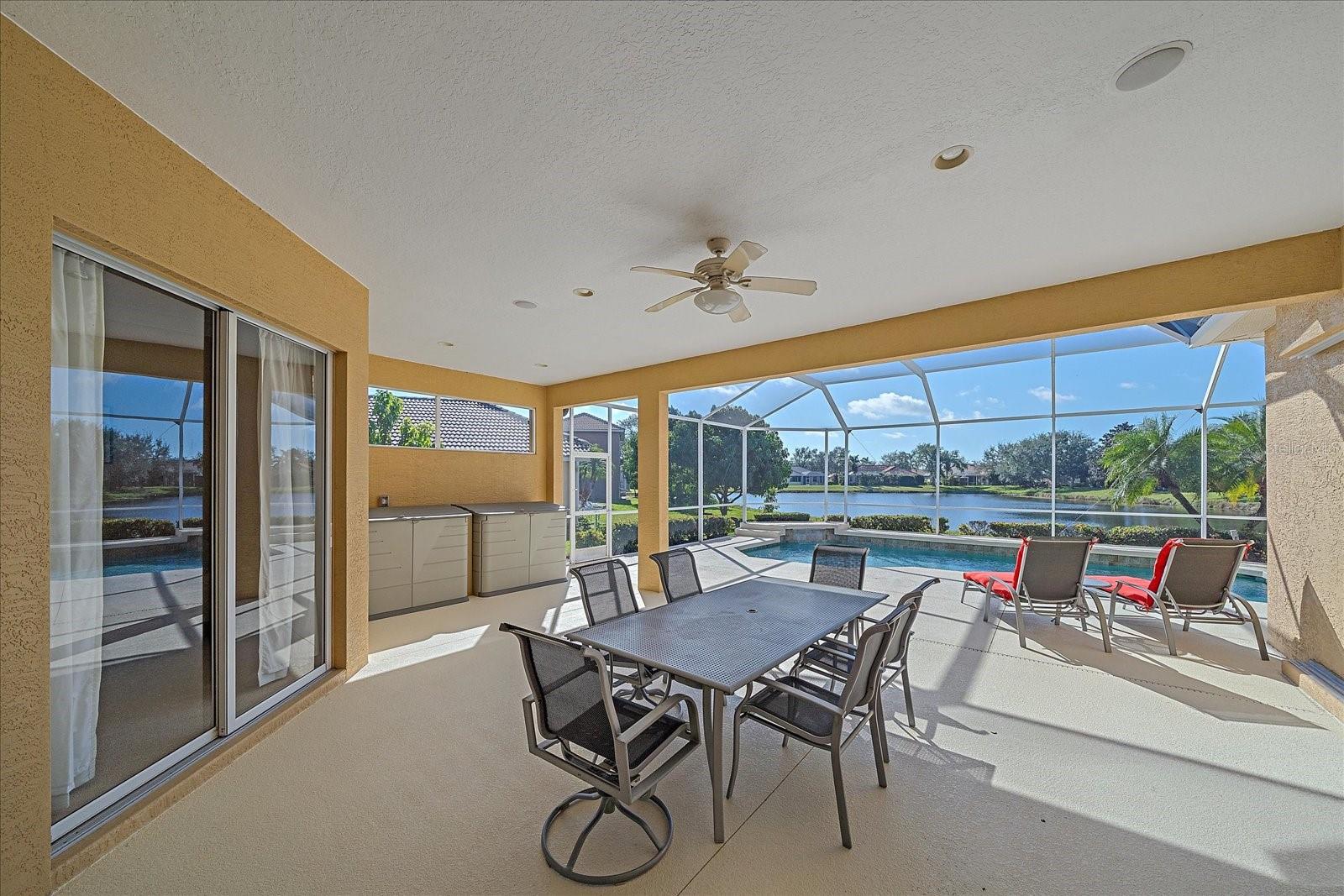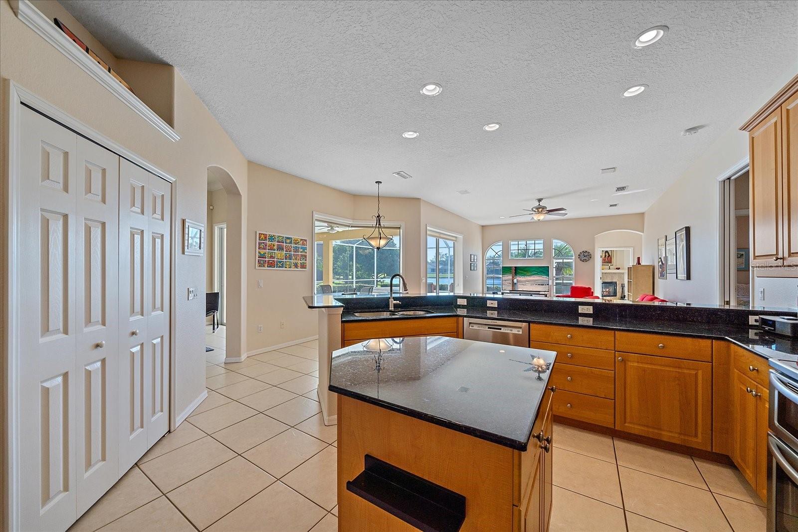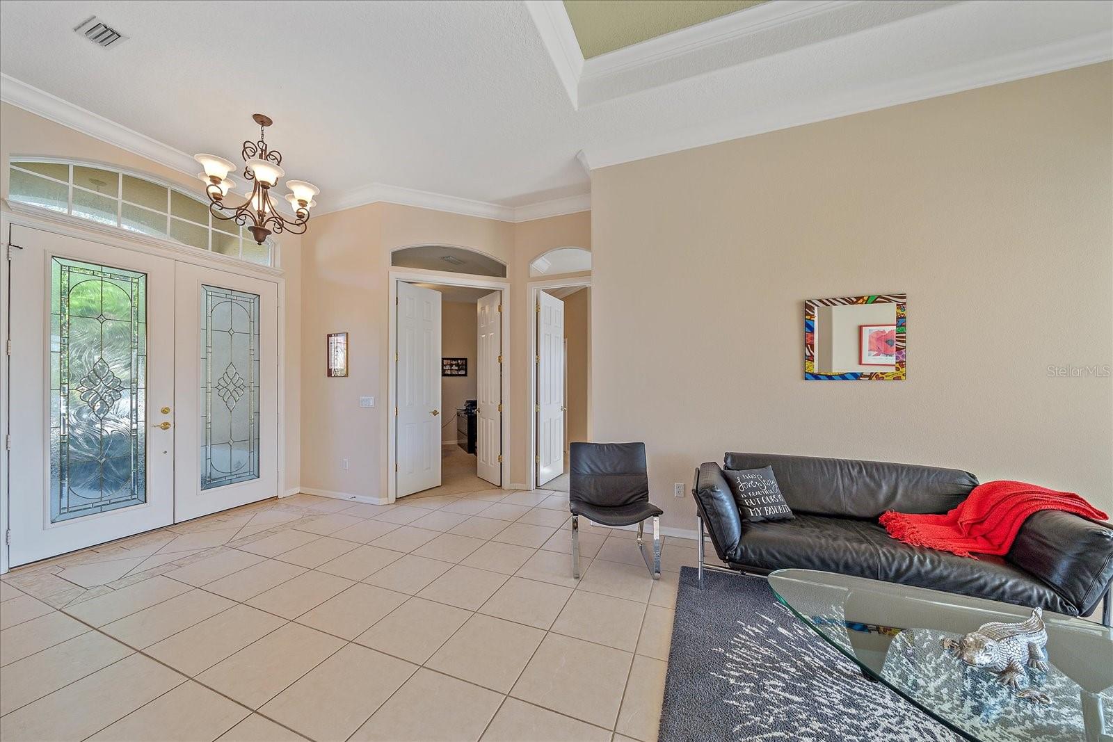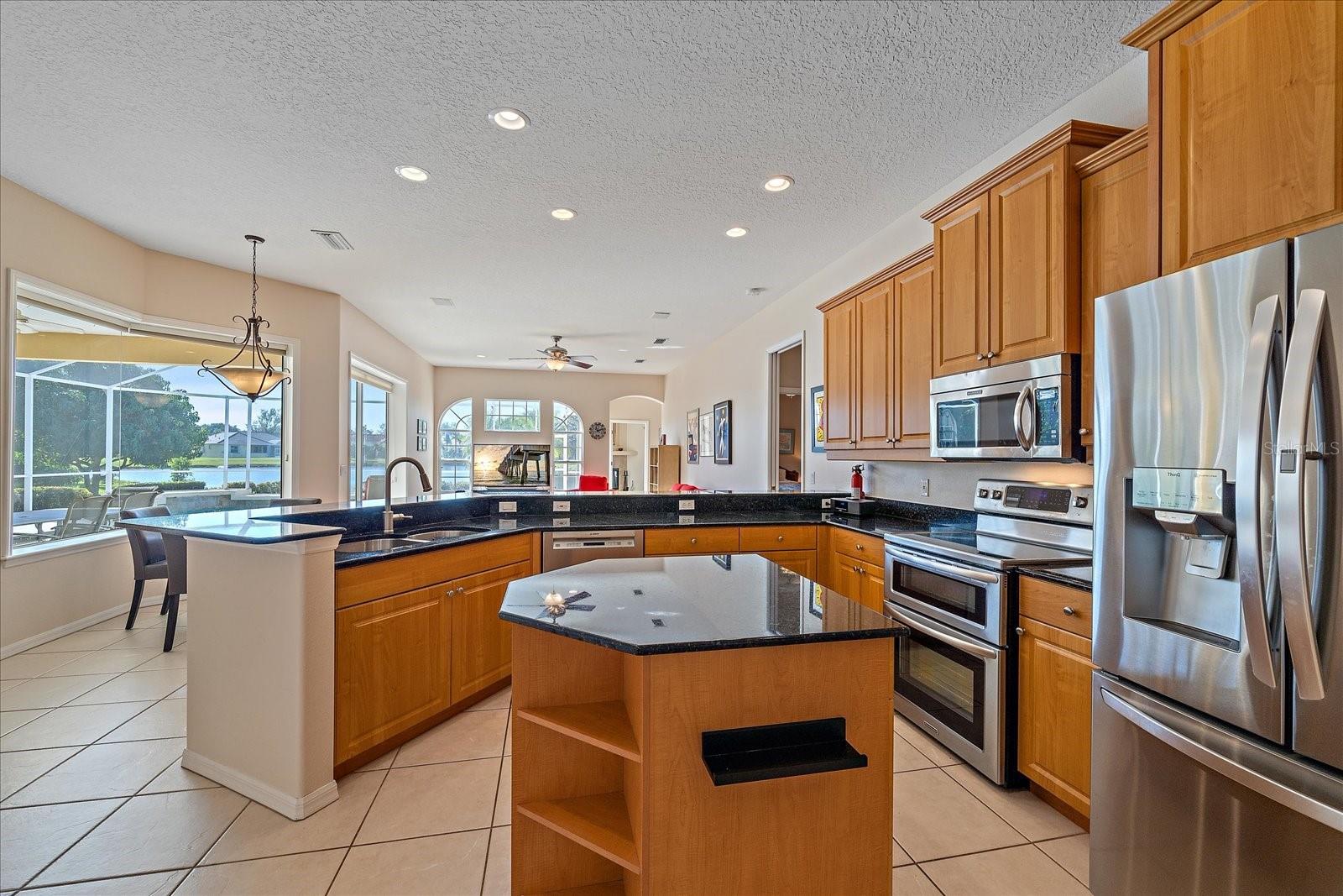 SPECTACULAR pool home with BREATHTAKING large lake view! Three bedrooms with a den and a large bonus room with fireplace! Tastefully decorated and impeccably maintained with pride of ownership. As you enter this well-loved home through the double etched glass doors, you will be welcomed by architectural details such as single and double tray ceilings to 13 feet, wall niches, 8’ doors, built-ins, arches, plant shelves and crown molding. Over-sized windows and transom windows allow an abundance of natural light into the home. The kitchen boasts 42" wood cabinets, granite countertops and stainless steel appliances. The rooms throughout the home are spacious. The den, located in the front of the home, makes a great office. The large bonus room, located in the back of the home, has a fireplace and a great view of the lake. The master en-suite features crown molding, tray ceiling and a Closet Tec closet. The Southern exposure, outdoor living is "Florida living at its best" with a large lake view, over-sized lanai and swimming pool. Built on one of the most desirable lots in Three Oaks, it's a must see home in a popular neighborhood. Centrally located in a most desirable A+ school district. Short distance to beaches, malls, everything! You will love this home.