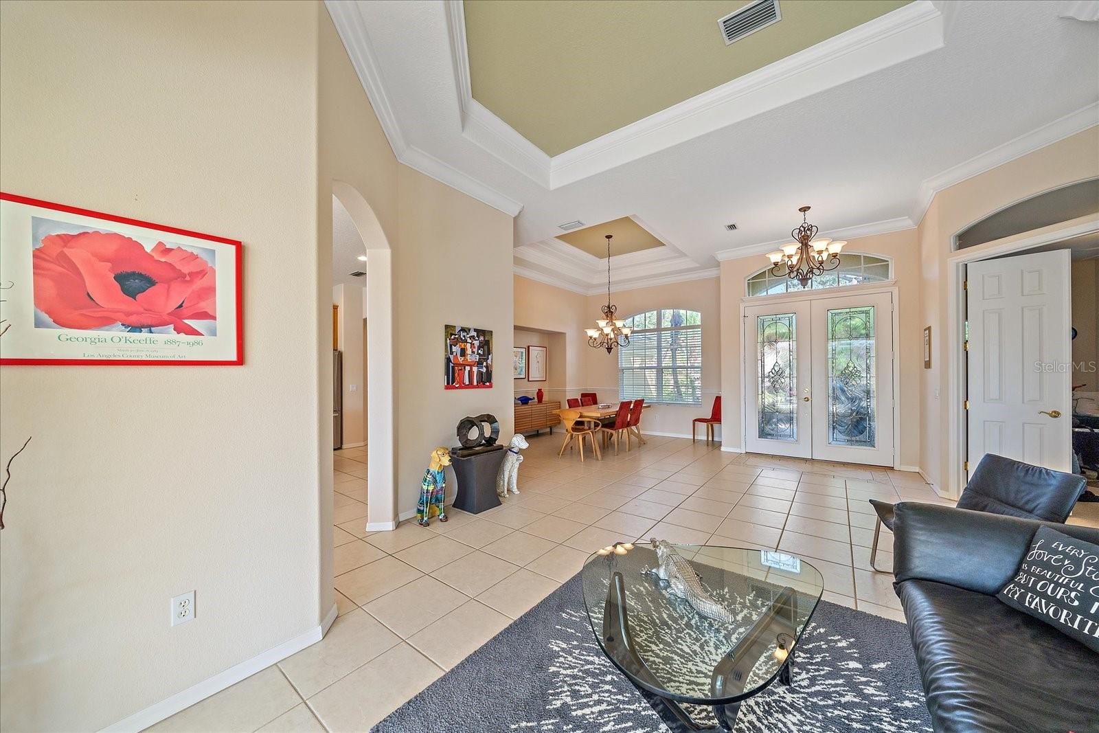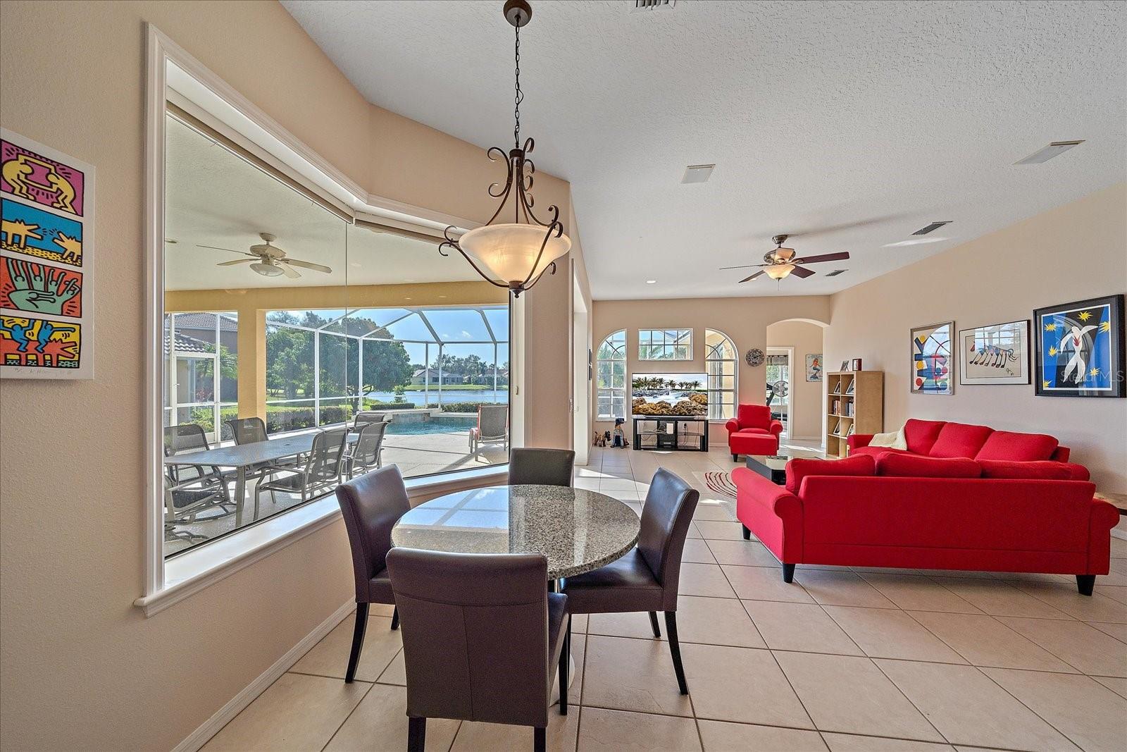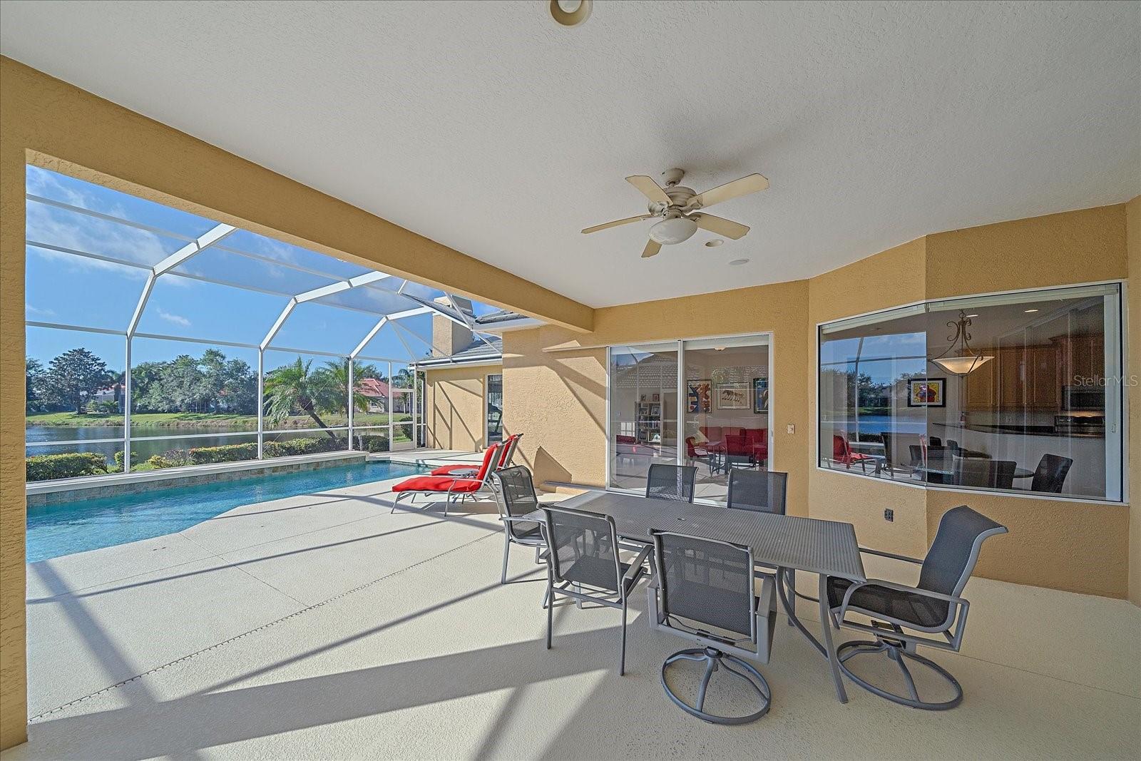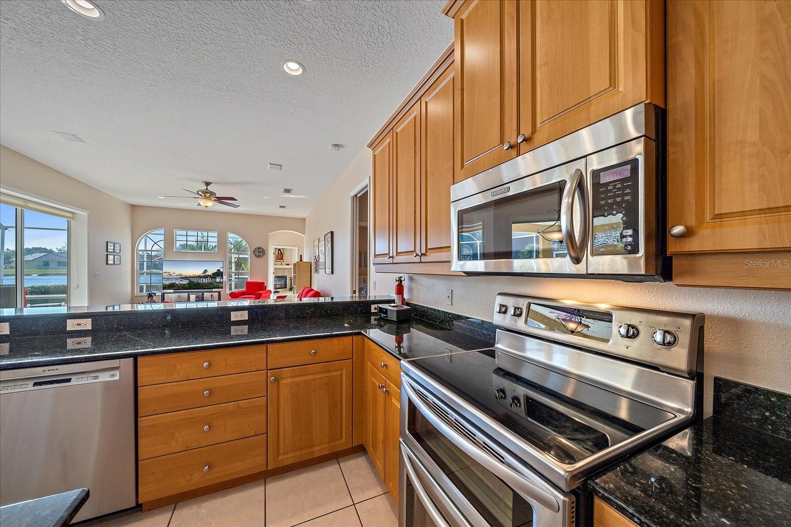 SPECTACULAR pool home with BREATHTAKING large lake view! Three bedrooms with a den and a large bonus room with fireplace! Tastefully decorated and impeccably maintained with pride of ownership. As you enter this well-loved home through the double etched glass doors, you will be welcomed by architectural details such as single and double tray ceilings to 13 feet, wall niches, 8’ doors, built-ins, arches, plant shelves and crown molding. Over-sized windows and transom windows allow an abundance of natural light into the home. The kitchen boasts 42" wood cabinets, granite countertops and stainless steel appliances. The rooms throughout the home are spacious. The den, located in the front of the home, makes a great office. The large bonus room, located in the back of the home, has a fireplace and a great view of the lake. The master en-suite features crown molding, tray ceiling and a Closet Tec closet. The Southern exposure, outdoor living is "Florida living at its best" with a large lake view, over-sized lanai and swimming pool. Built on one of the most desirable lots in Three Oaks, it's a must see home in a popular neighborhood. Centrally located in a most desirable A+ school district. Short distance to beaches, malls, everything! You will love this home.