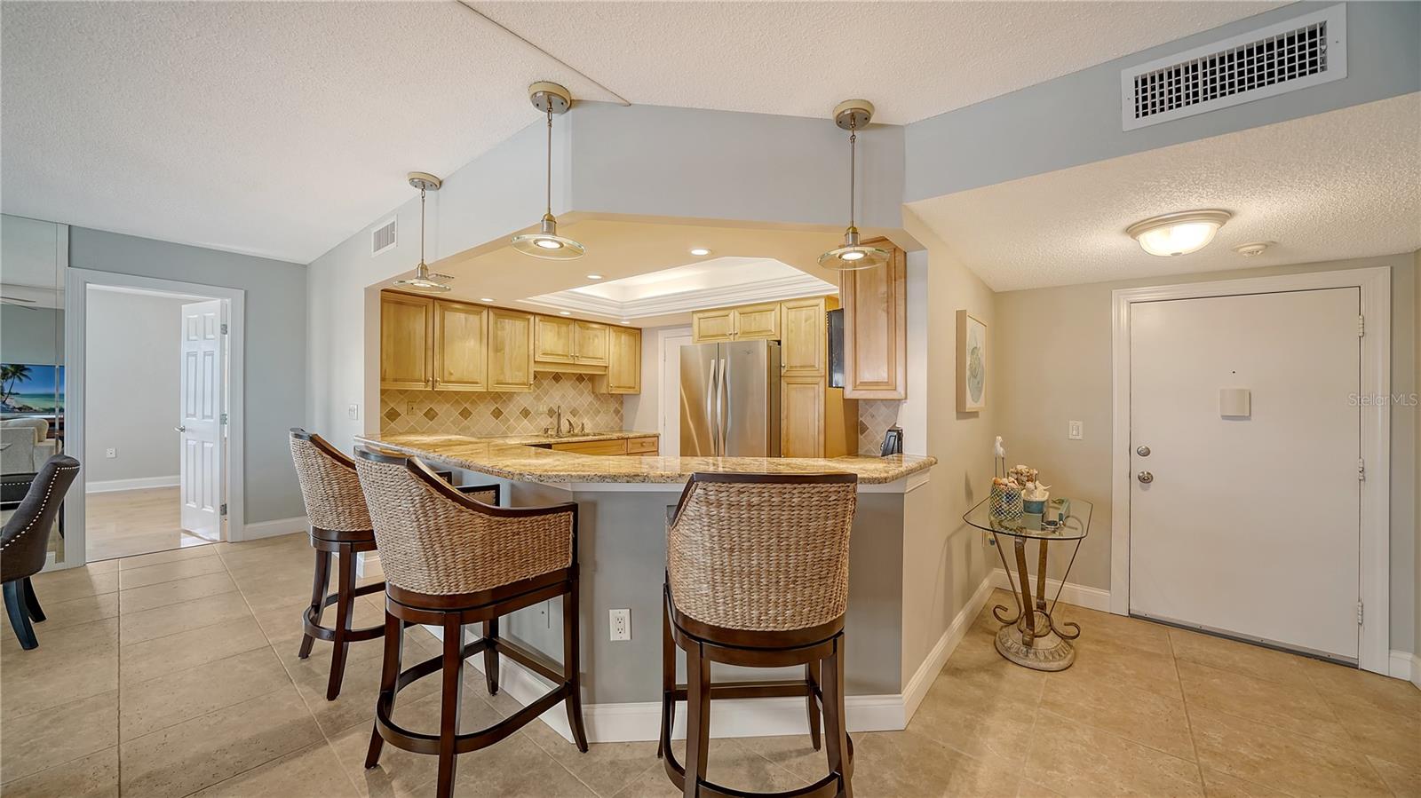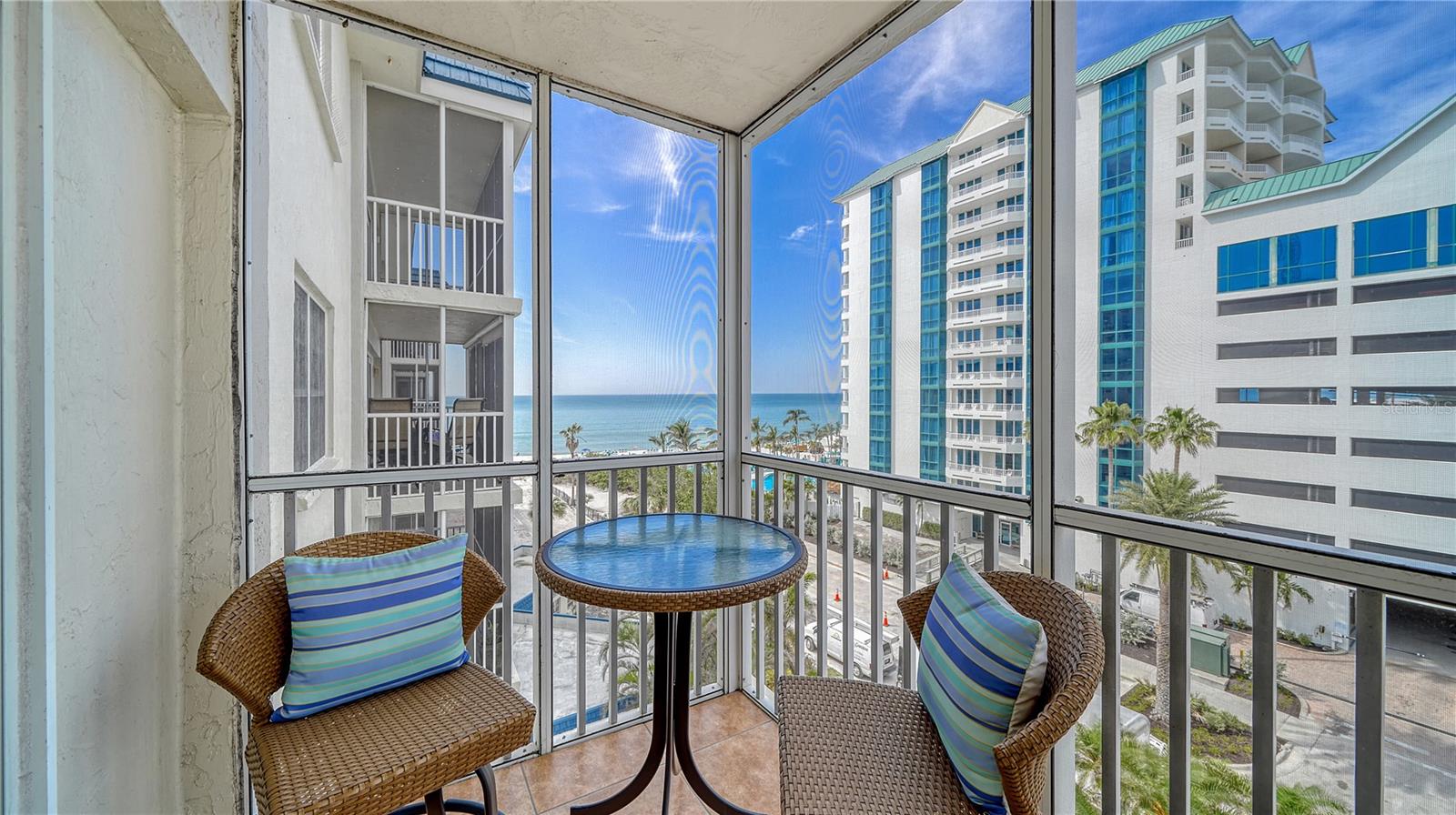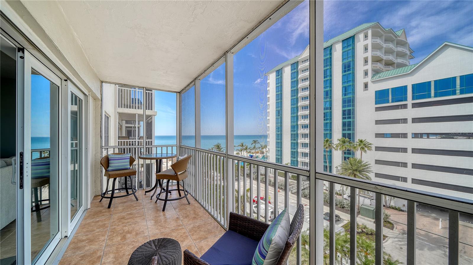 Move-in ready and furnished, this beachfront corner residence on Lido Key is a coastal treat offering an unparalleled location (one of the closest beachfront condos to the world-renowned St. Armands Circle!) and inviting charm. Perfectly situated within walking or biking distance to Sarasota’s vibrant attractions, you’ll enjoy proximity to Lido Beach Resort, the upscale shops and dining at St. Armands Circle, and the scenic beauty of Longboat Key to the north. Travel south to experience the cultural vibrancy of downtown Sarasota, the Bayfront, and wonderful arts and entertainment venues. Thoughtful updates enhance the two-bedroom, open-concept layout, creating a bright and inviting atmosphere. Oversized tile flooring and newer impact windows and sliders ensure durability while complementing the sunny ambiance. The granite kitchen seamlessly connects to the living and dining areas, making it perfect for entertaining. Just off the great room, a screened balcony offers beautiful sunny views of Lido Beach, breathtaking Gulf sunsets, and downtown vistas, providing a tranquil outdoor retreat. The split-bedroom plan maximizes privacy, with two spacious bedroom suites featuring wood flooring. The primary suite includes a walk-in closet with custom built-ins, adding convenience to the retreat-like atmosphere. Additional features include a private storage unit, covered parking, and space to add a washer and dryer for added functionality. This charming community, comprising just 75 residences, is a well-maintained haven located directly on the pristine shores of Lido Beach. Residents enjoy an array of amenities, including a game room, catering kitchen, fitness center, shuffleboard, and a Gulf-front deck with a heated swimming pool. With its prime location, lovely updates, and access to both recreational and cultural activities, this beachfront gem is the ideal setting for enjoying the best of Lido Key living.