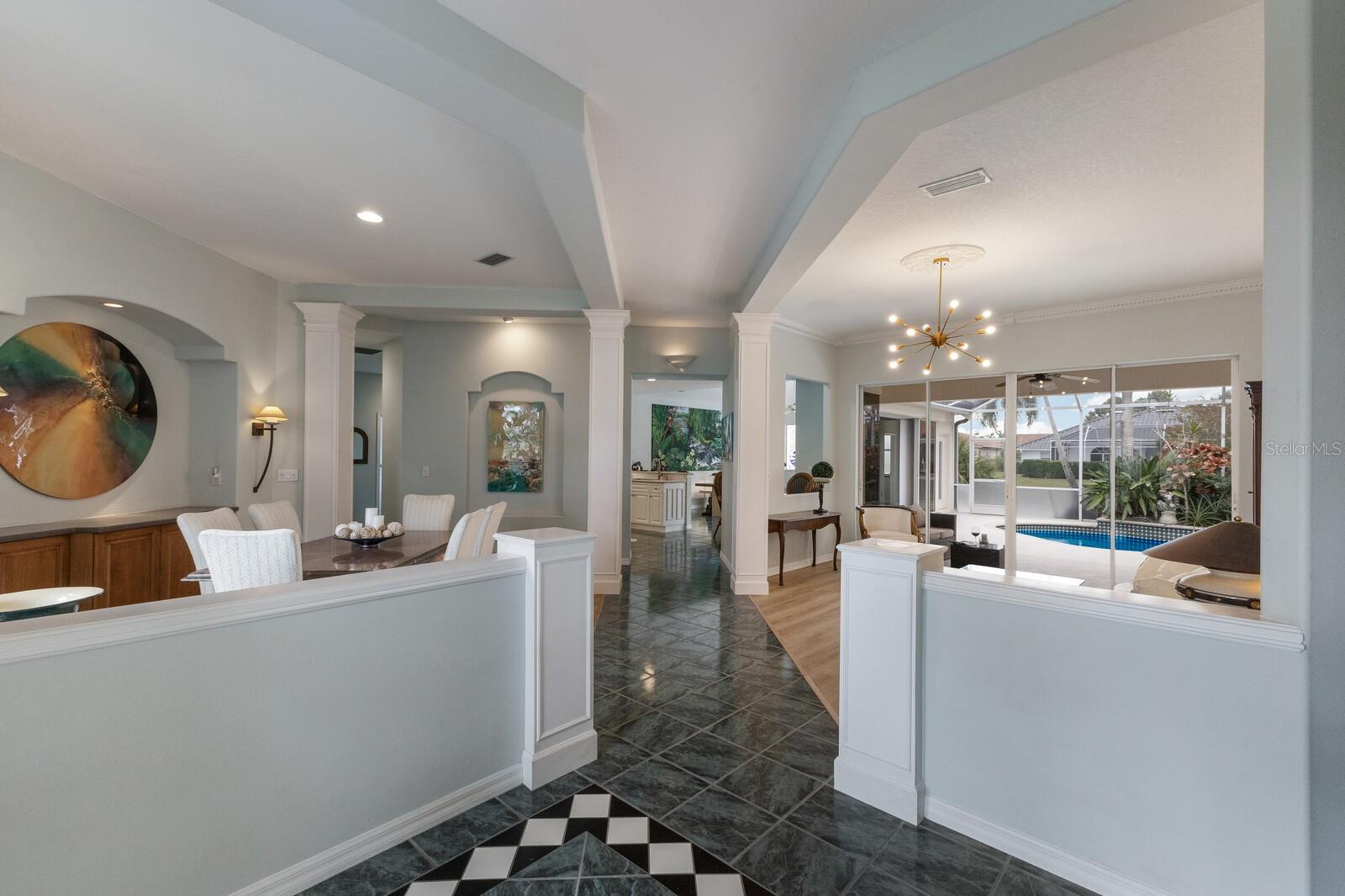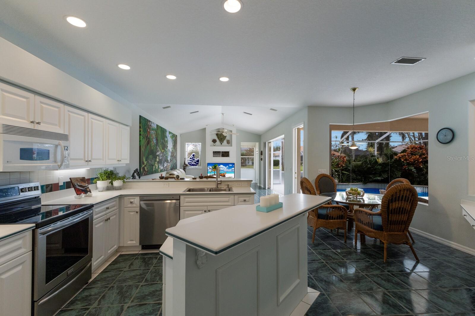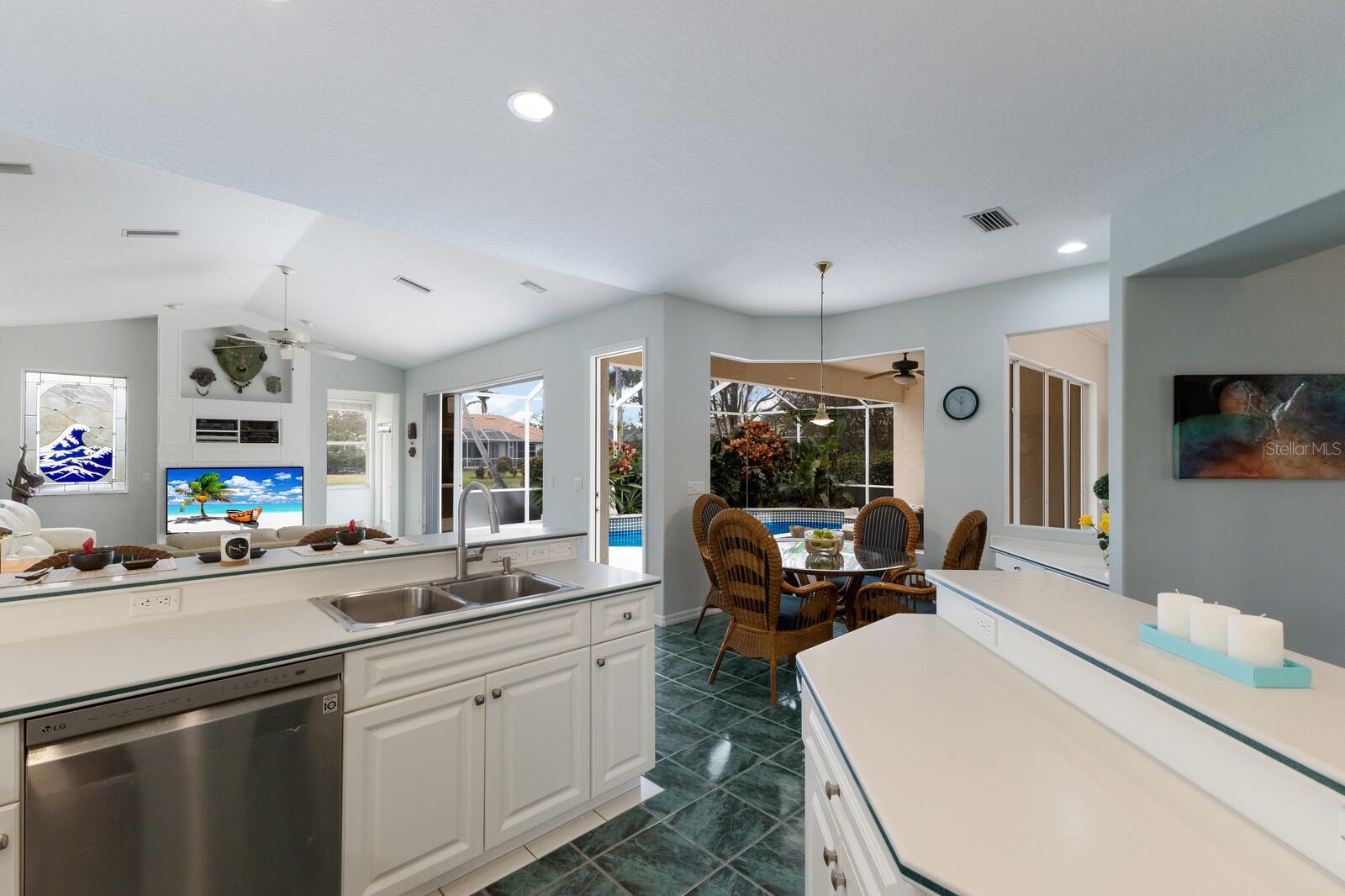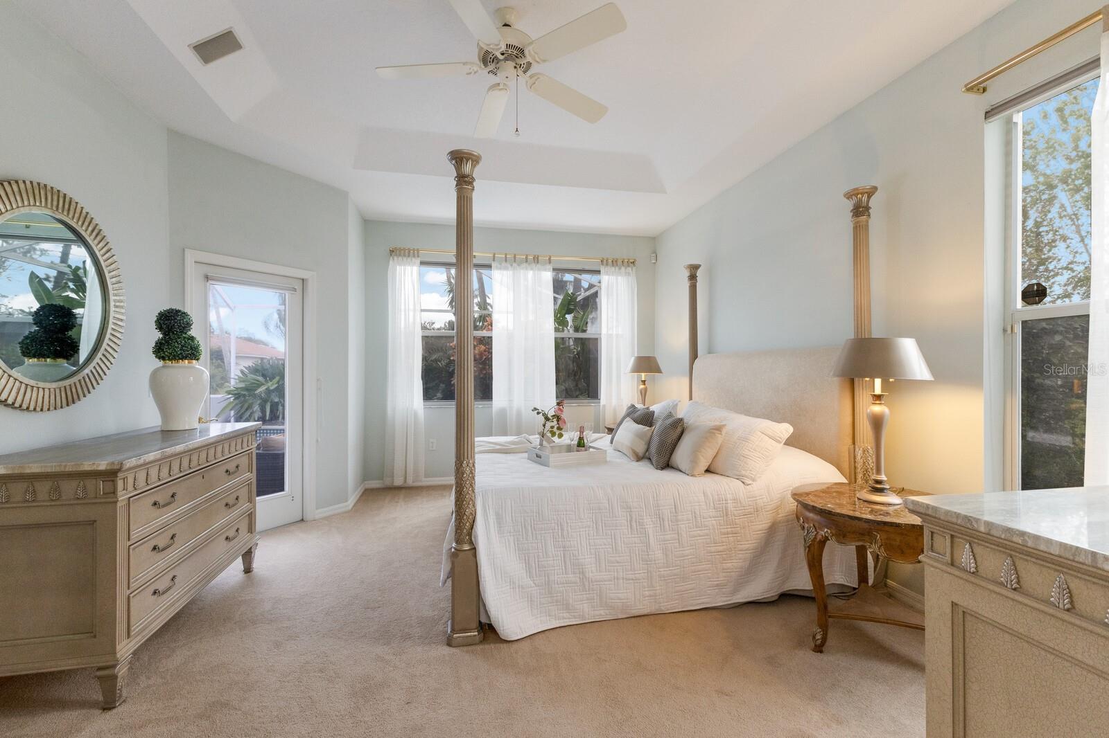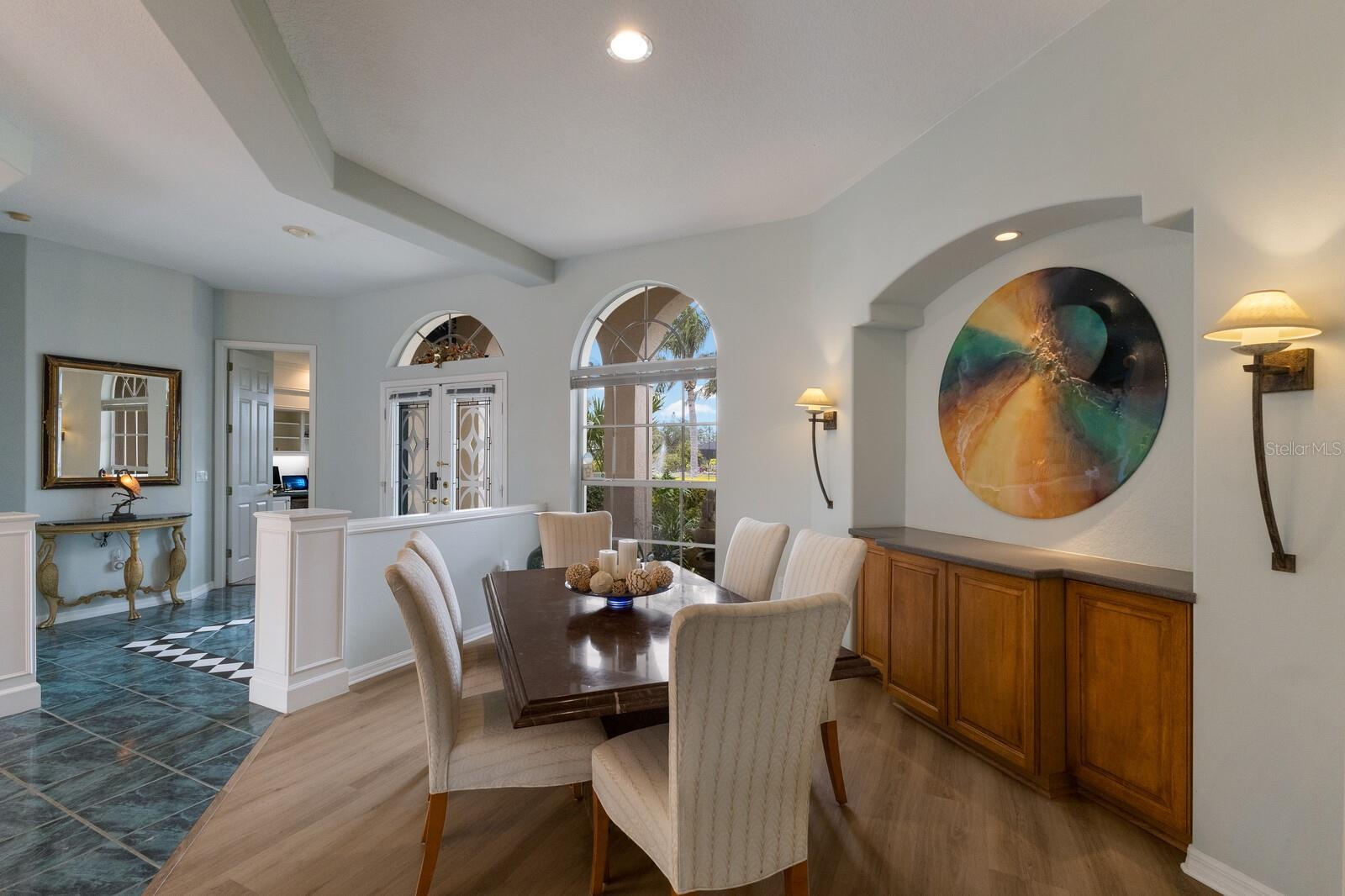 Welcome to your dream home in the sought-after McIntosh Lake community! This beautifully crafted Lee Wetherington-built pool home offers 3 bedrooms, a den, 2.5 bathrooms, and a spacious 2-car garage, all spread across 2,678 sq. ft. of luxurious living space. Situated on a serene lakefront lot with water views on two sides, this property combines elegance, functionality, and an unbeatable location. Step inside and be greeted by soaring ceilings, crown molding, and custom architectural details that exude timeless charm. The thoughtfully designed split-bedroom floor plan ensures privacy while providing ample space to entertain. The heart of the home, the chef's kitchen, boasts a center island, breakfast bar, and a cozy breakfast nook with breathtaking views of the pool and lake. Adjacent, the inviting family room features vaulted ceilings and pocket sliders that seamlessly connect indoor and outdoor living spaces. The primary suite is a true retreat, complete with a tray ceiling, large windows, and private access to the lanai. The en-suite bathroom offers dual sinks, a soaking tub, and a walk-in shower. Two additional bedrooms share a well-appointed bathroom, while the half bath conveniently doubles as a pool bath. Outside, the oversized screened lanai and lagoon-style pool create a private oasis, surrounded by lush tropical landscaping. The expansive lot features a long driveway for extra parking and plenty of space for outdoor gatherings. Located in an A-rated school district and close to the Legacy Trail, Siesta Key Beach, downtown Sarasota, and premier shopping and dining, this home offers the perfect balance of luxury and convenience. With low HOA fees and no CDD fees, you’ll enjoy significant savings compared to neighboring communities. Don’t miss the opportunity to own this exceptional property in McIntosh Lake. Schedule your private showing today!