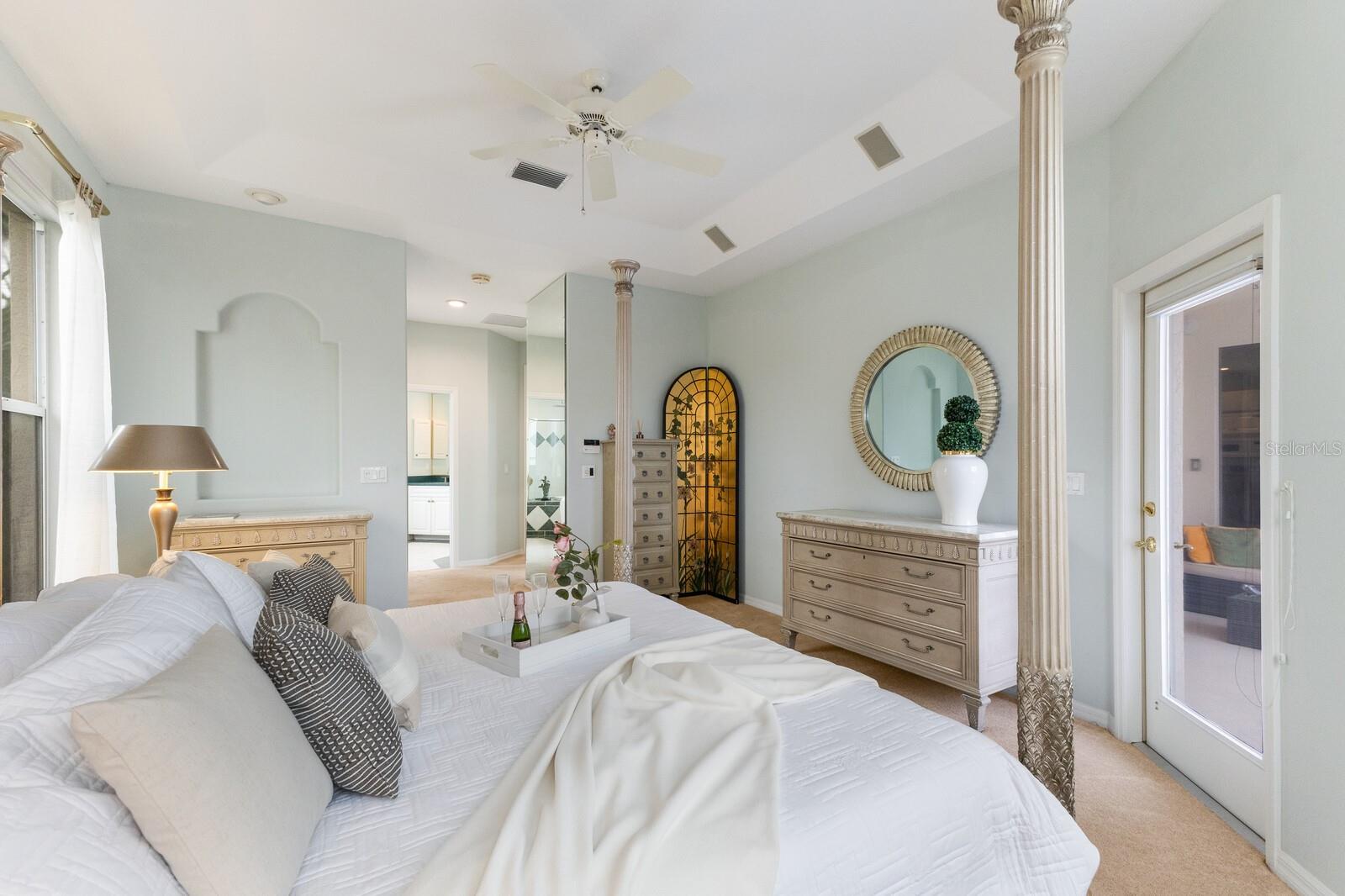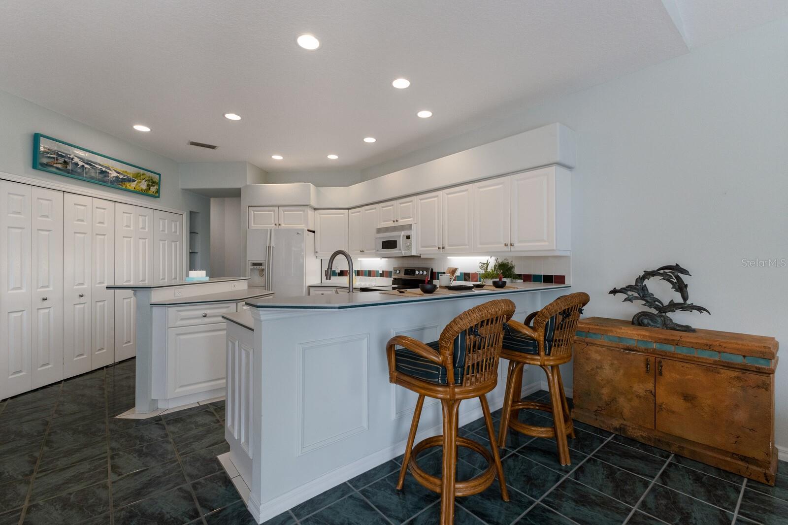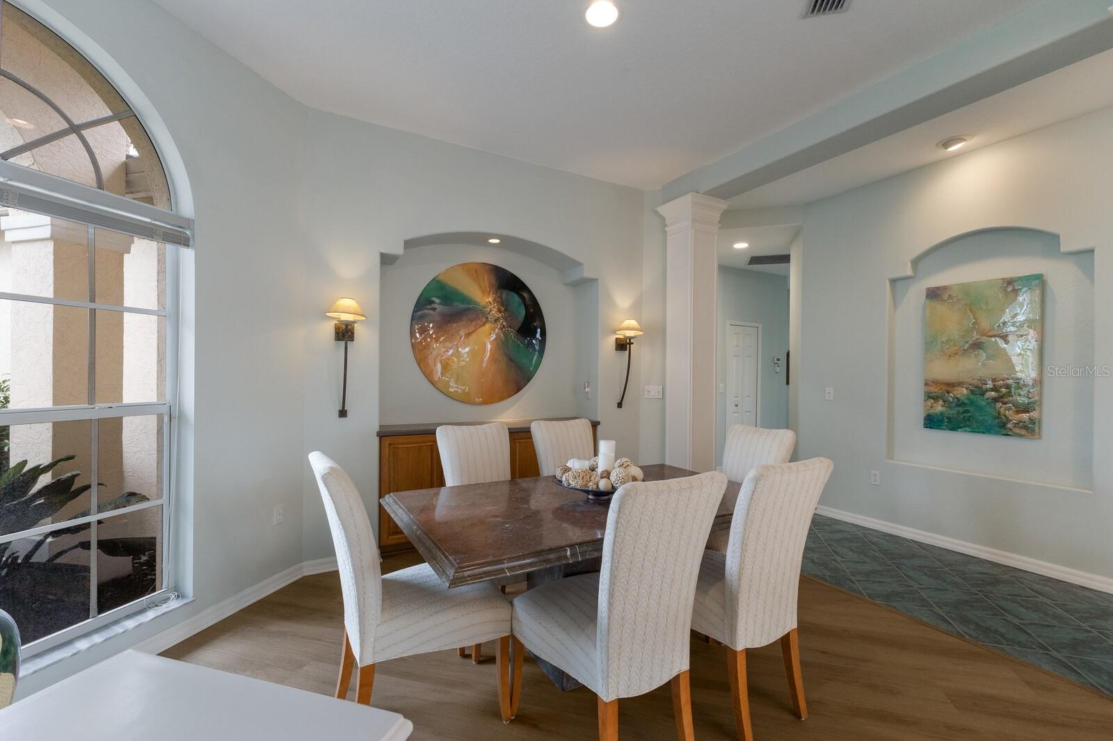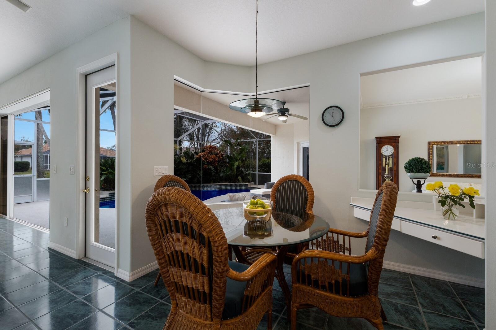 Welcome to your dream home in the sought-after McIntosh Lake community! This beautifully crafted Lee Wetherington-built pool home offers 3 bedrooms, a den, 2.5 bathrooms, and a spacious 2-car garage, all spread across 2,678 sq. ft. of luxurious living space. Situated on a serene lakefront lot with water views on two sides, this property combines elegance, functionality, and an unbeatable location. Step inside and be greeted by soaring ceilings, crown molding, and custom architectural details that exude timeless charm. The thoughtfully designed split-bedroom floor plan ensures privacy while providing ample space to entertain. The heart of the home, the chef's kitchen, boasts a center island, breakfast bar, and a cozy breakfast nook with breathtaking views of the pool and lake. Adjacent, the inviting family room features vaulted ceilings and pocket sliders that seamlessly connect indoor and outdoor living spaces. The primary suite is a true retreat, complete with a tray ceiling, large windows, and private access to the lanai. The en-suite bathroom offers dual sinks, a soaking tub, and a walk-in shower. Two additional bedrooms share a well-appointed bathroom, while the half bath conveniently doubles as a pool bath. Outside, the oversized screened lanai and lagoon-style pool create a private oasis, surrounded by lush tropical landscaping. The expansive lot features a long driveway for extra parking and plenty of space for outdoor gatherings. Located in an A-rated school district and close to the Legacy Trail, Siesta Key Beach, downtown Sarasota, and premier shopping and dining, this home offers the perfect balance of luxury and convenience. With low HOA fees and no CDD fees, you’ll enjoy significant savings compared to neighboring communities. Don’t miss the opportunity to own this exceptional property in McIntosh Lake. Schedule your private showing today!