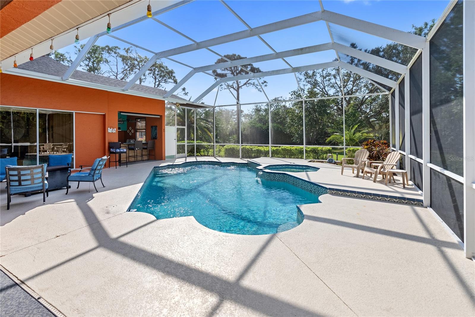 Welcome to 8628 Woodbriar Dr, an exceptional residence nestled in the highly sought-after Deer Creek community. This expansive 3,005 sq ft home features 3 bedrooms, 3 bathrooms, an oversized 3 car garage, and a new roof installed in 2023. Offering the perfect combination of comfort, style, and functionality, this home is set on a large half-acre lot—one of the largest in the community—providing ample space both indoors and outdoors. As you step inside, you'll be greeted by inviting living areas with soaring ceilings, elegant finishes, and an open floor plan that seamlessly flows from room to room. The luxurious master suite serves as a private retreat, featuring a spacious bedroom, walk-in closets, and a spa-like en-suite bath. The adjacent office offers a quiet and peaceful space, perfect for work or relaxation. Outside, the stunning backyard is an entertainer’s paradise, designed for year-round outdoor living. Enjoy the sparkling pool, rejuvenating hot tub, outdoor shower, and fully equipped outdoor kitchen—ideal for hosting gatherings or simply unwinding in your own private oasis. The expansive half-acre lot offers plenty of room for activities, gardening, or soaking in the tranquil surroundings. Located in the coveted Deer Creek community, this home offers easy access to top-rated schools, shopping, dining, and Sarasota's world-class beaches. Don’t miss the opportunity to own this exceptional property, which perfectly blends luxurious living with the best of Florida’s outdoor lifestyle. Schedule a private tour today and discover all that 8628 Woodbriar Dr has to offer!
