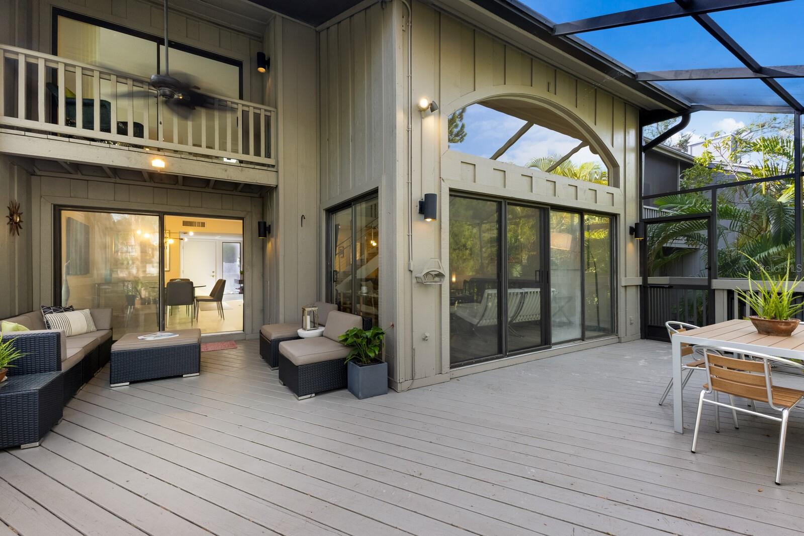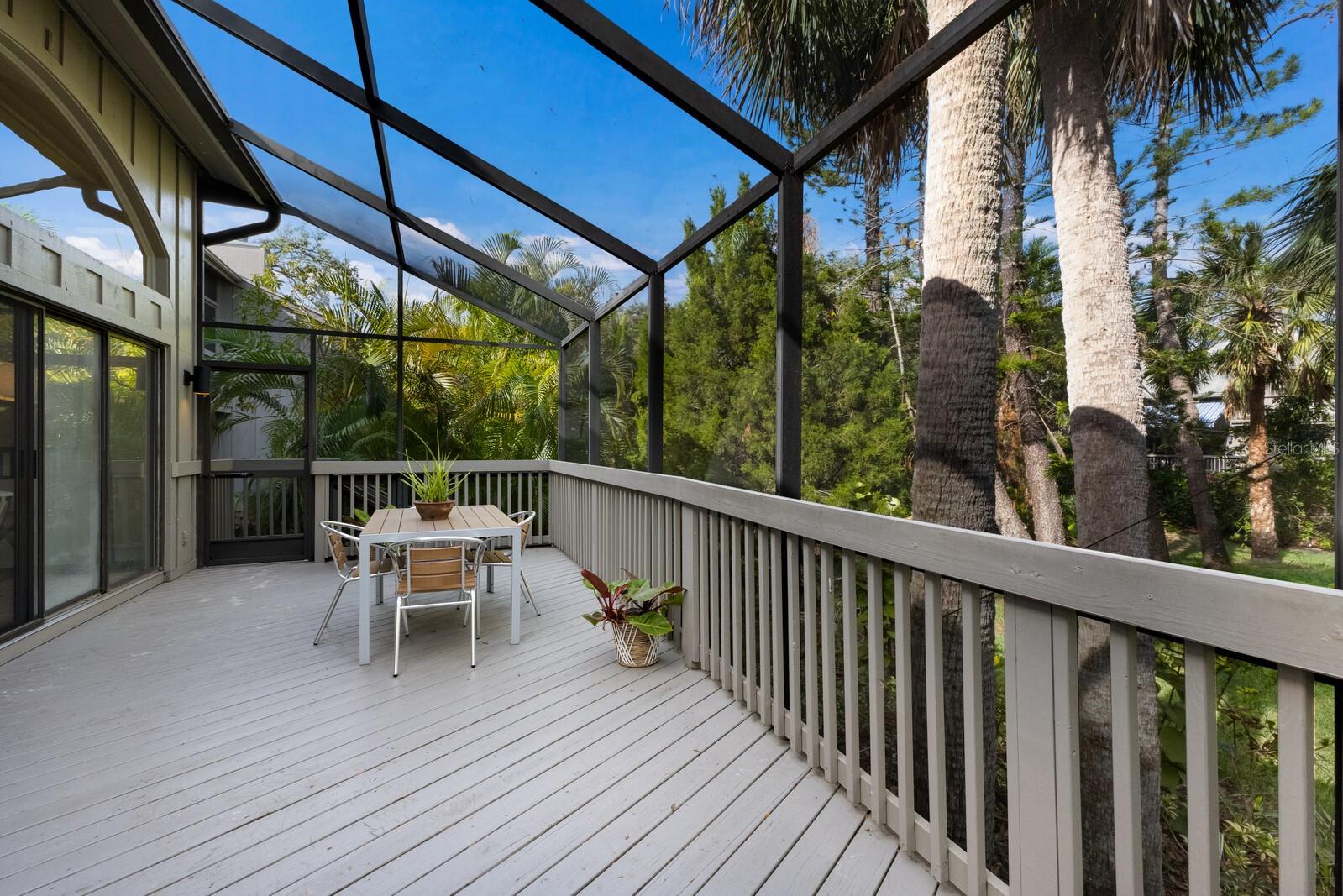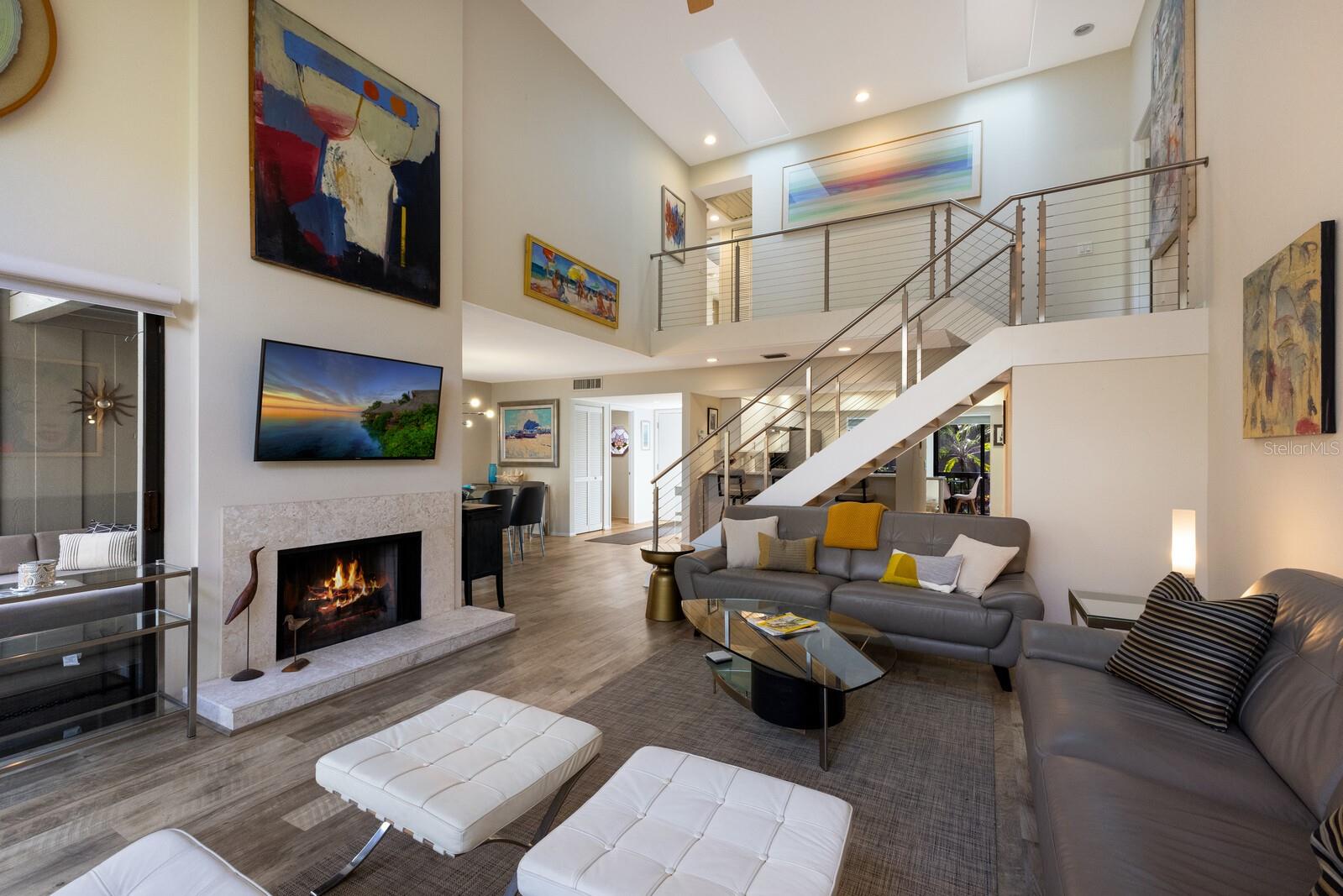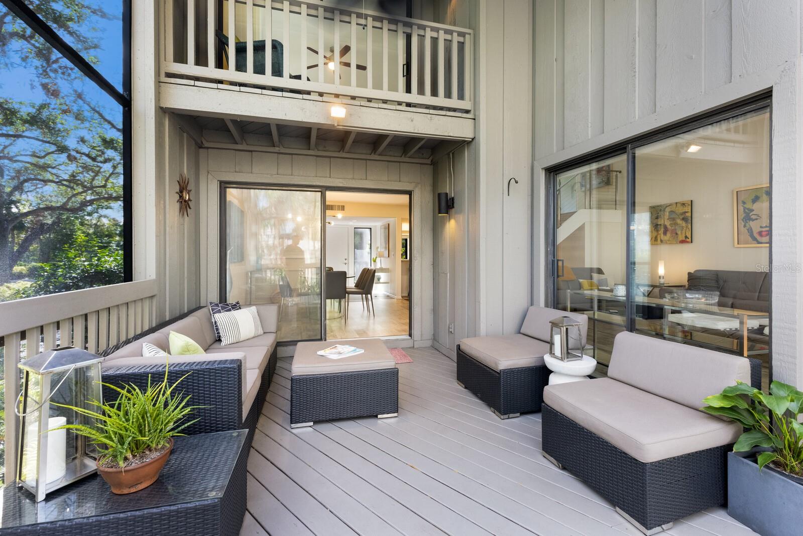 Welcome to your dream townhome in the Landings! This spacious 3-bedroom, 2.5-bathroom gem offers 2,040 square feet of comfortable living space, perfect for those seeking a blend of relaxation and active lifestyle. Enjoy your morning coffee on the oversized screened deck overlooking lush greenery Inside, be captivated by vaulted ceilings, skylights, and a custom arched window that fills the living room with natural light. A wood-burning fireplace with a stylish tile front adds warmth and sophistication. The updated kitchen is a chef's dream, boasting state-of-the-art appliances, sleek quartz countertops, and an eat-in area with serene views. Upstairs, the spacious master suite awaits, complete with high ceilings, a private balcony, and an en-suite bathroom. Two additional guest rooms, each with their own balcony, share a beautifully updated bath. This home is a true oasis of tranquility, with a neutral color palette and elegant tile flooring throughout. With over $100,000 in high-end renovations and with the $10,000 assessment already paid, this home is truly move-in ready. The Landings optional membership offers a lifestyle of tranquility and convenience with an array of amenities, including Har-Tru tennis courts, pickleball, a pro shop, a heated Olympic-size pool, and a clubhouse with community activities. Enjoy walking and biking trails through lush landscaping leading to the Intracoastal Waterway, with a kayak launch and a gazebo for sunset views. This picturesque community offers a mix of homes, from single-family to mid-rise condos, conveniently located near The Landings Shopping Center, Siesta Key Beach, and Downtown Sarasota. The Landings embodies premier Sarasota living with excellent healthcare and top-rated schools nearby.