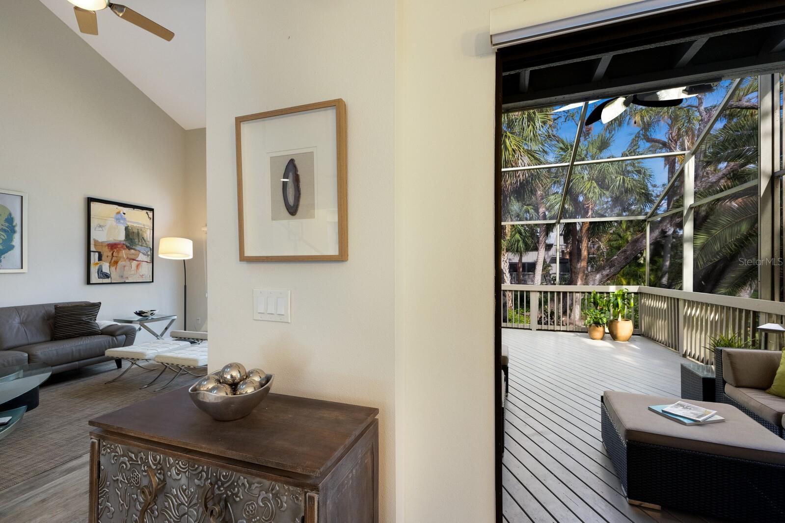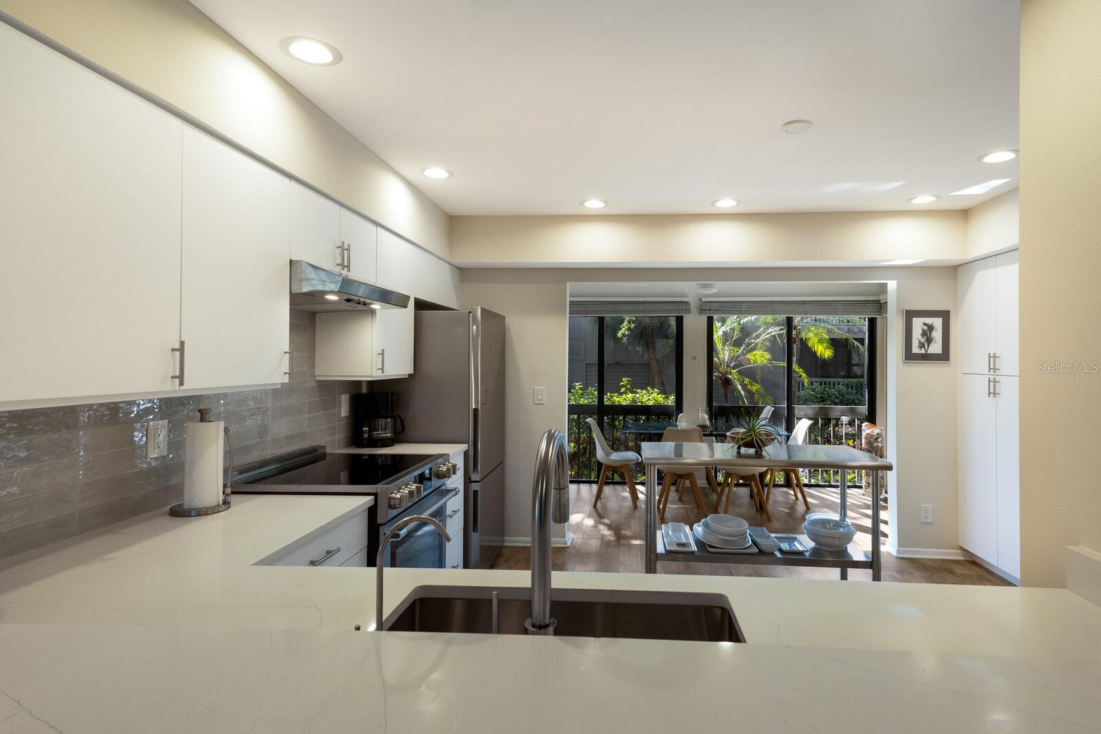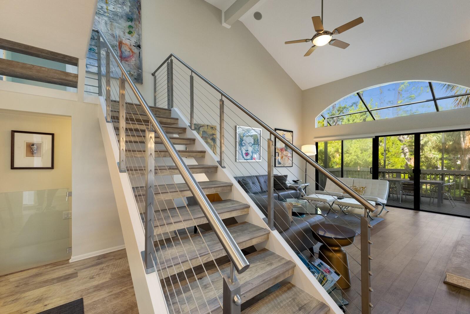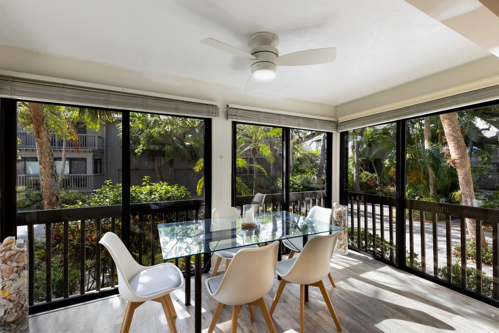 Welcome to your dream townhome in the Landings! This spacious 3-bedroom, 2.5-bathroom gem offers 2,040 square feet of comfortable living space, perfect for those seeking a blend of relaxation and active lifestyle. Enjoy your morning coffee on the oversized screened deck overlooking lush greenery Inside, be captivated by vaulted ceilings, skylights, and a custom arched window that fills the living room with natural light. A wood-burning fireplace with a stylish tile front adds warmth and sophistication. The updated kitchen is a chef's dream, boasting state-of-the-art appliances, sleek quartz countertops, and an eat-in area with serene views. Upstairs, the spacious master suite awaits, complete with high ceilings, a private balcony, and an en-suite bathroom. Two additional guest rooms, each with their own balcony, share a beautifully updated bath. This home is a true oasis of tranquility, with a neutral color palette and elegant tile flooring throughout. With over $100,000 in high-end renovations and with the $10,000 assessment already paid, this home is truly move-in ready. The Landings optional membership offers a lifestyle of tranquility and convenience with an array of amenities, including Har-Tru tennis courts, pickleball, a pro shop, a heated Olympic-size pool, and a clubhouse with community activities. Enjoy walking and biking trails through lush landscaping leading to the Intracoastal Waterway, with a kayak launch and a gazebo for sunset views. This picturesque community offers a mix of homes, from single-family to mid-rise condos, conveniently located near The Landings Shopping Center, Siesta Key Beach, and Downtown Sarasota. The Landings embodies premier Sarasota living with excellent healthcare and top-rated schools nearby.