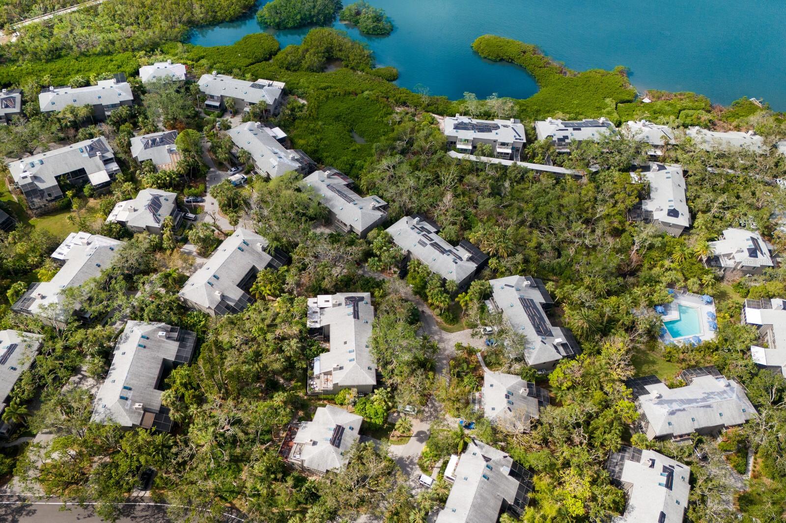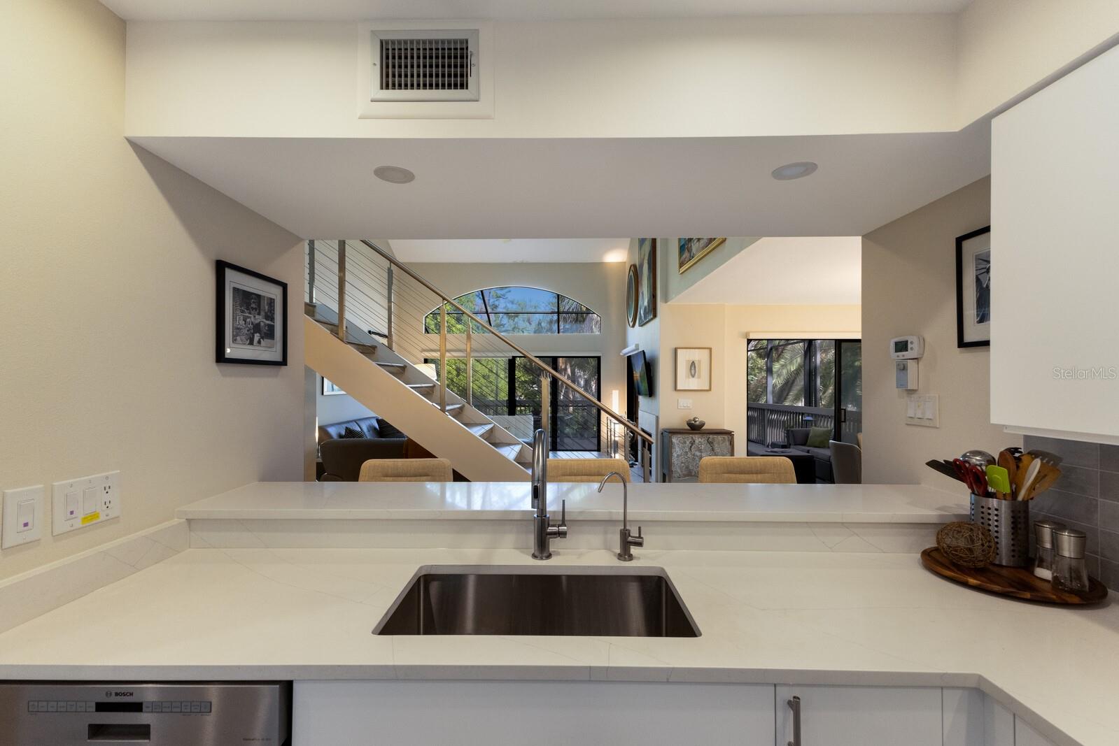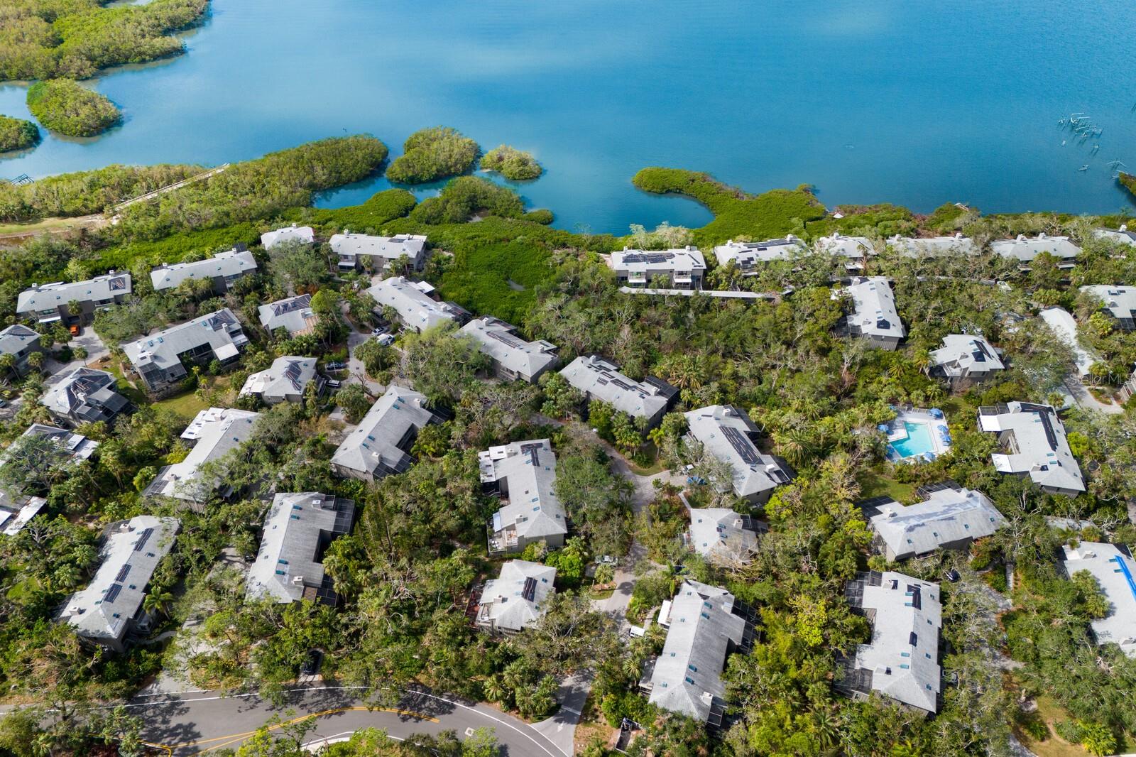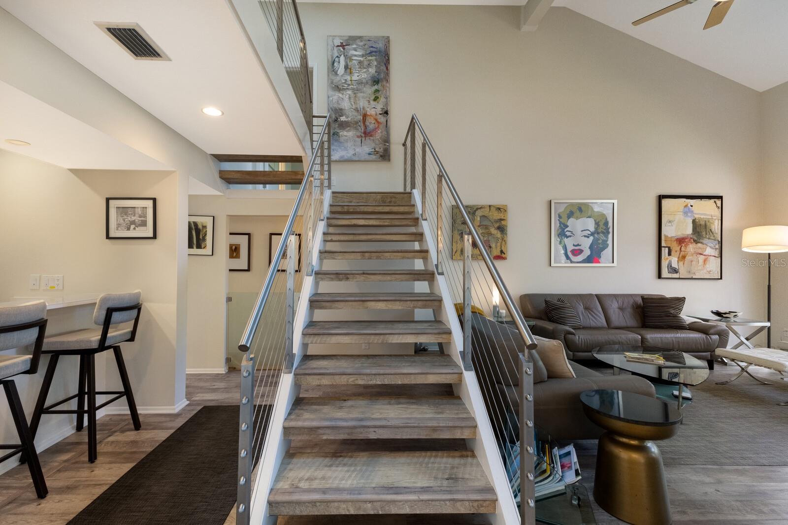 Welcome to your dream townhome in the Landings! This spacious 3-bedroom, 2.5-bathroom gem offers 2,040 square feet of comfortable living space, perfect for those seeking a blend of relaxation and active lifestyle. Enjoy your morning coffee on the oversized screened deck overlooking lush greenery Inside, be captivated by vaulted ceilings, skylights, and a custom arched window that fills the living room with natural light. A wood-burning fireplace with a stylish tile front adds warmth and sophistication. The updated kitchen is a chef's dream, boasting state-of-the-art appliances, sleek quartz countertops, and an eat-in area with serene views. Upstairs, the spacious master suite awaits, complete with high ceilings, a private balcony, and an en-suite bathroom. Two additional guest rooms, each with their own balcony, share a beautifully updated bath. This home is a true oasis of tranquility, with a neutral color palette and elegant tile flooring throughout. With over $100,000 in high-end renovations and with the $10,000 assessment already paid, this home is truly move-in ready. The Landings optional membership offers a lifestyle of tranquility and convenience with an array of amenities, including Har-Tru tennis courts, pickleball, a pro shop, a heated Olympic-size pool, and a clubhouse with community activities. Enjoy walking and biking trails through lush landscaping leading to the Intracoastal Waterway, with a kayak launch and a gazebo for sunset views. This picturesque community offers a mix of homes, from single-family to mid-rise condos, conveniently located near The Landings Shopping Center, Siesta Key Beach, and Downtown Sarasota. The Landings embodies premier Sarasota living with excellent healthcare and top-rated schools nearby.