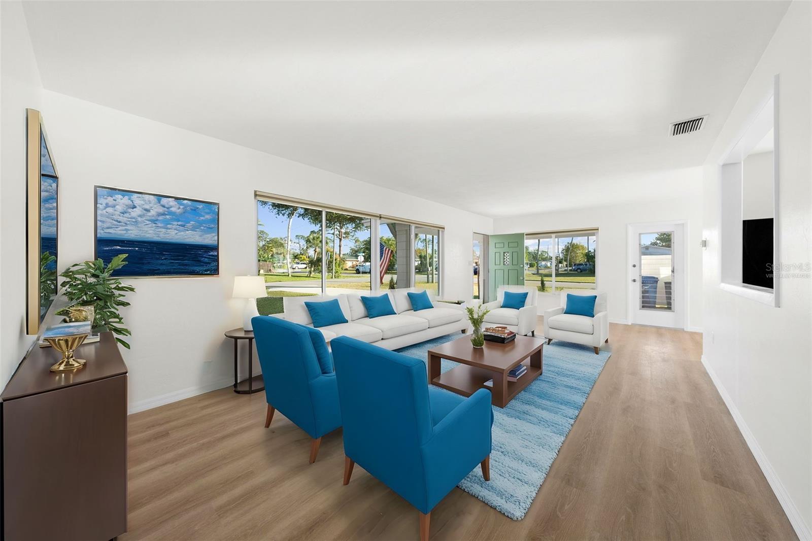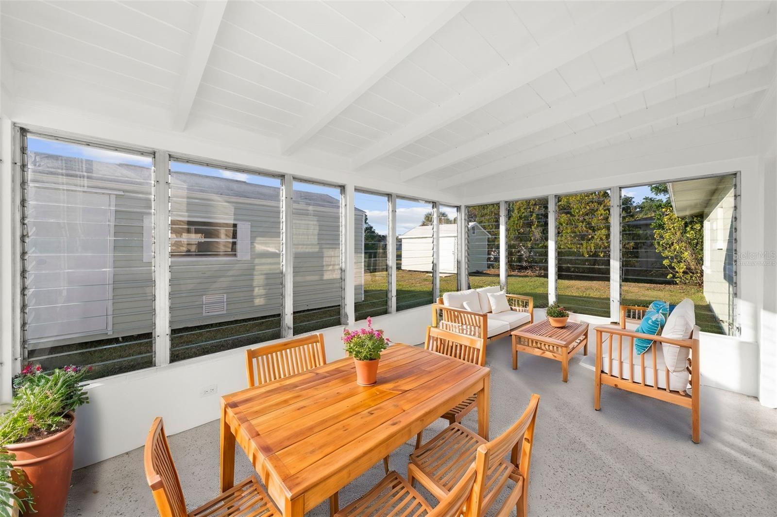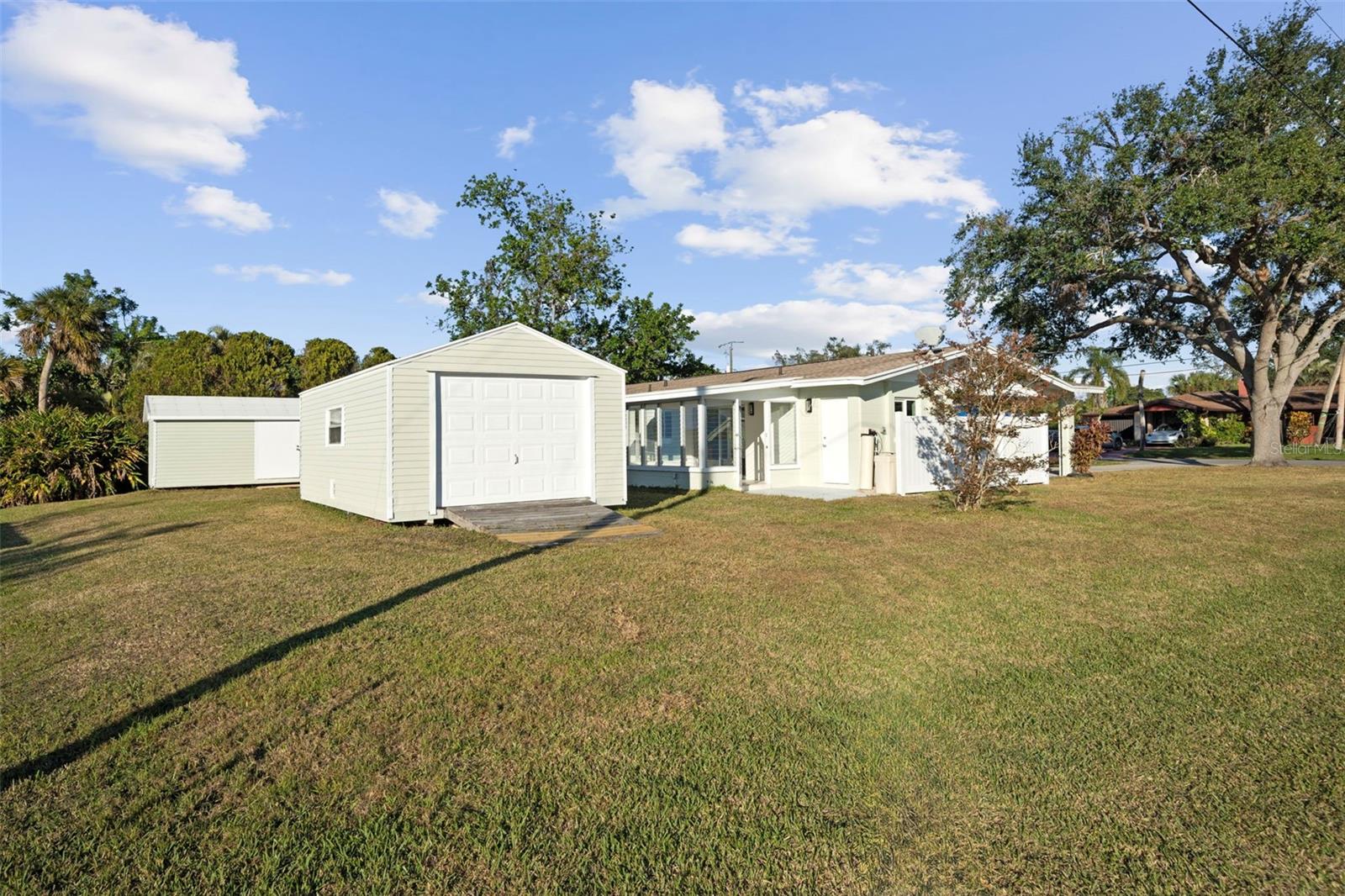 One or more photo(s) has been virtually staged. Located just over a mile from the World-Renowned Siesta Key, this exceptional home boasts numerous recent upgrades, including a New Roof (2023), New Hurricane-Rated Windows (2023), New Flooring throughout (2025), New Water Heater (2022), and a New A/C system (2022). The kitchen features a New Oven, Five-Burner Stovetop, and Dishwasher (2025). The home’s design offers a spacious enclosed patio surrounded by jalousie windows and a stunning terrazzo floor, ideal for relaxing or entertaining. Both bathrooms are beautifully designed with elegant ceramic tile. Additionally, the property includes two large metal storage units (24x14 and 12x10), providing plenty of storage space. This home offers a rare opportunity to enjoy modern upgrades, a prime location, and timeless charm in the highly desirable Gulf Gate area.