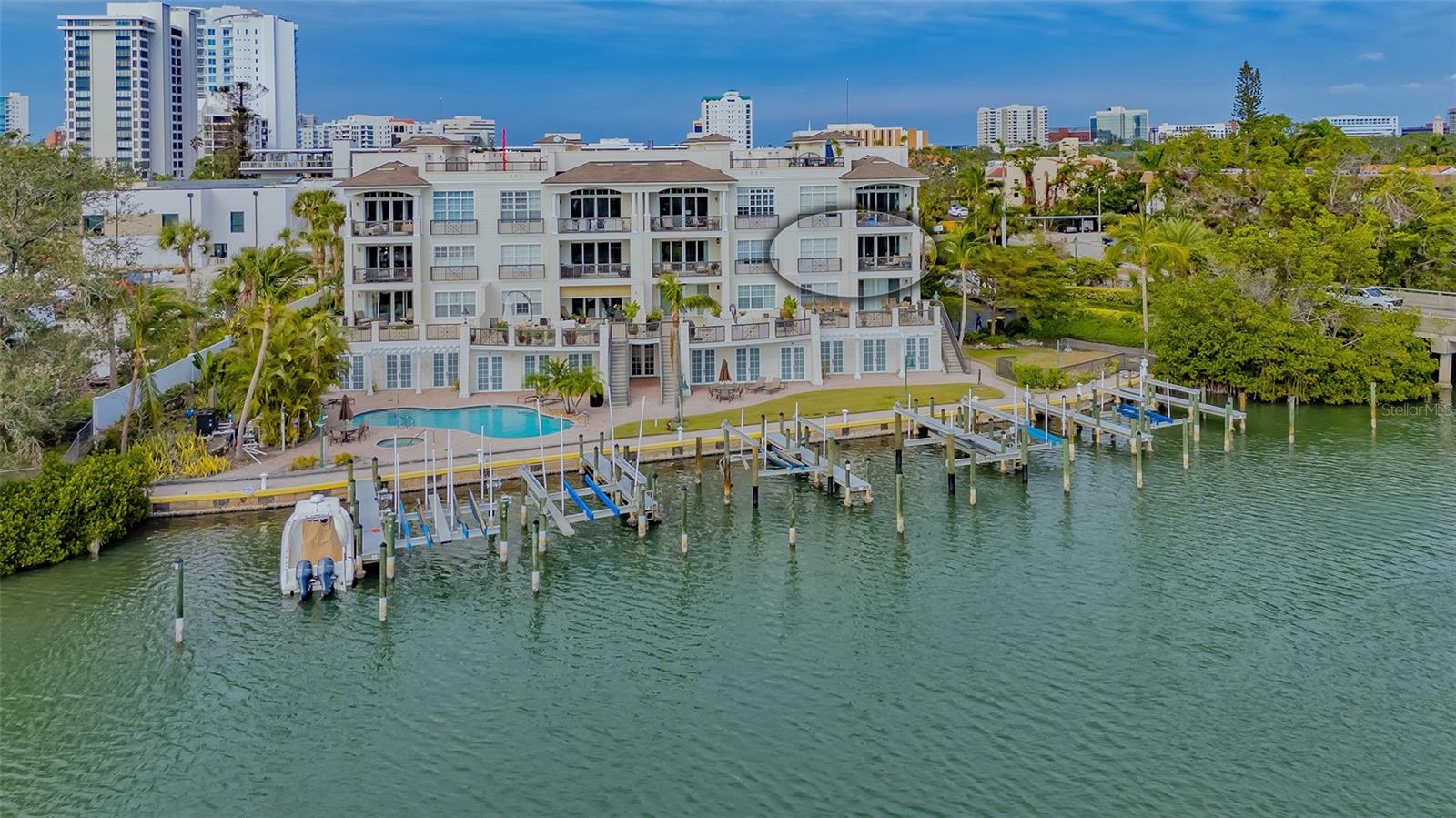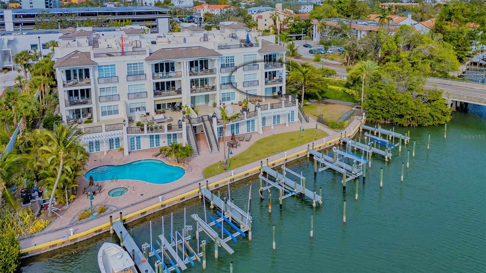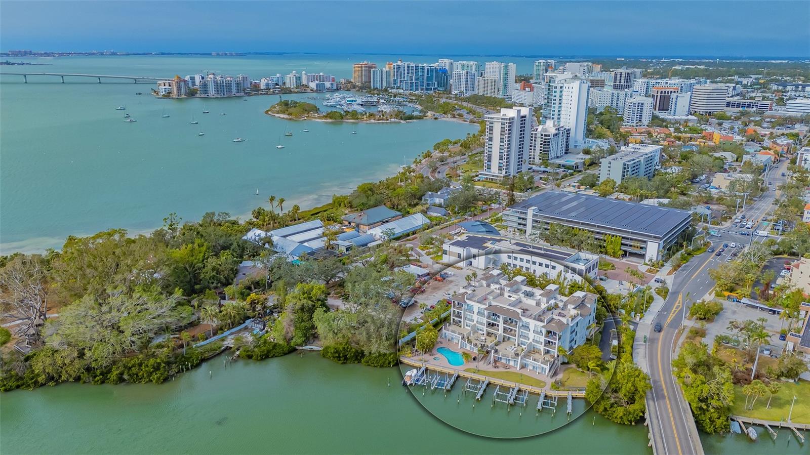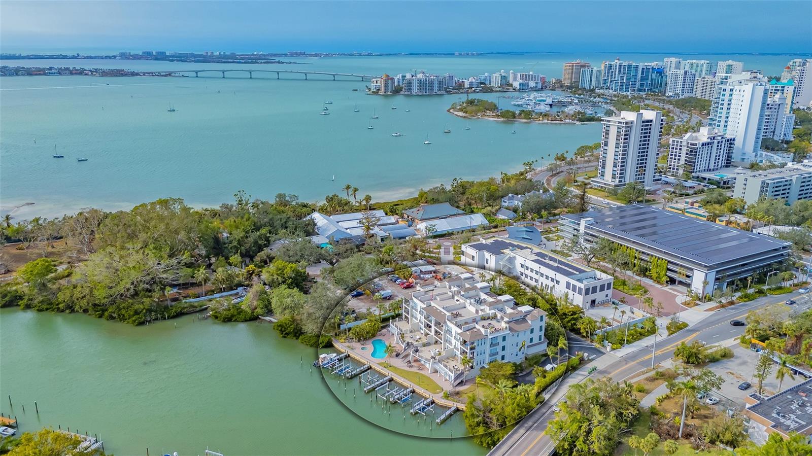 Welcome to Hudson Crossing, a boutique waterfront community of just 12 luxury residences in the heart of downtown Sarasota. Ideally located adjacent to the beautifully revitalized Selby Gardens, this serene enclave offers direct access to Sarasota’s vibrant bayfront and is minutes from world-class dining, shopping, cultural venues, and the Gulf’s pristine beaches. This exceptional waterfront residence spans over 2,300 square feet, blending the conveniences of condominium living with the privacy and ambiance of a single-family home. The spacious end unit has an open-concept layout featuring high ceilings, wood floors, and walls of windows. The chef-inspired kitchen is equipped with custom cabinetry, Wolf and Bosch appliances, a Sub-Zero refrigerator, a five-burner gas cooktop, a pantry and a large seating island. Adjacent to the kitchen, the bright and inviting great room offers ideal space for both entertaining and relaxing. The owner's suite is a luxurious retreat featuring a large walk- in closet, a spa-like primary bathroom, and direct access to the waterfront terrace. Two additional bedrooms provide flexible space for guests or a home office, each with walk-in closets and built-ins. For boating enthusiasts, a deeded boat dock offers direct access with no bridges to Sarasota Bay. The home also includes a private two-car garage with an EV charger, ground-level storage, and a personal cabana. A private elevator opens directly into the residence for added convenience. Residents of Hudson Crossing enjoy resort-style amenities, including a heated pool and spa with a sun deck. This residence offers the perfect balance of elegant waterfront living and proximity to everything Sarasota has to offer. Don’t miss the opportunity to make this extraordinary home your own!