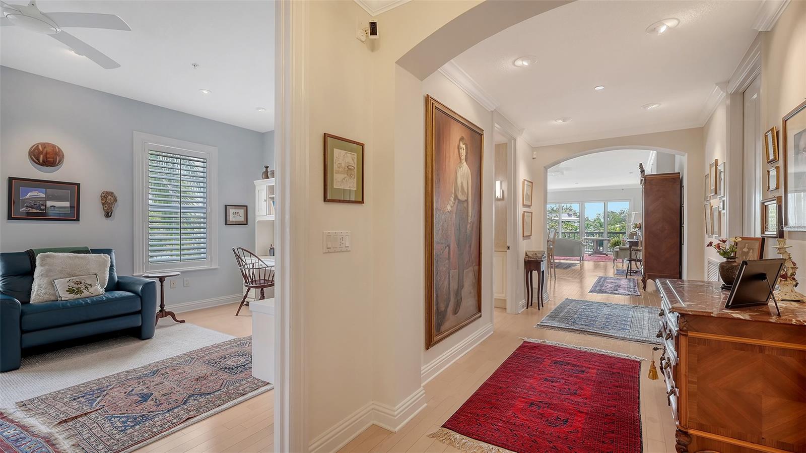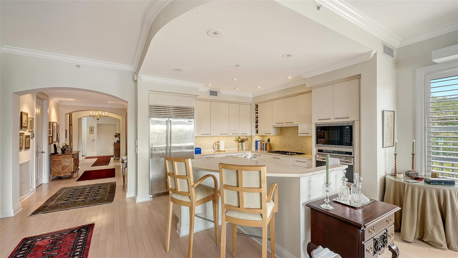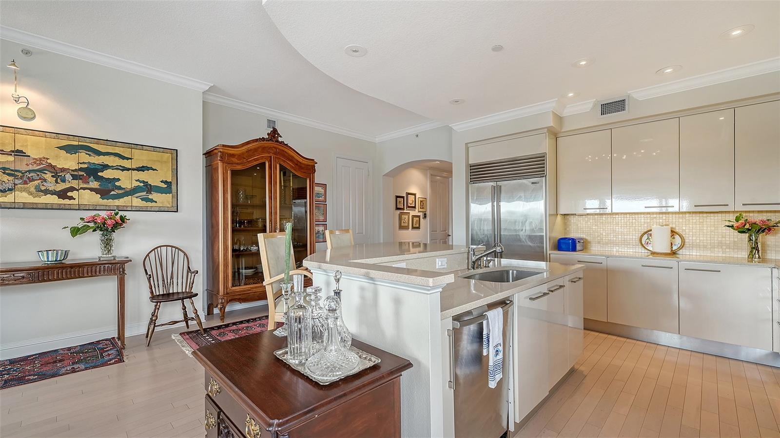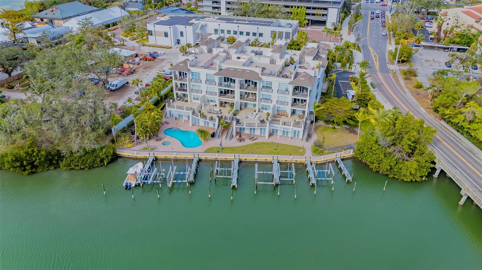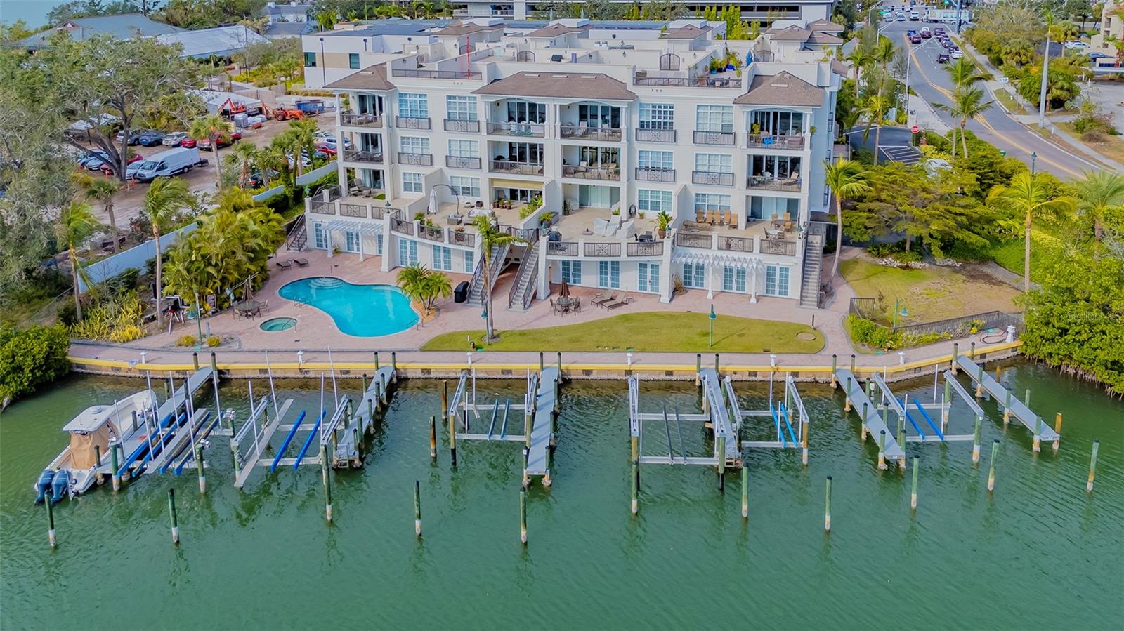 Welcome to Hudson Crossing, a boutique waterfront community of just 12 luxury residences in the heart of downtown Sarasota. Ideally located adjacent to the beautifully revitalized Selby Gardens, this serene enclave offers direct access to Sarasota’s vibrant bayfront and is minutes from world-class dining, shopping, cultural venues, and the Gulf’s pristine beaches. This exceptional waterfront residence spans over 2,300 square feet, blending the conveniences of condominium living with the privacy and ambiance of a single-family home. The spacious end unit has an open-concept layout featuring high ceilings, wood floors, and walls of windows. The chef-inspired kitchen is equipped with custom cabinetry, Wolf and Bosch appliances, a Sub-Zero refrigerator, a five-burner gas cooktop, a pantry and a large seating island. Adjacent to the kitchen, the bright and inviting great room offers ideal space for both entertaining and relaxing. The owner's suite is a luxurious retreat featuring a large walk- in closet, a spa-like primary bathroom, and direct access to the waterfront terrace. Two additional bedrooms provide flexible space for guests or a home office, each with walk-in closets and built-ins. For boating enthusiasts, a deeded boat dock offers direct access with no bridges to Sarasota Bay. The home also includes a private two-car garage with an EV charger, ground-level storage, and a personal cabana. A private elevator opens directly into the residence for added convenience. Residents of Hudson Crossing enjoy resort-style amenities, including a heated pool and spa with a sun deck. This residence offers the perfect balance of elegant waterfront living and proximity to everything Sarasota has to offer. Don’t miss the opportunity to make this extraordinary home your own!