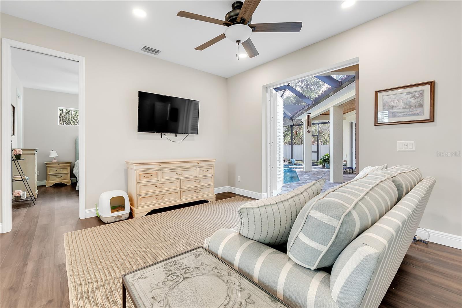 Move-In Ready | No CDD | Private In-Law Suite | Income-Producing Potential | Generator Welcome to this exceptional 6-bedroom, 5.5-bathroom estate nestled in the tranquil, non-gated community of Oak Vista—a rare find offering both privacy and convenience in Sarasota. With no CDD fees, this move-in ready home is perfect for multi-generational living, guests, or rental opportunities. The fully self-sufficient in-law suite, added in 2022 alongside the saltwater pool and spa, features its own HVAC system, electrical panel, tankless water heater, and washer/dryer hookups, providing complete independence and comfort. Enjoy peace of mind with a whole-house generator, ensuring uninterrupted power during any weather conditions. Inside, the home boasts luxury vinyl plank flooring, new carpet, quartz countertops, and architectural details like tray ceilings and a cozy English-style library with wood-beam accents. A spacious loft, ample storage, and a fully fenced backyard enhance the home's functionality. Step outside to your private oasis featuring wood plank ceilings, upgraded pavers, and a custom fire pit—ideal for entertaining or relaxing under the stars. Located just minutes from Sarasota's renowned beaches, top-rated hospitals, UTC Mall, and I-75, this Oak Vista gem offers the perfect blend of serenity and accessibility. Homes like this are rare—schedule your private showing today!