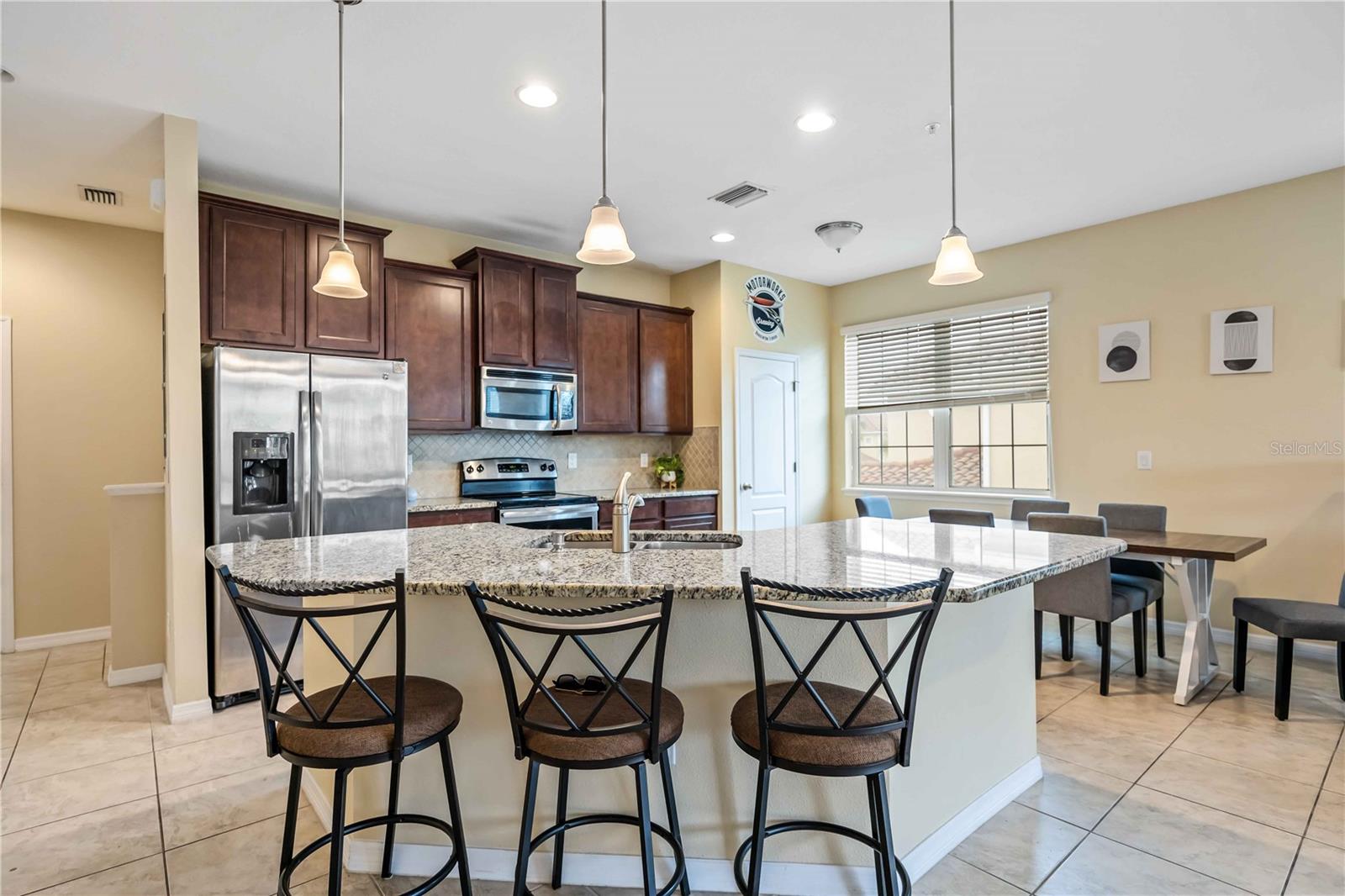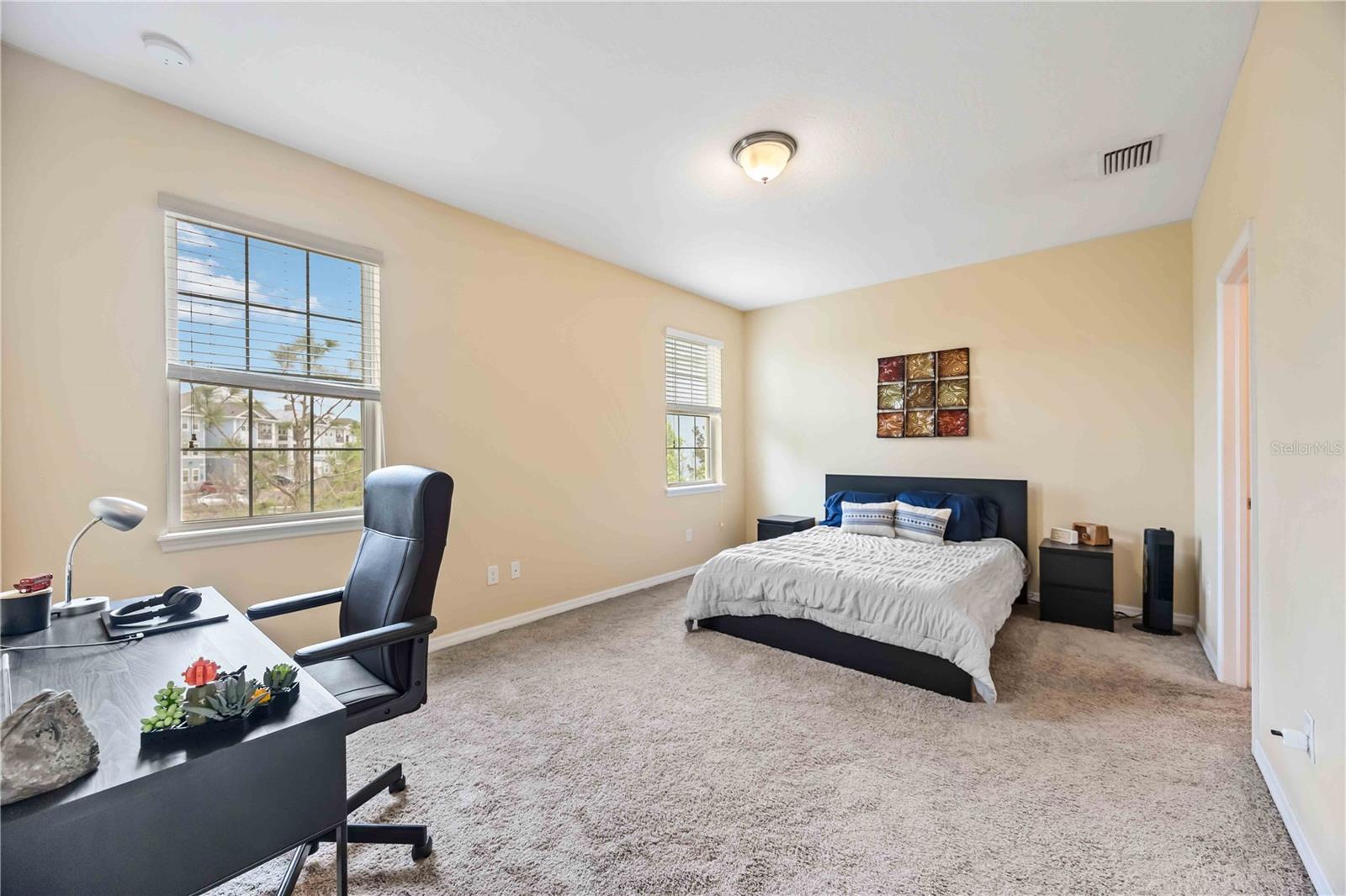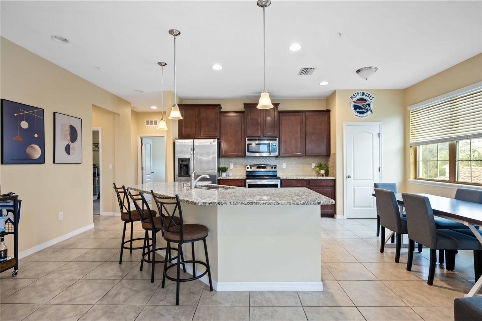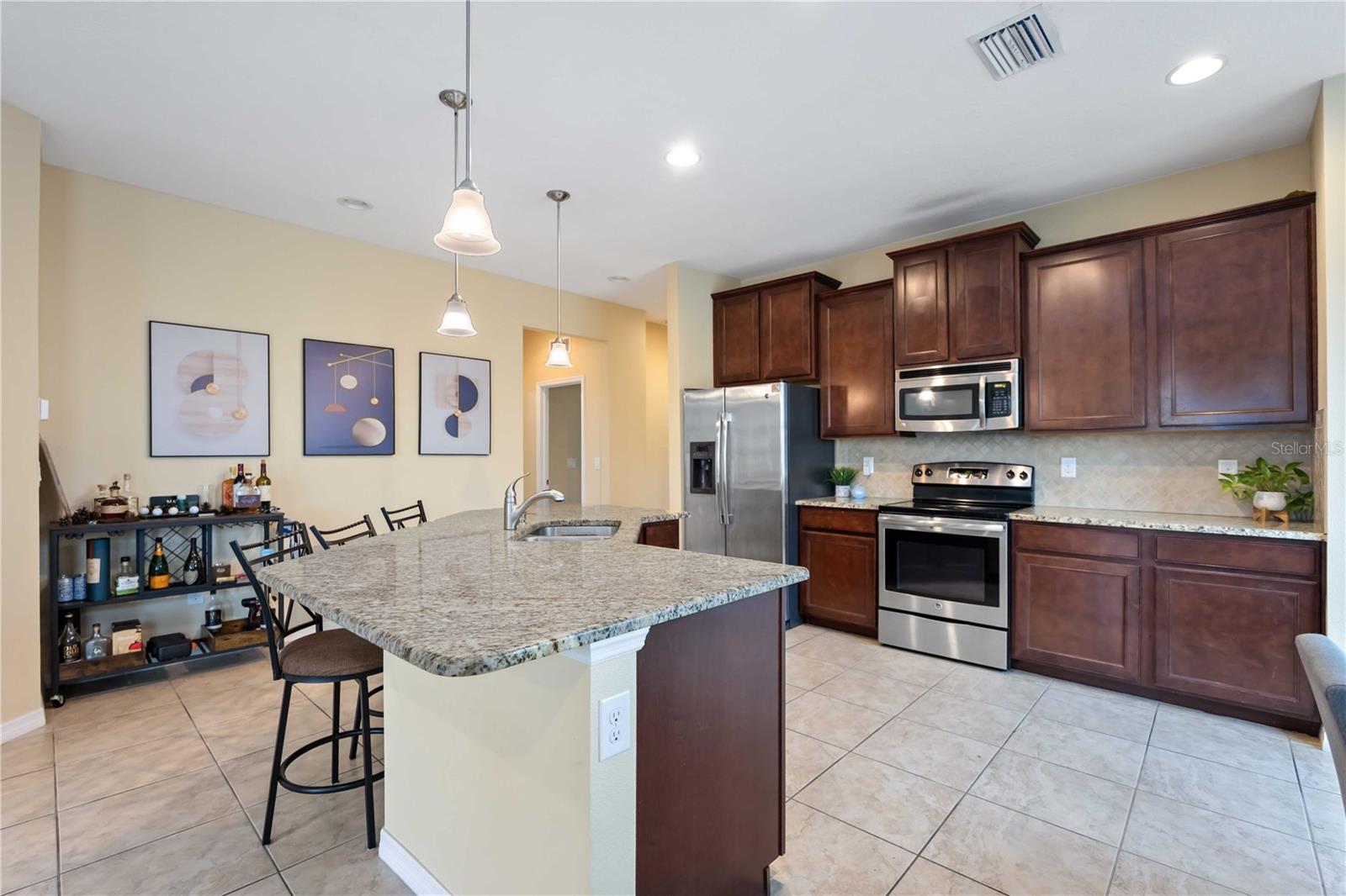 Nestled in the highly sought-after Soleil community, this beautifully designed 3 bedroom, 2 bathroom condo offers a perfect blend of style, comfort, and convenience. Upon entering, you are welcomed by a spacious chef’s kitchen featuring elegant wooden cabinetry, sleek stainless steel appliances, and a generous island that flows effortlessly into the open-concept living and dining areas—perfect for hosting guests or enjoying relaxed everyday living. Tile flooring stretches throughout the home, enhancing its modern aesthetic while providing easy maintenance. The primary suite is thoughtfully positioned for privacy, complete with a luxurious en-suite bathroom where you can unwind in the walk-in shower. A grand walk-in closet offers ample storage, making organization a breeze. Two additional bedrooms and a shared bathroom provide plenty of space for guests, a cozy retreat for visitors, or a peaceful setting for a home office or creative studio. In the center, you will find a bonus den for extended living space and room for guests. At the back of the home, a beautiful screened-in balcony offers the ideal spot to unwind with a glass of wine, where you can relax and take in the serene views of lush greenery and swaying palm trees that enhance the tranquility of the community. An attached one-car garage adds convenience with easy access and extra storage space. Centrally located, close to top-rated schools, popular shopping destinations, and a variety of dining options, this home offers the perfect balance of comfort and accessibility. Located in the vibrant, gated Soleil community, residents enjoy resort-style amenities, including a clubhouse, sparkling pool, state-of-the-art fitness center, dog park, grilling stations, bocce ball courts, and more—all with the advantage of NO CDD fees. Currently rented until April 2025, this property presents an outstanding investment opportunity or the ideal forever home! Don’t miss your chance to experience this exceptional lifestyle, call today to learn more before it’s gone!