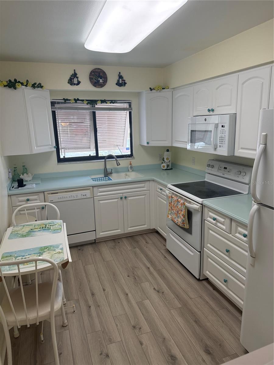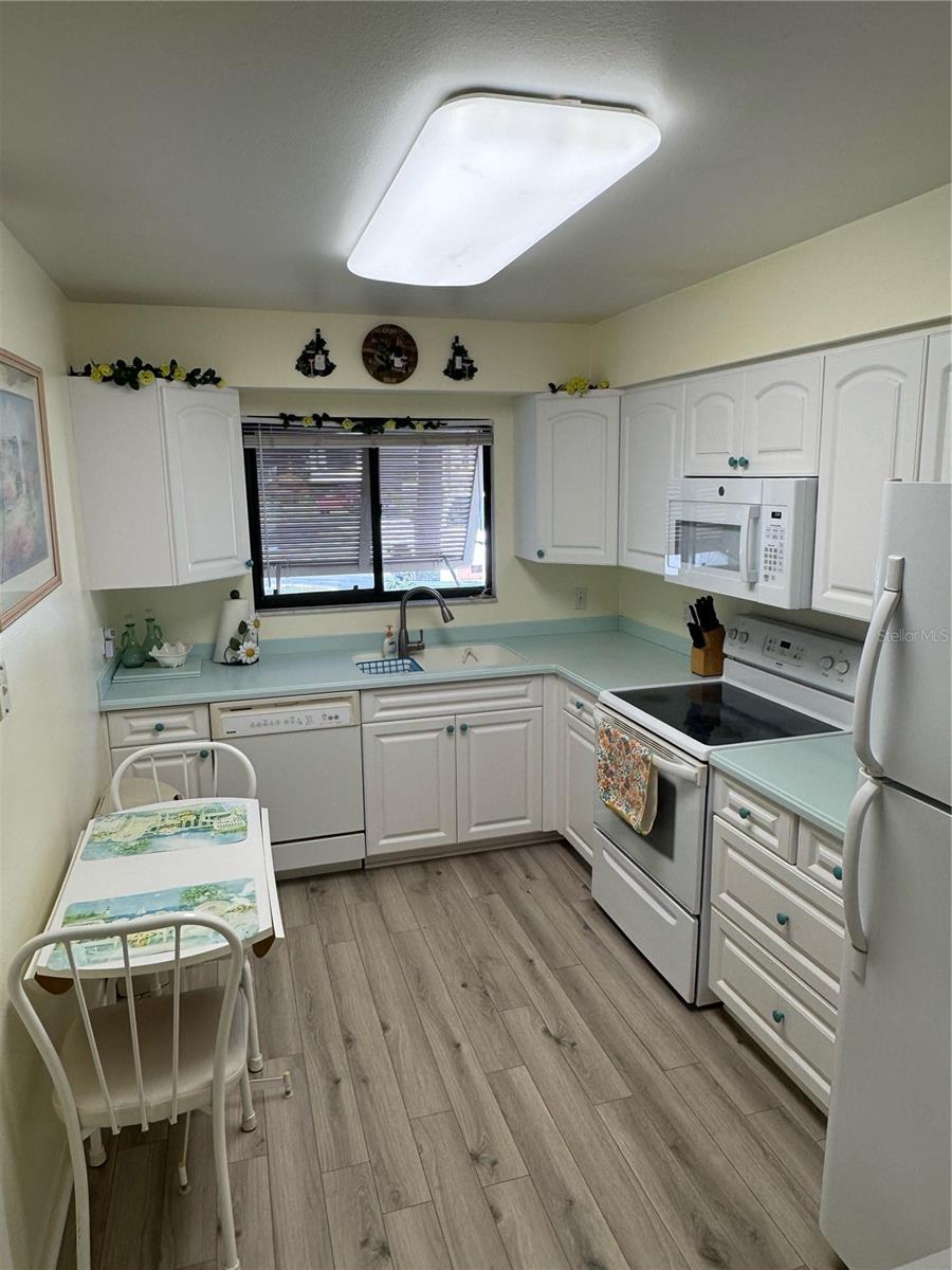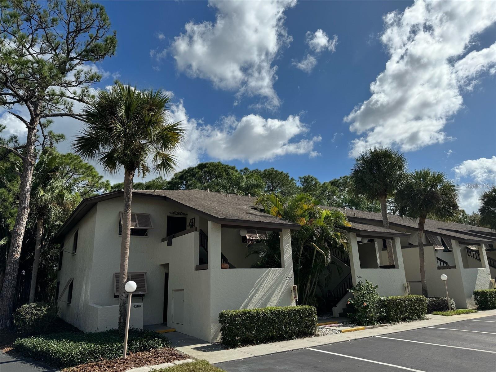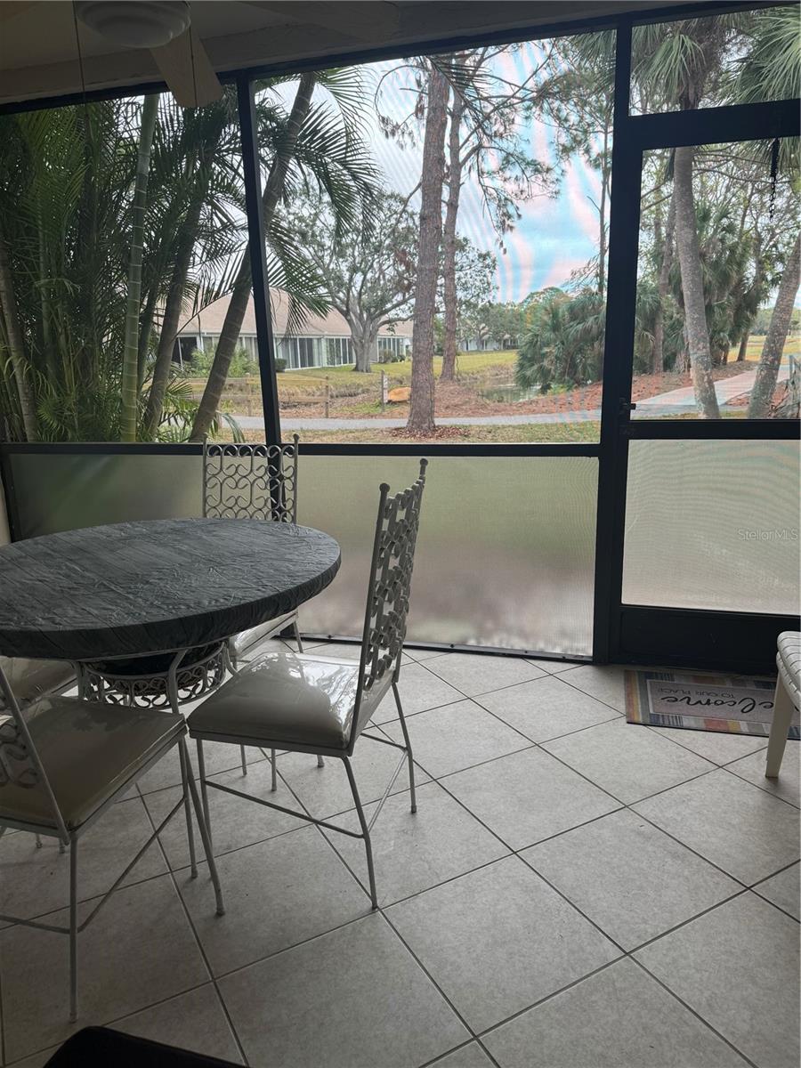 First Floor-End Unit-2 Bedroom-2 Bathrooms with one of the best locations in this condo association. You will enjoy the large screened in lanai with a private setting looking out to the water, golf course and nature trail. Large Master suite with sliding glass doors leading out to the screened in patio. Updated Master Bathroom with a newer walk-in shower. Updated kitchen with solid surface counter tops and a breakfast window overlooking the dining room. Luxury vinyl floors in the kitchen, dining room and living room. Two heated community pools, private parking space right out front with plenty of guest parking. You will just fall in love with this location of this condo! You can walk to the community center with several places to eat, dentist, travel agency, and much more! As a homeowner you will be able to use the New HOA community building with all its amenities, and if you like to walk or ride a bike you will fall in love the miles of sidewalks throughout the entire community. This condo can be purchased Turnkey Furnished or unfurnished.