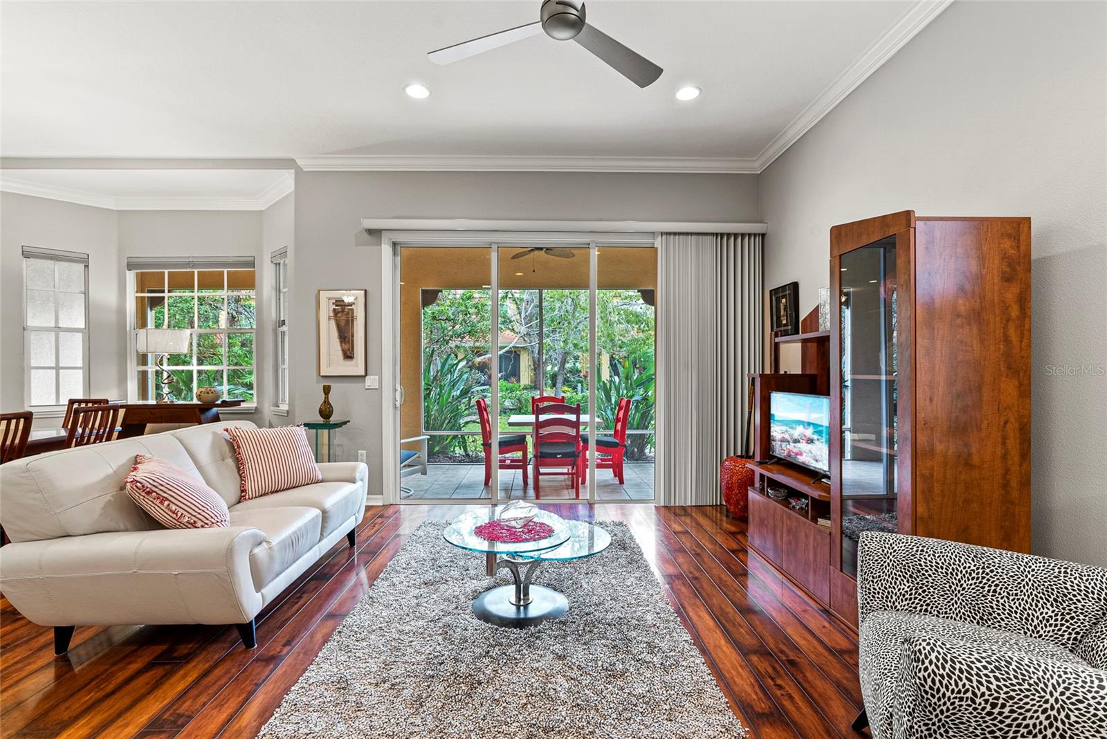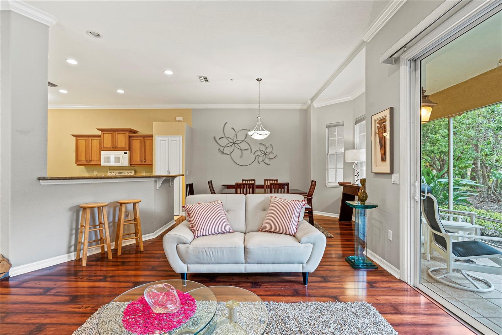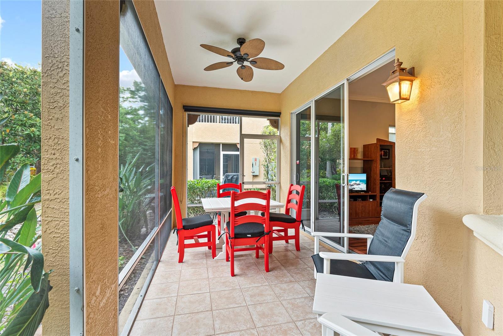 Start living the Florida lifestyle today with a move-in ready townhome in the ideally located community of Palmer Square West. This 3-bedroom, 3-bathroom unit is in excellent condition, a new A/C system, and being sold turnkey furnished, making it a perfect choice - whether for your primary residence, vacation home, or rental investment. Features in this townhome include high ceilings, crown molding, ceiling fans, luxury vinyl and tile flooring, plus impact resistant windows on all windows except the sliding doors and dining room bay window. The first floor offers living and dining areas, a beautiful eat-in kitchen with wood cabinets and granite countertops, a screened-in lanai running the width of the unit, plus a den or option of a third bedroom with an ensuite bath. The two-car garage has several storage areas, opens into a separate laundry room, and then into the kitchen. Two large bedrooms are located on the second floor, each with ensuite bathrooms, one with a private balcony; both have recently been painted and have new luxury vinyl flooring. Townhomes at Palmer Square West provide residents the peace of mind of living in a smaller, safe and secure, maintenance-free community, with brick paver driveways, new exterior painting and new barrel tile roofs on all 29 units, paid for and completed in 2023. In addition to relaxing at the community pavilion with heated pool and spa, or on the screened-in lanais overlooking the extensive landscaping, ponds and fountains, close proximity to shopping, restaurants, medical care, sports and recreation facilities – including a short drive to one of the best beaches in the world, Siesta Key – allow residents to stay close to home to enjoy year-round Florida living.