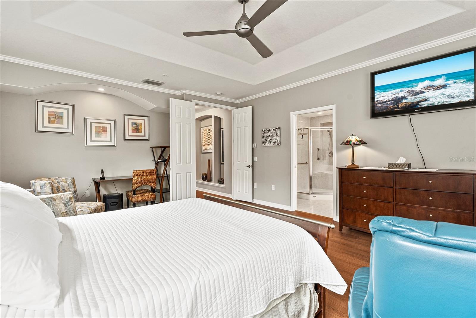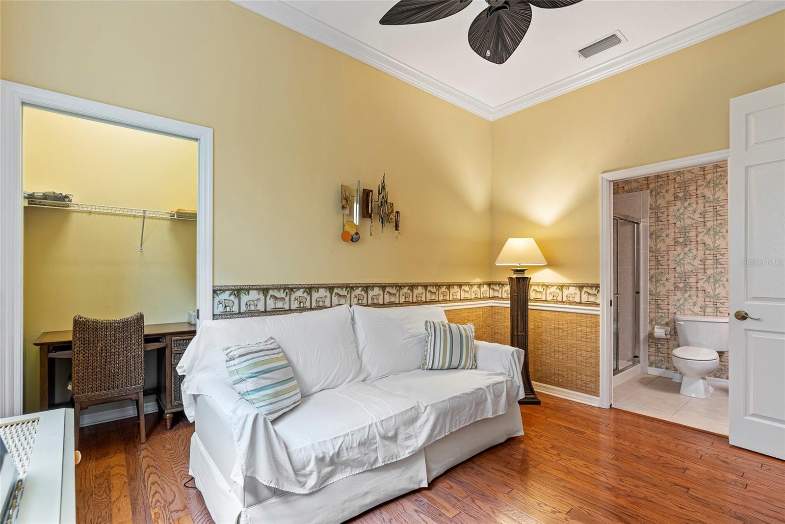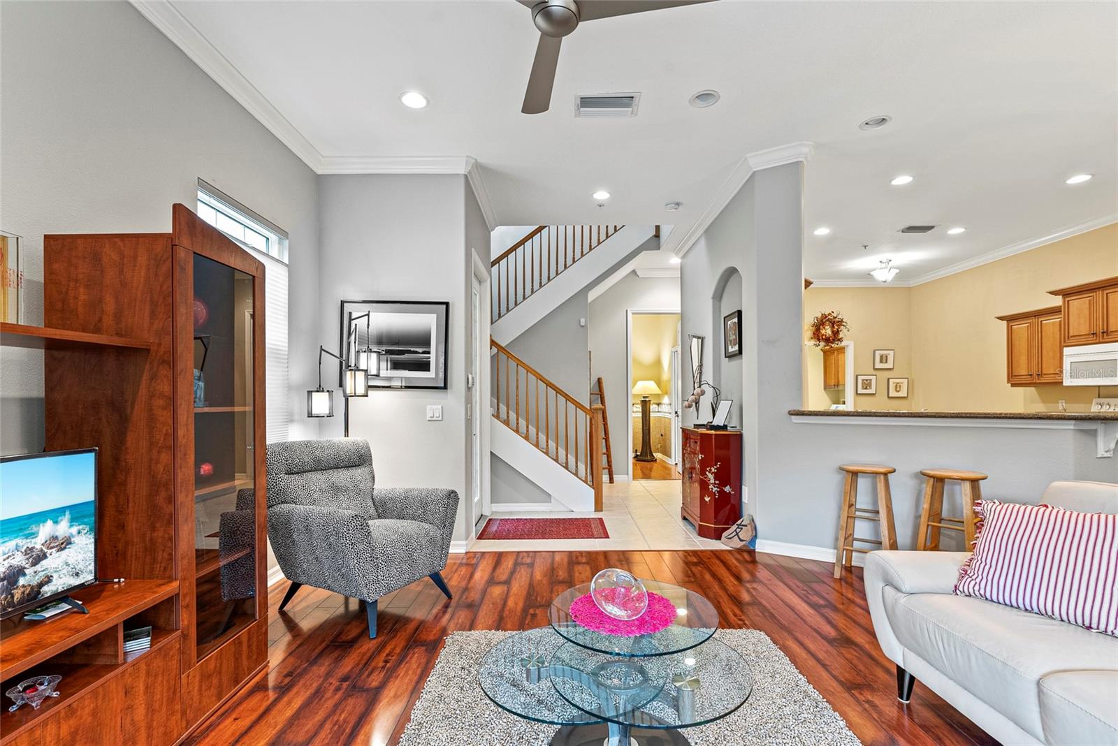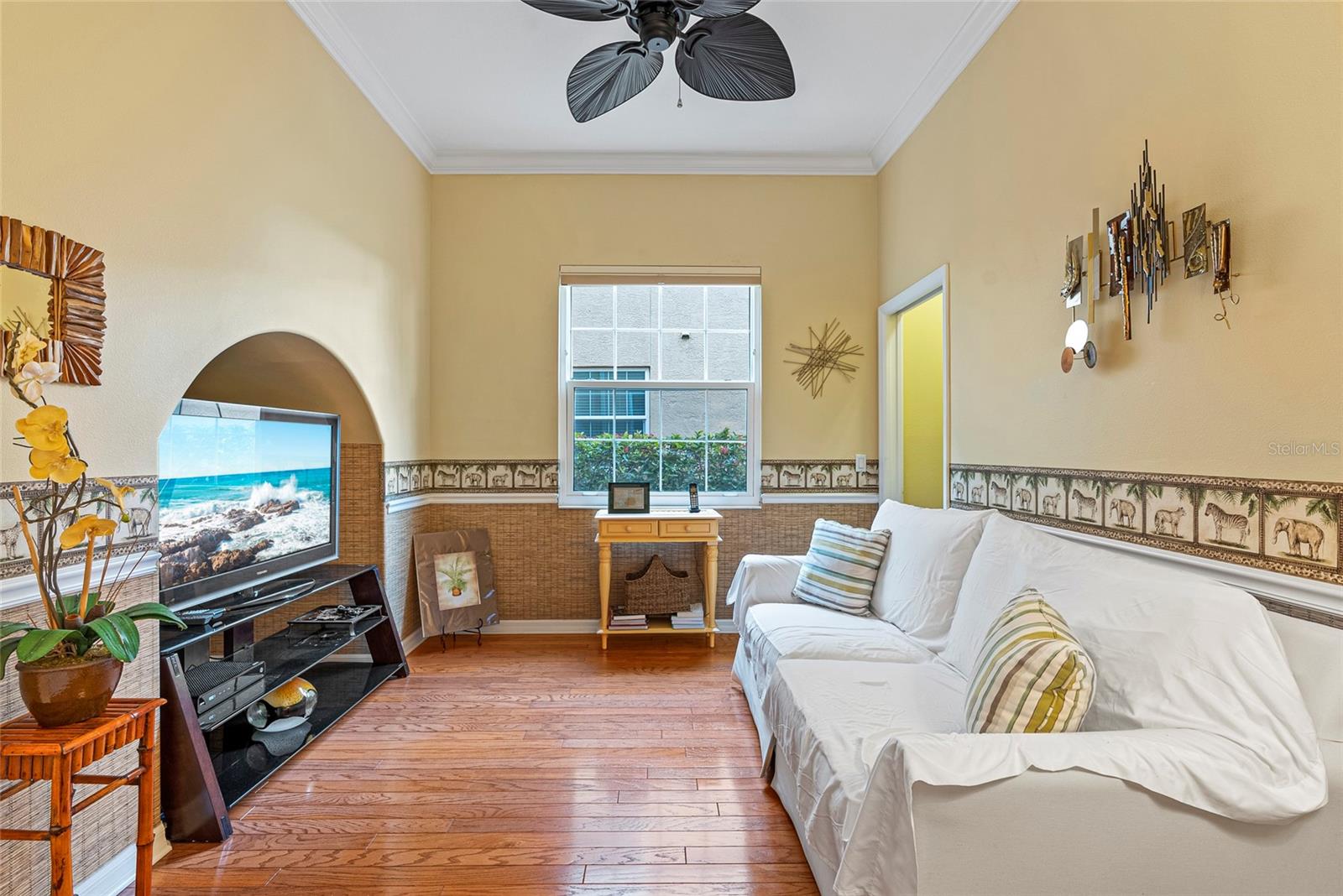 Start living the Florida lifestyle today with a move-in ready townhome in the ideally located community of Palmer Square West. This 3-bedroom, 3-bathroom unit is in excellent condition, a new A/C system, and being sold turnkey furnished, making it a perfect choice - whether for your primary residence, vacation home, or rental investment. Features in this townhome include high ceilings, crown molding, ceiling fans, luxury vinyl and tile flooring, plus impact resistant windows on all windows except the sliding doors and dining room bay window. The first floor offers living and dining areas, a beautiful eat-in kitchen with wood cabinets and granite countertops, a screened-in lanai running the width of the unit, plus a den or option of a third bedroom with an ensuite bath. The two-car garage has several storage areas, opens into a separate laundry room, and then into the kitchen. Two large bedrooms are located on the second floor, each with ensuite bathrooms, one with a private balcony; both have recently been painted and have new luxury vinyl flooring. Townhomes at Palmer Square West provide residents the peace of mind of living in a smaller, safe and secure, maintenance-free community, with brick paver driveways, new exterior painting and new barrel tile roofs on all 29 units, paid for and completed in 2023. In addition to relaxing at the community pavilion with heated pool and spa, or on the screened-in lanais overlooking the extensive landscaping, ponds and fountains, close proximity to shopping, restaurants, medical care, sports and recreation facilities – including a short drive to one of the best beaches in the world, Siesta Key – allow residents to stay close to home to enjoy year-round Florida living.