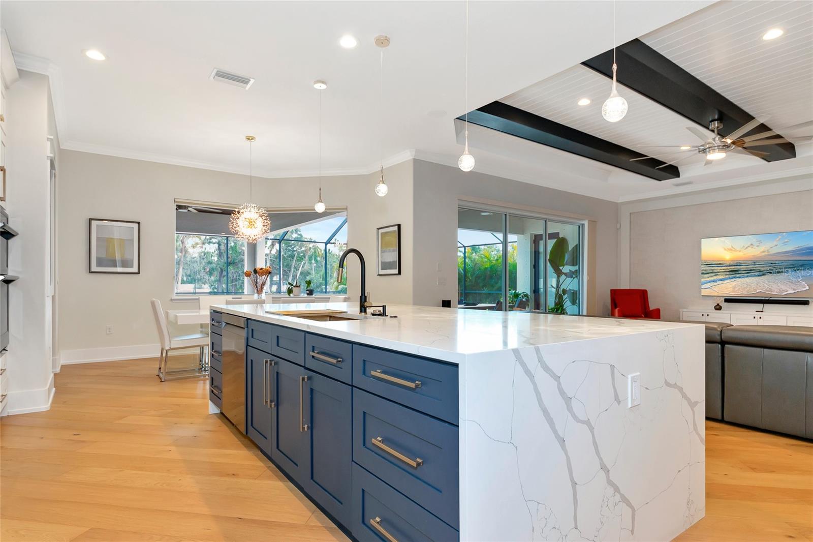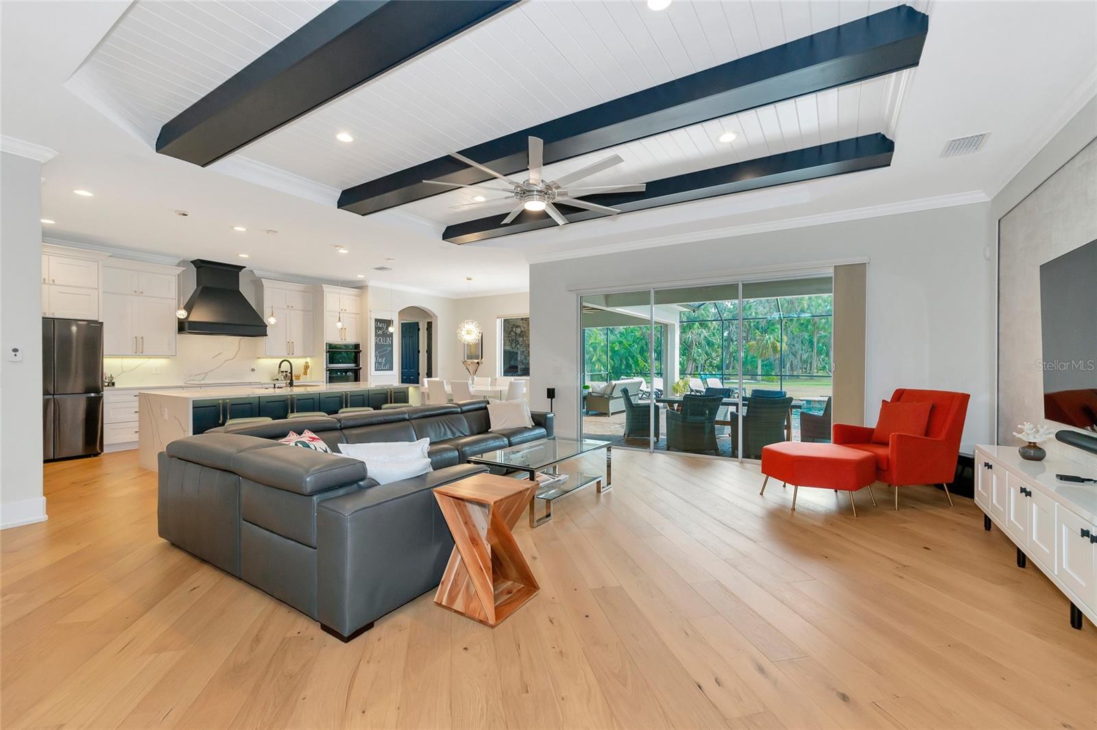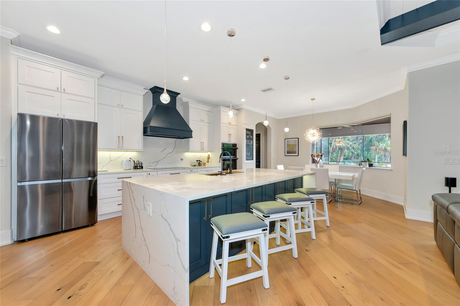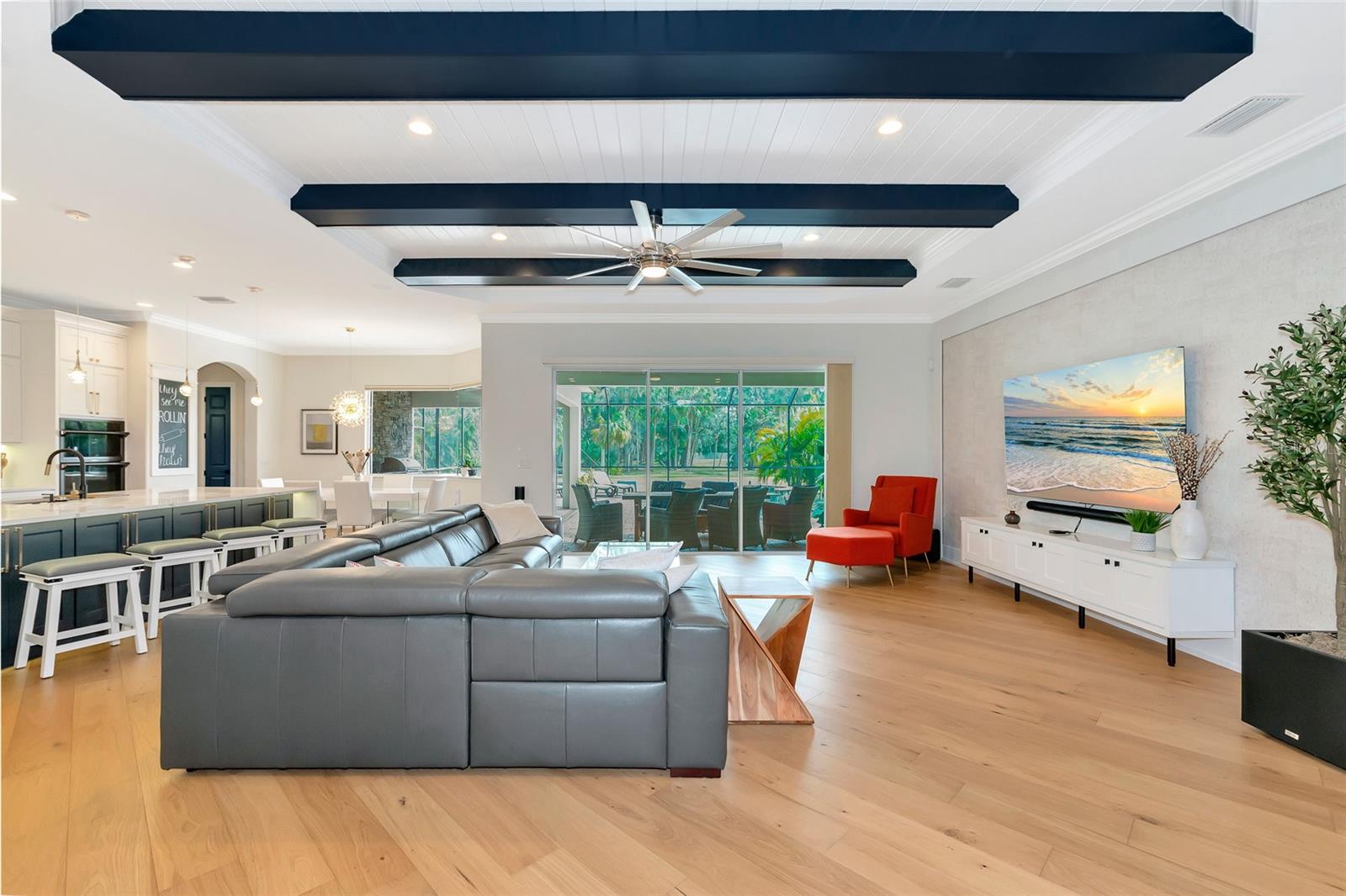 One or more photo(s) has been virtually staged. Step into this beautifully remodeled 4-bedroom + den home in the highly sought-after Vilano community, where luxury meets comfort. Perfectly located just moments from fine dining, premier shopping, and the I-75 corridor, this stunning property is nestled on a serene 1-acre lot surrounded by Florida's tranquil woodlands. The heart of the home is the newly designed open-concept kitchen, a showstopper with shaker cabinets, a striking blue island, a custom blue hood, and gleaming quartz countertops. This spacious kitchen is as functional as it is beautiful, blending style with warmth and offering an inviting space to cook, entertain, or gather with loved ones. High-end Samsung appliances, a cozy breakfast bar, and a generous walk-in pantry complete this dream kitchen. Newly installed hardwood flooring throughout the home enhances the elegance and warmth, creating a cohesive and inviting ambiance in every room. An expansive great room showcases stunning dark ceiling beams, harmonizing beautifully with the light-filled interiors. Sliding doors lead to the outdoor living area, creating a seamless transition between indoor comfort and outdoor luxury. Surround yourself with tranquility in the outdoor living space, featuring a large heated pool with a water feature, spa, and tanning shelf. Designed for entertaining, the screened brick paver deck includes a fully equipped outdoor kitchen. The secluded backyard offers unparalleled privacy, backing onto serene woodlands, creating the perfect sanctuary for peace and relaxation, or evenings by the firepit that creates unmatched privacy and a picturesque escape. Retreat to the grand owner’s suite, where volume ceilings, dual walk-in closets, and a spa-like bathroom await. Indulge in the separate shower, soaking tub, and double vanity, creating a serene retreat within your home. Each guest bedroom provides generous space for customization, perfectly suited for personalization and design inspiration. A private room off the den serves as an ideal home office or creative workspace. This home also includes a spacious 3-car garage, a dedicated laundry room, and thoughtfully designed storage spaces, such as a linen closet in the primary bathroom. Your Dream Home Awaits! Offering a blend of spacious indoor and outdoor living, complete with a private wooded retreat in the backyard, this property delivers unmatched luxury and tranquility in the reputable Vilano community.