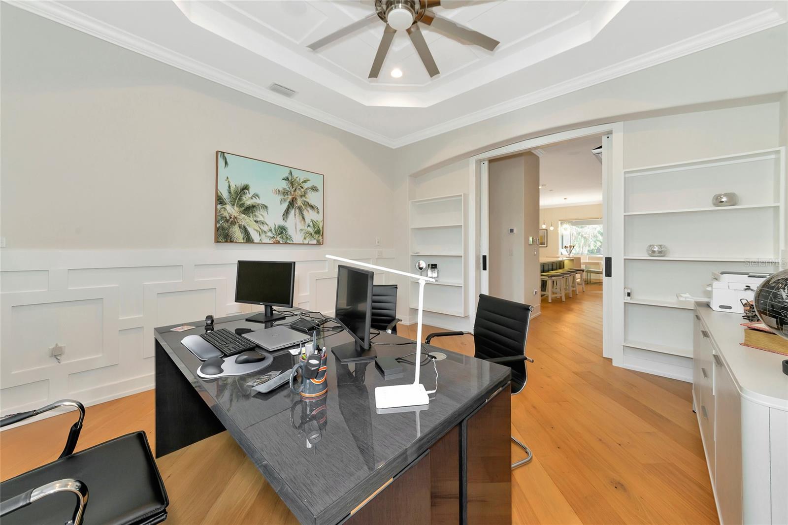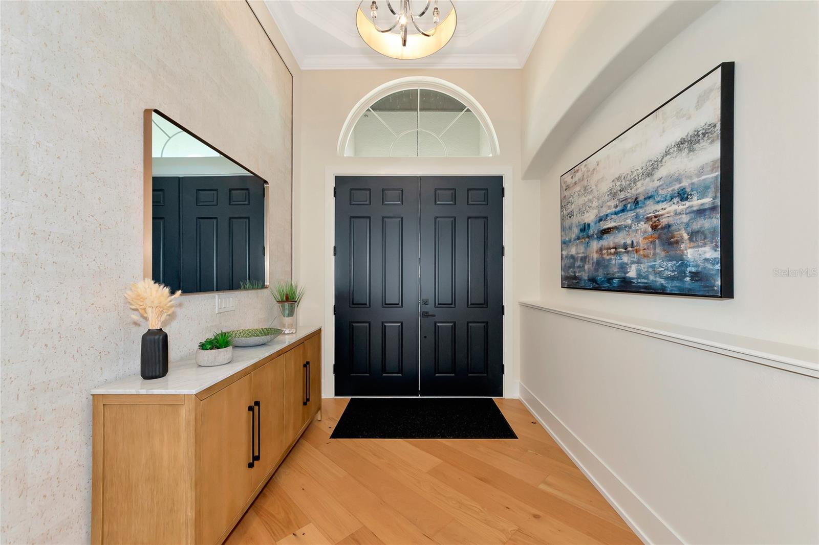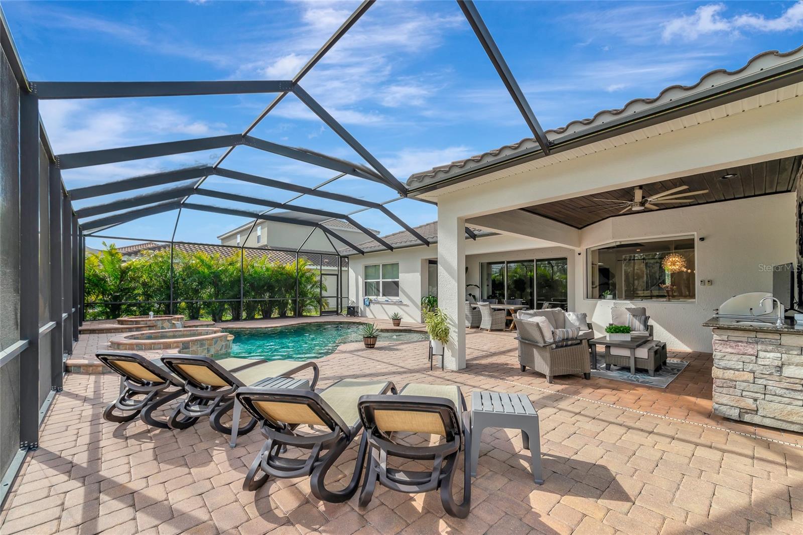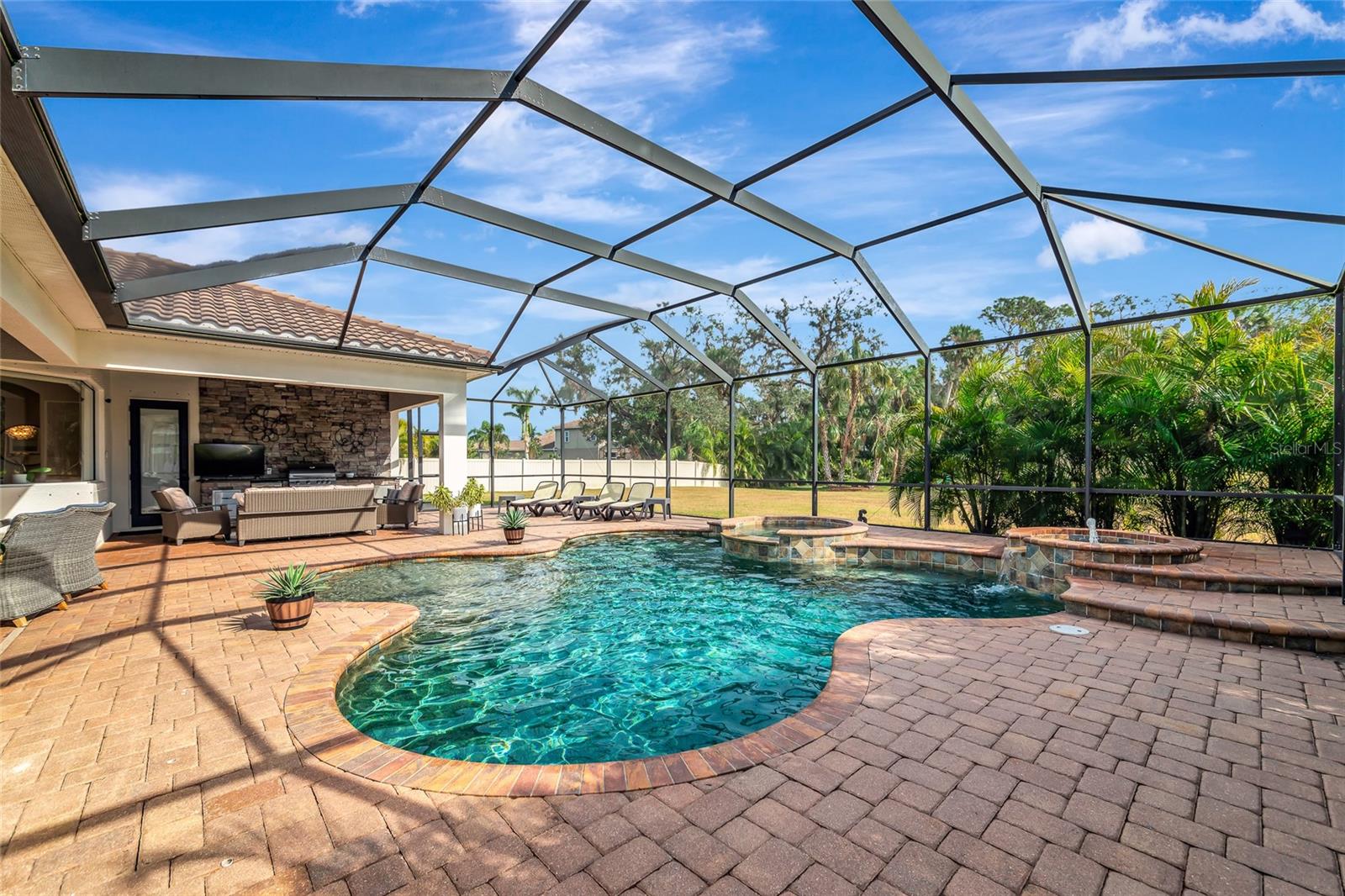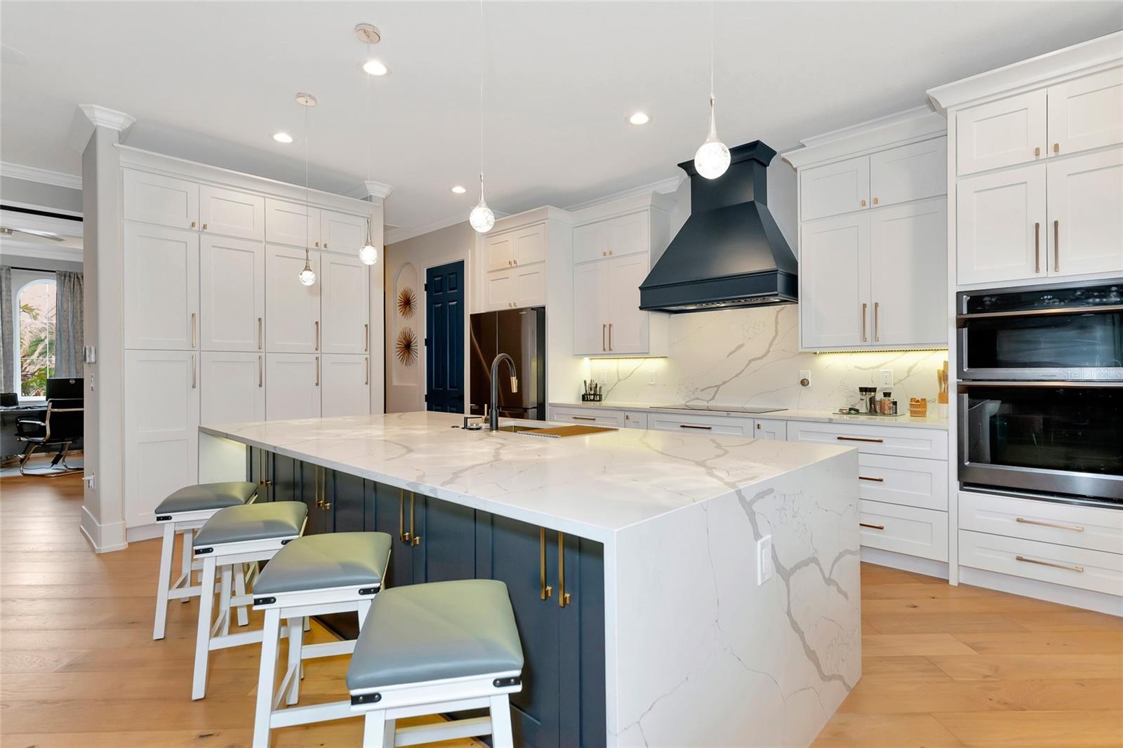 One or more photo(s) has been virtually staged. Step into this beautifully remodeled 4-bedroom + den home in the highly sought-after Vilano community, where luxury meets comfort. Perfectly located just moments from fine dining, premier shopping, and the I-75 corridor, this stunning property is nestled on a serene 1-acre lot surrounded by Florida's tranquil woodlands. The heart of the home is the newly designed open-concept kitchen, a showstopper with shaker cabinets, a striking blue island, a custom blue hood, and gleaming quartz countertops. This spacious kitchen is as functional as it is beautiful, blending style with warmth and offering an inviting space to cook, entertain, or gather with loved ones. High-end Samsung appliances, a cozy breakfast bar, and a generous walk-in pantry complete this dream kitchen. Newly installed hardwood flooring throughout the home enhances the elegance and warmth, creating a cohesive and inviting ambiance in every room. An expansive great room showcases stunning dark ceiling beams, harmonizing beautifully with the light-filled interiors. Sliding doors lead to the outdoor living area, creating a seamless transition between indoor comfort and outdoor luxury. Surround yourself with tranquility in the outdoor living space, featuring a large heated pool with a water feature, spa, and tanning shelf. Designed for entertaining, the screened brick paver deck includes a fully equipped outdoor kitchen. The secluded backyard offers unparalleled privacy, backing onto serene woodlands, creating the perfect sanctuary for peace and relaxation, or evenings by the firepit that creates unmatched privacy and a picturesque escape. Retreat to the grand owner’s suite, where volume ceilings, dual walk-in closets, and a spa-like bathroom await. Indulge in the separate shower, soaking tub, and double vanity, creating a serene retreat within your home. Each guest bedroom provides generous space for customization, perfectly suited for personalization and design inspiration. A private room off the den serves as an ideal home office or creative workspace. This home also includes a spacious 3-car garage, a dedicated laundry room, and thoughtfully designed storage spaces, such as a linen closet in the primary bathroom. Your Dream Home Awaits! Offering a blend of spacious indoor and outdoor living, complete with a private wooded retreat in the backyard, this property delivers unmatched luxury and tranquility in the reputable Vilano community.