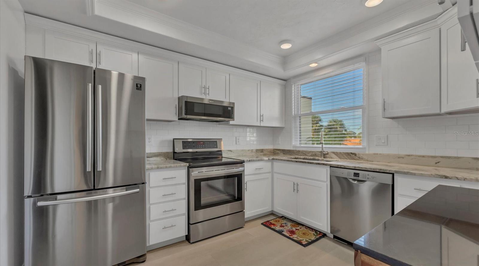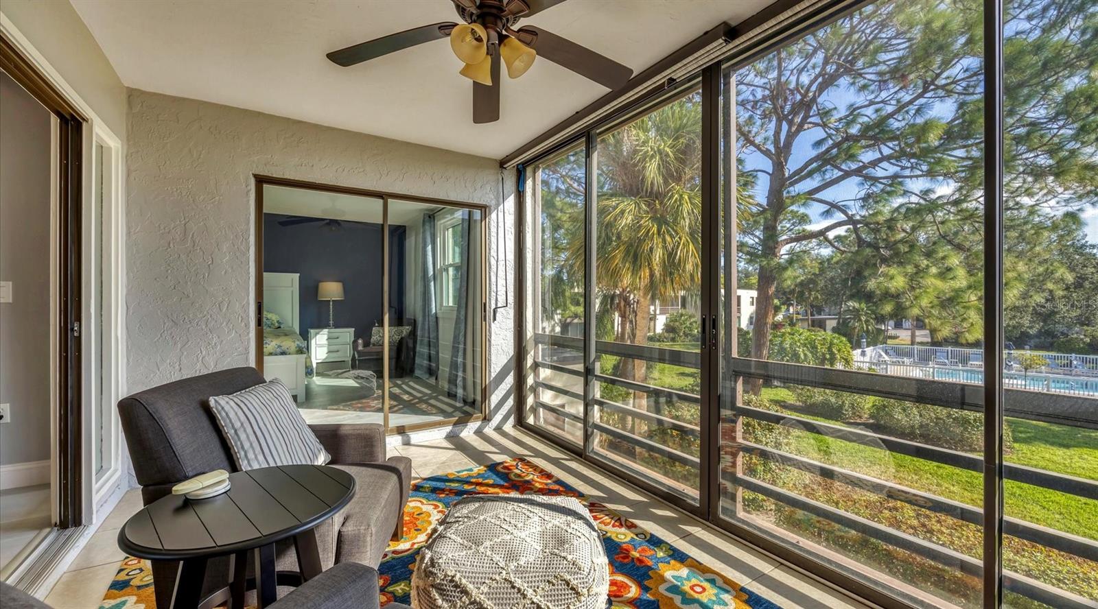 Move-in ready! Turnkey furnished, updated second-floor three-bedroom, two-bath condominium in the Meadows, a forested oasis just 15 minutes from downtown. Contemporary design by renowned architect Tim Siebert and a charming courtyard welcome you home. With no one above you, you will love the natural light, luxury vinyl plank flooring, and spacious kitchen with white shaker cabinetry, granite countertops and stainless-steel appliances. The primary suite features a walk-in closet and a beautiful frameless-glass Roman shower. All with ideal southeastern exposure, a relaxing glassed-in lanai with distant views of the pool and golf course, and near all the fun The Meadows has to offer. A five-star location on 1,600 park-like acres, The Meadows is a resort lifestyle community 15 minutes from downtown. Residents enjoy 14 miles of biking and hiking trails, fun-filled activities, a fitness center, a Junior Olympic pool, pickleball courts, dining venues, pay-to-play three 18-hole golf courses and a top-notch tennis complex. Its prime location places you near award-winning beaches, remarkable arts and culture, Nathan Benderson Park, Mote SEA Aquarium, Whole Foods, Trader Joe’s and The Mall at University Town Center, a world-class shopping, entertainment and dining destination. A fabulous Florida lifestyle awaits! A 2022 refrigerator, 2021 air-conditioning system, 2020 rest of appliances, 2016 roof, one-car carport with storage closet and above flood plain in zone X.