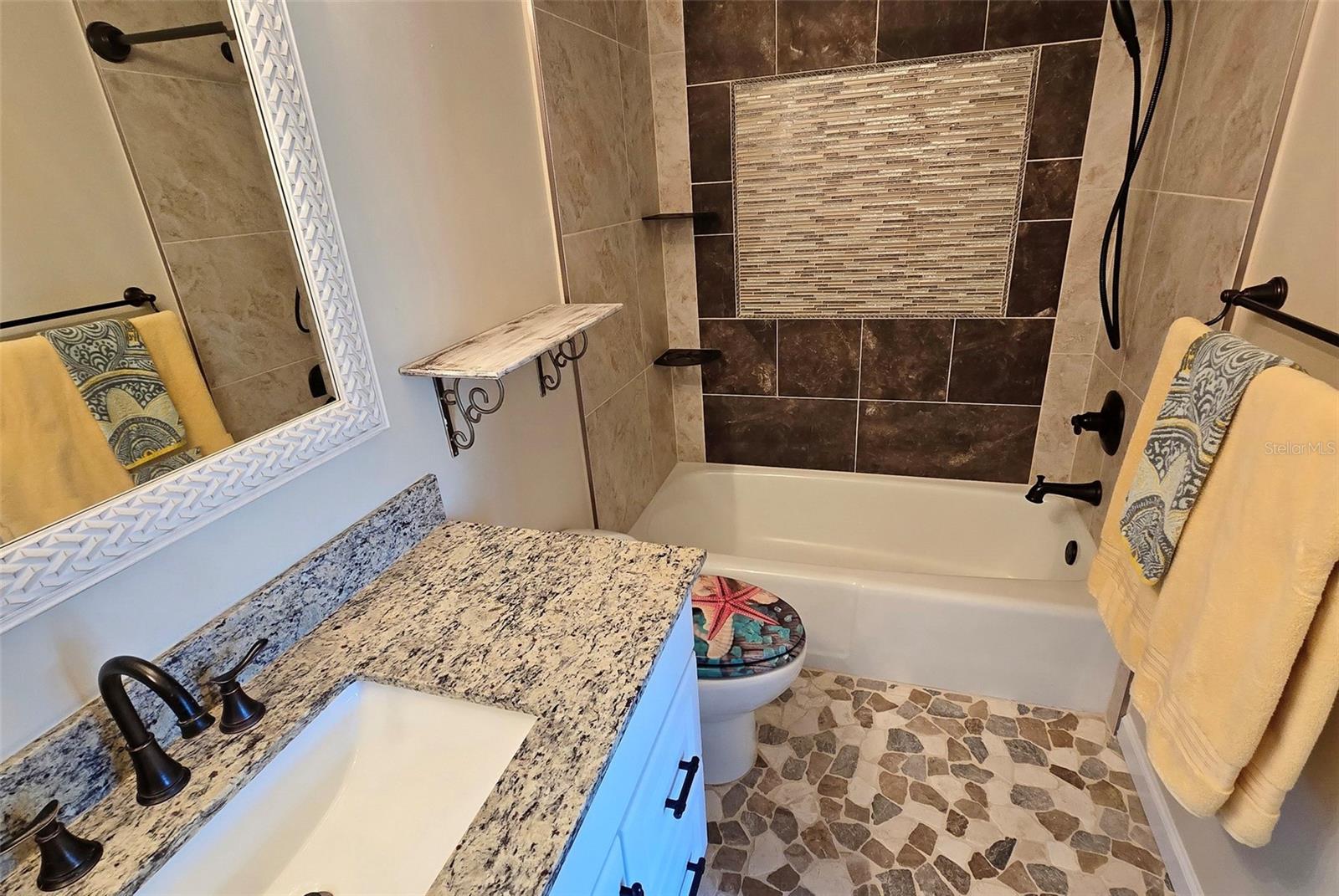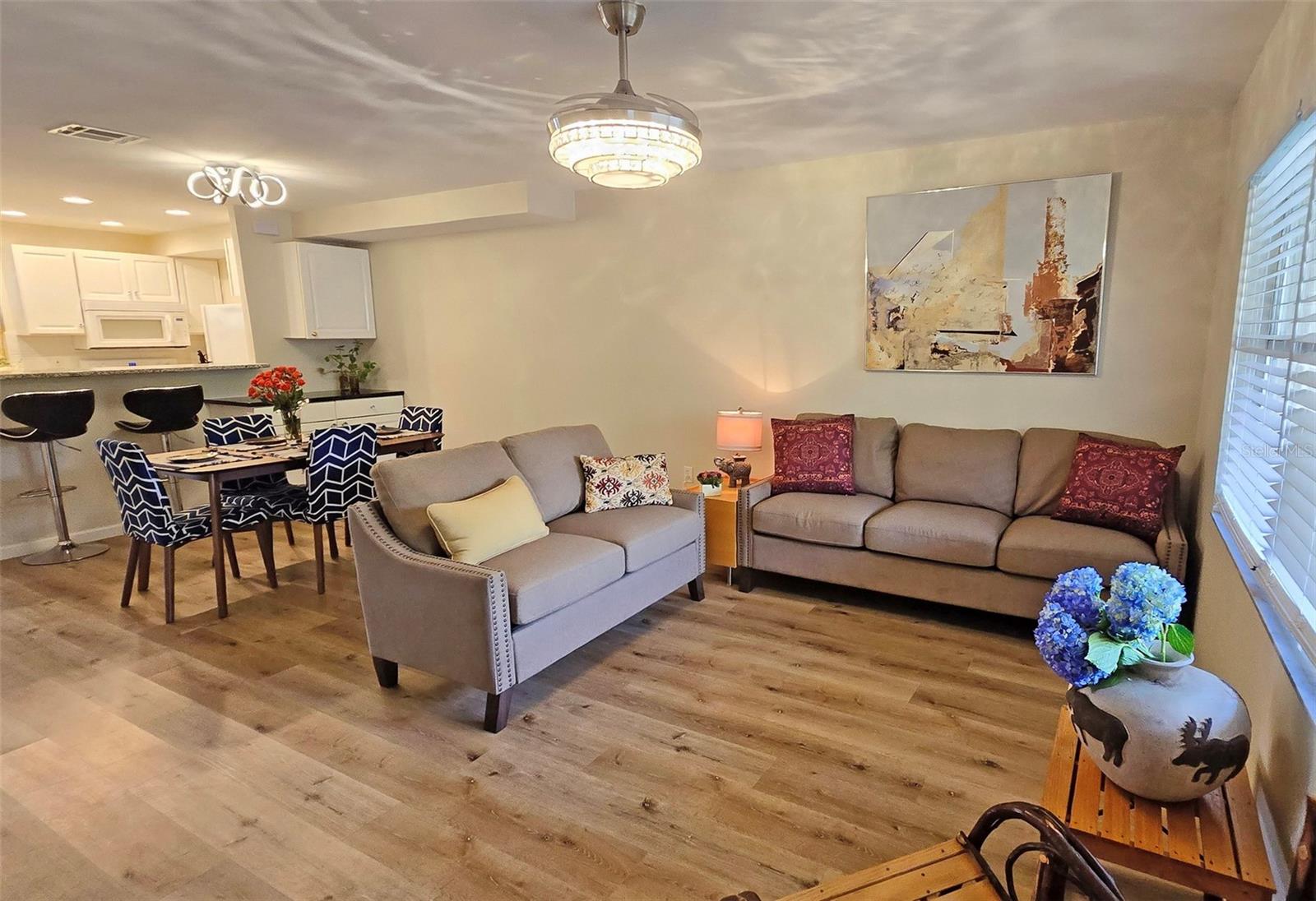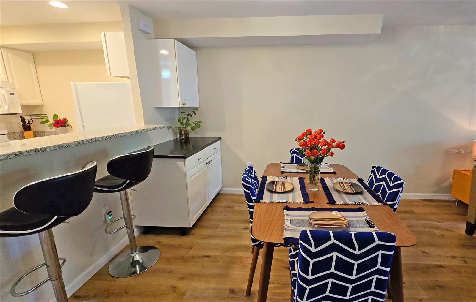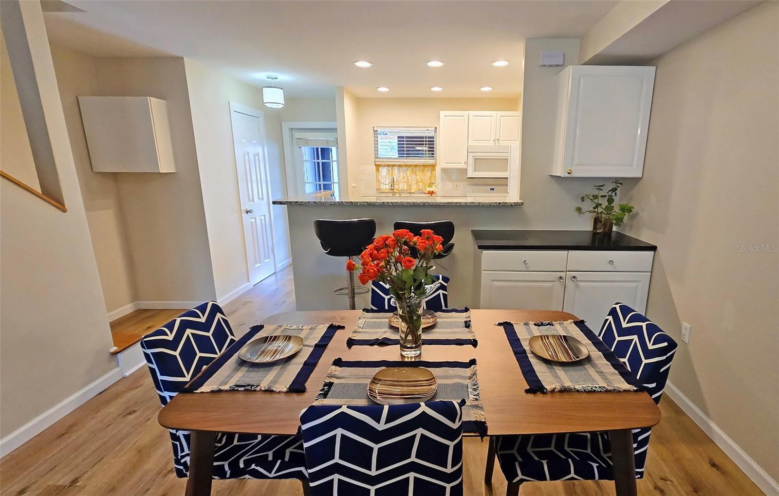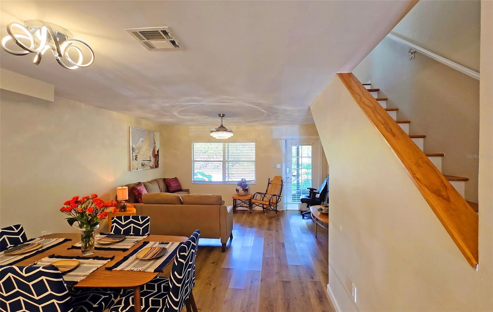 PRICE REDUCTION!!!! Don't miss out on this exceptional opportunity! D!scover Ramblewood Acres! Welcome to this stunning renovated townhouse nestled in the heart of Sarasota. This centrally located, gated community offers a maintenance-free lifestyle and a wealth of amenities. As you enter through the new keyless entry locks, you'll be greeted by an open- concept floor plan that seamlessly connects the dining space to the living area creating an ideal environment for easy living and entertaining. New engineered flooring, contemporary lighting fixtures and ceiling fans add to the modern elegance of the space. The addition of a granite top coffee/beverage bar in the dining area makes entertaining guests a breeze! The modern kitchen has all the “must have” upgrades to include reverse osmosis water filtration, raised panel cabinets, granite countertops, an updated stainless-steel dishwasher and canned lighting with dimmers. For your convenience there is a beautifully appointed powder room on the first level. There are front and rear screened-in porches where you can enjoy your morning coffee or relax at the end of the day. Venture upstairs to two spacious bedrooms complete with their own beautifully updated bathrooms. The primary bedroom offers a private deck surrounded by nature’s beauty. There is a new expansive 20x40 deck accessible through the second bedroom—ideal for entertaining friends or simply soaking up the sun. Take advantage of the community amenities including three sparkling pools, two tennis courts, a playground and a clubhouse complete with a kitchen and café-like area perfect for social gatherings. Walking trails wind through picturesque landscape designed to enhance your living experience. The unit has an attached carport plus additional nearby parking options available for guests. All assessments have been paid in full by the seller, a bonus that makes this property even more enticing!