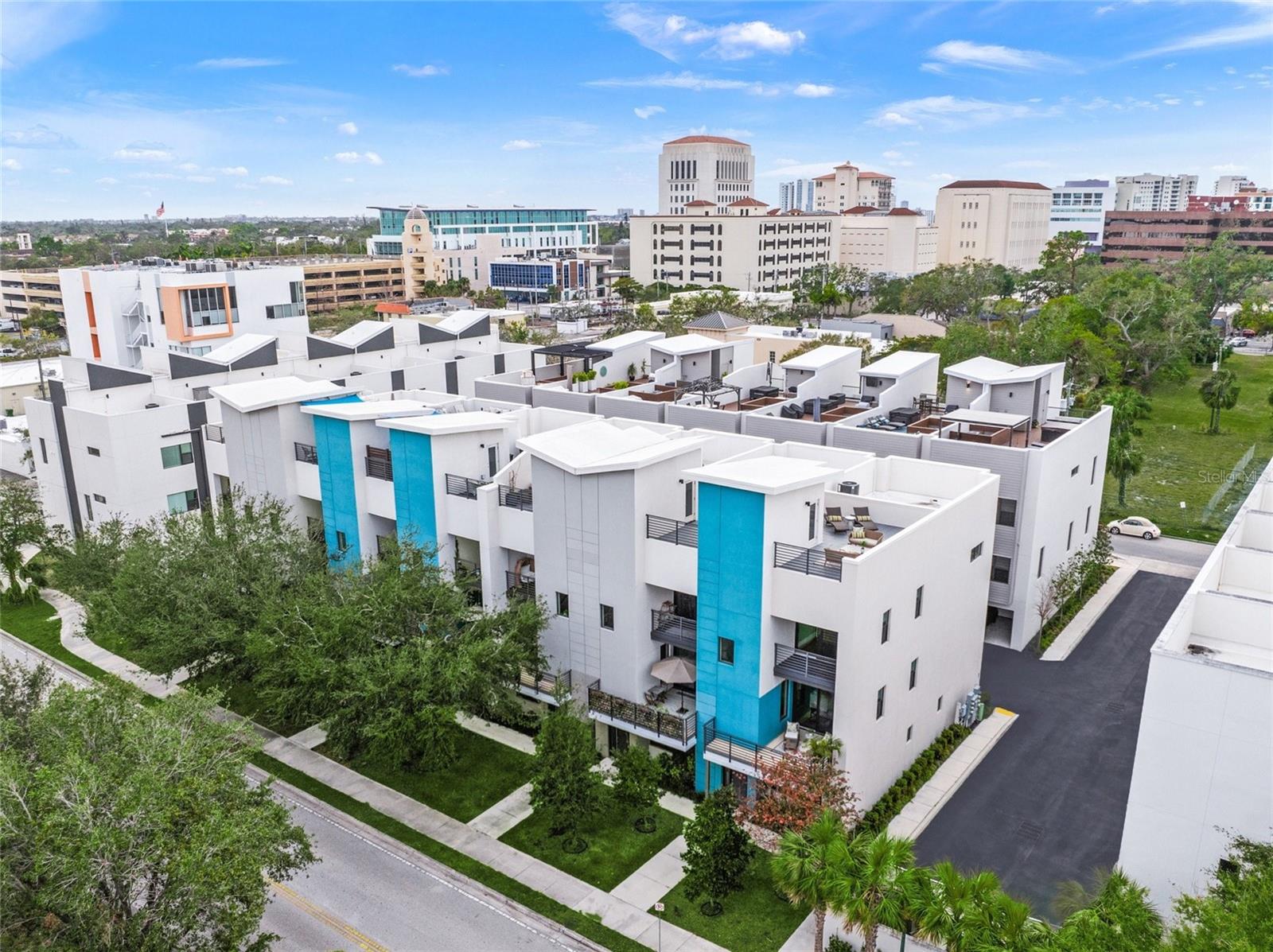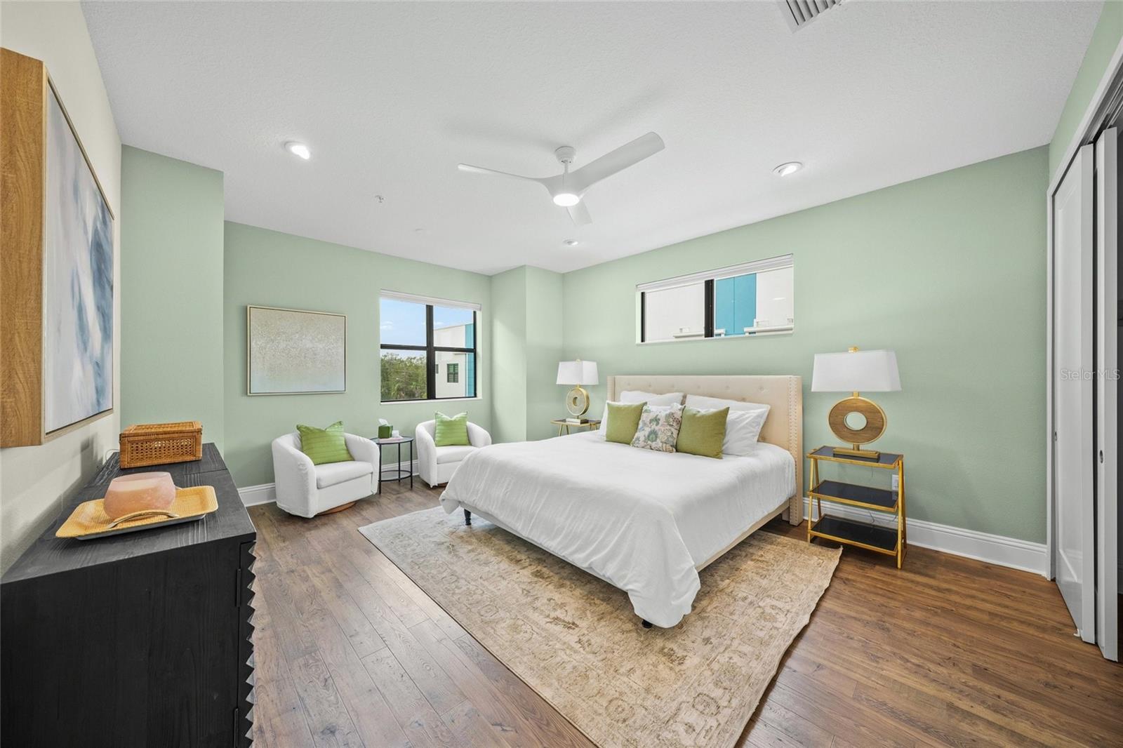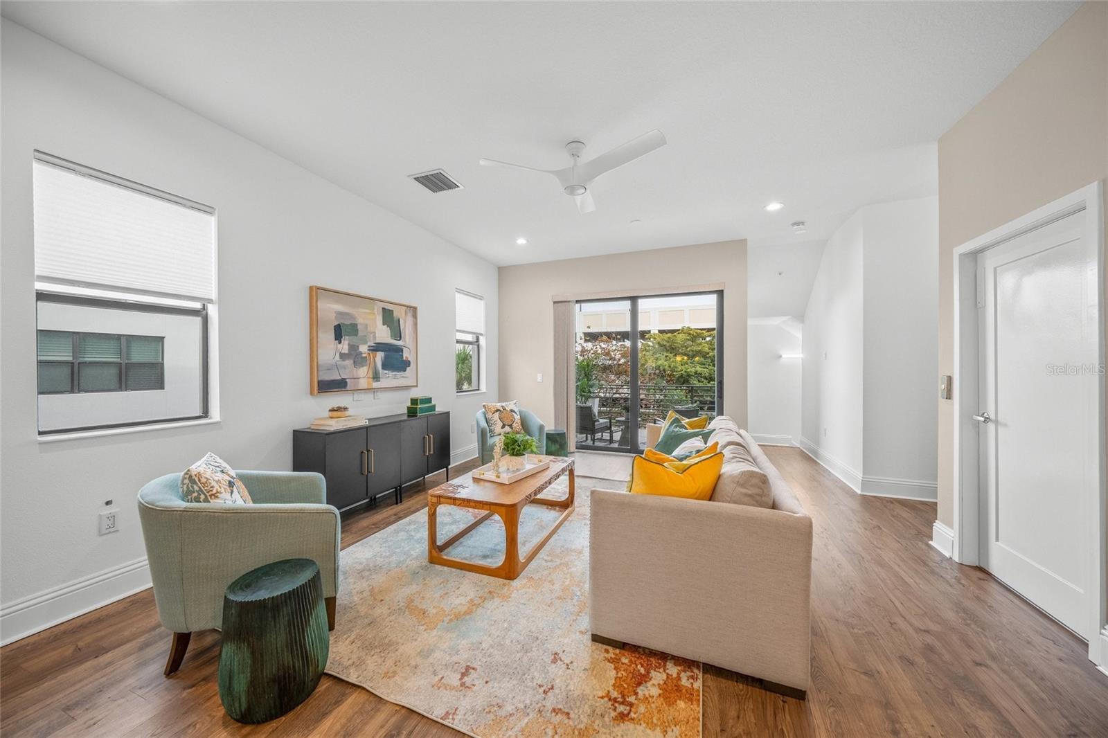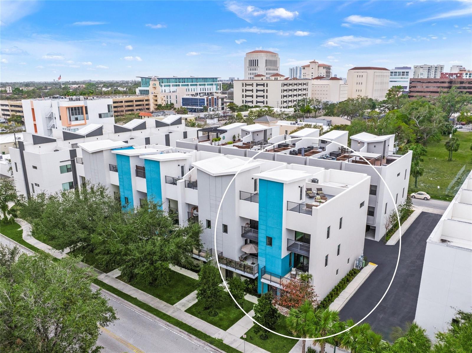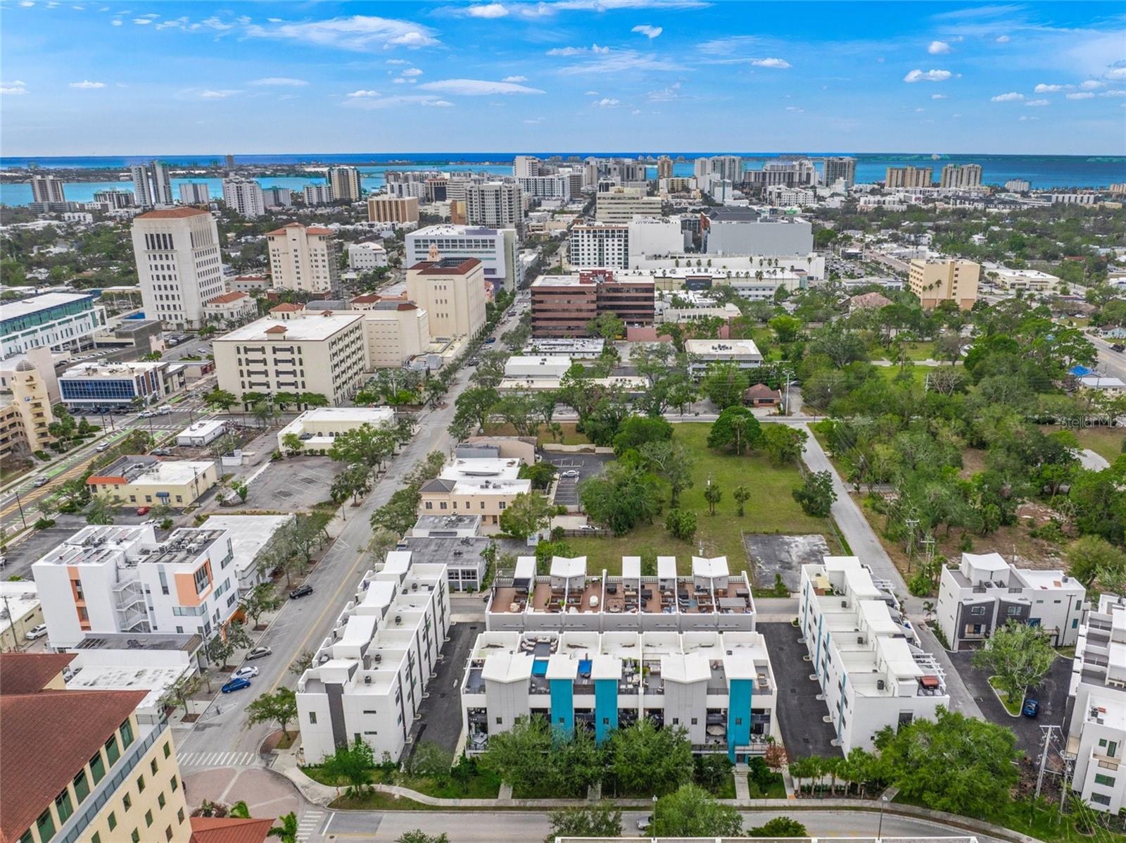 Premier On Main. A rare opportunity to make this pristine, never-lived-in, end unit townhouse your home. Located in the thriving Uptown district on upper Main Street, this elegant townhome is recently fully upgraded with designer features and is so close to all the city has to offer. This spacious 2762 square feet home is a standout unit in the exclusive 37-unit Premier On Main with its high ceilings and light-flooded rooms, 3 bedrooms (all en-suite), 3.5 bathrooms, a 2-car garage plus attached 2-car carport, and a roof top terrace ready for Buyer’s outdoor kitchen. This former builder’s model offers numerous outstanding special features including a private elevator, custom designed California closets, custom built-in pantry, motorized blinds in primary master suite, monitored security system, whole house water filtration, on demand gas water heater and an epoxy garage floor with additional storage. The entry level private bed/bath suite welcomes your guests, or is perfect for an office, studio or den. A spacious 2nd floor living area invites entertaining with its chef’s kitchen plus high bar with room for a crowd, a custom pantry, all new KitchenAid appliances, natural gas range and beautiful cabinetry. The light-filled living room flows out onto a private covered balcony, and a dining room with dry bar offers an elegant, warm and welcoming venue for meals at home or hosting friends. The 3rd level offers a conveniently located laundry closet with washer/dryer and extra storage, 2 spacious master bed/bath suites, both with walk-in closets, and another private balcony. The primary master suite boasts an additional custom designed closet and a Japanese style wet room with luxurious soaking tub and shower. This exciting location in the hot Uptown district on upper Main Street is a particular draw. Have all the buzz of city life without the bustle. Everything in Sarasota, with its art centers, cultural district, culinary hot-spots are just at your doorstep. The galleries, cafes, restaurants, boutiques, movies, Payne Park and the Legacy Trail are close by for your enjoyment. The Bay Runner Trolley with complimentary service to downtown, St. Armand’s Circle and Lido Beach is just outside your front door. Premier On Main boasts a fee simple ownership with low fees of only $394 a month. Looking for a dazzling new home or an excellent rental property? This is it.
