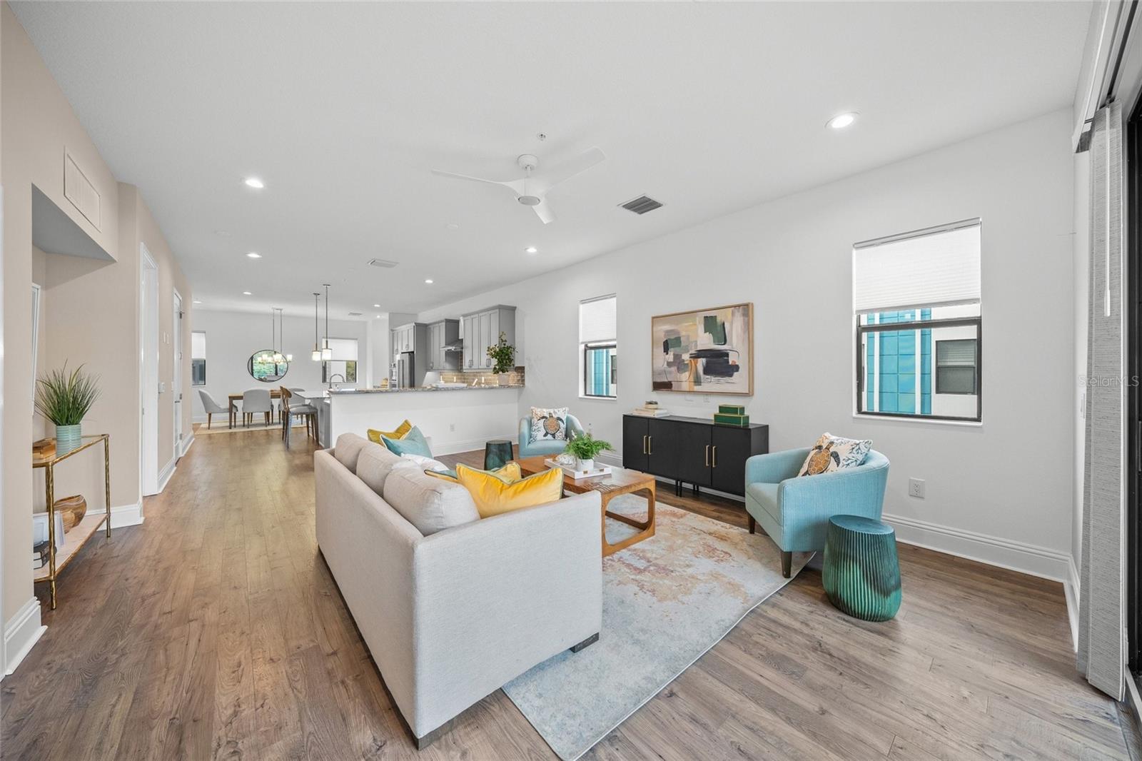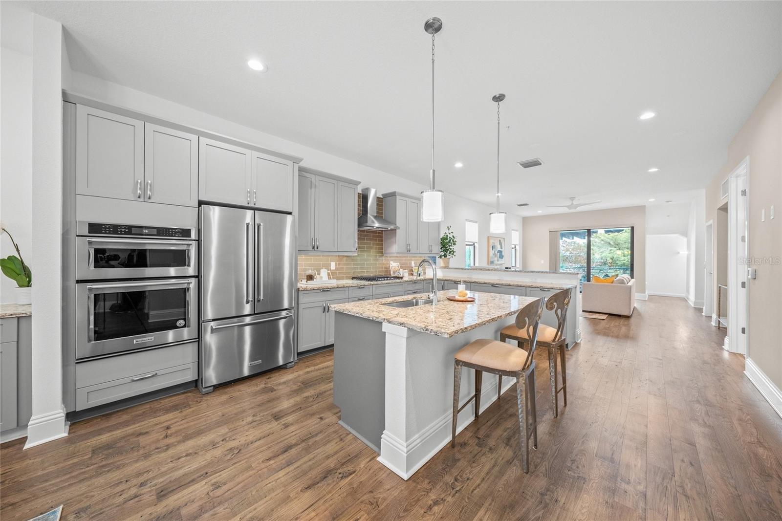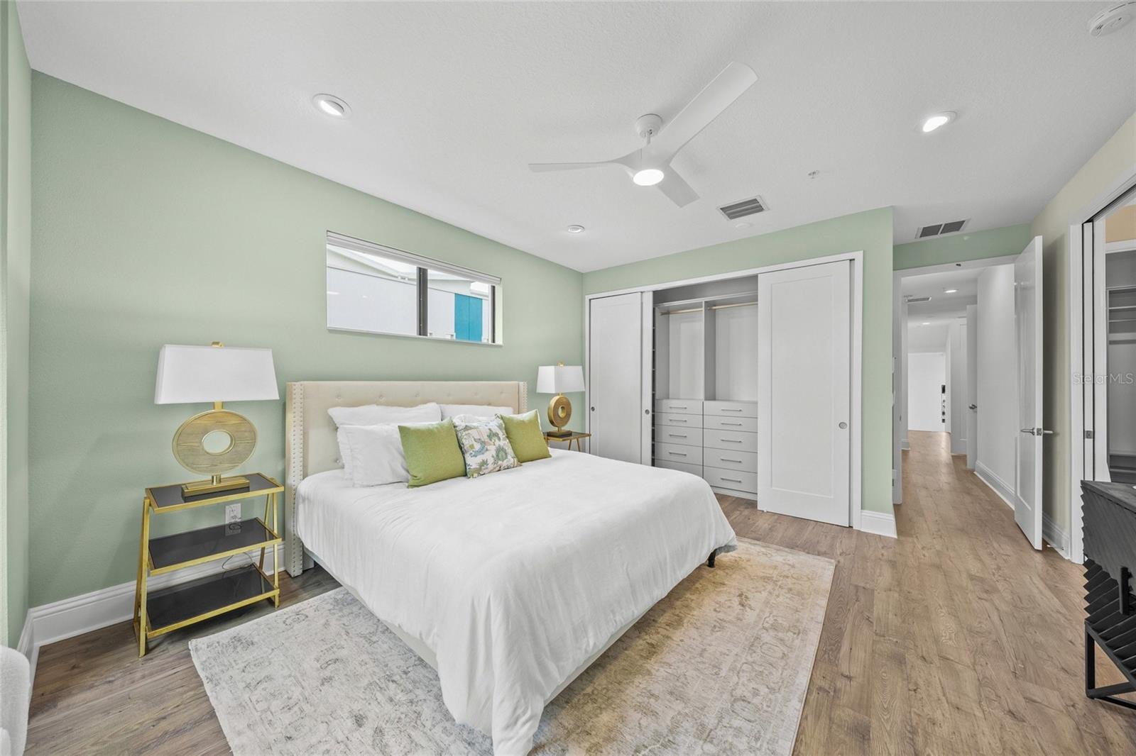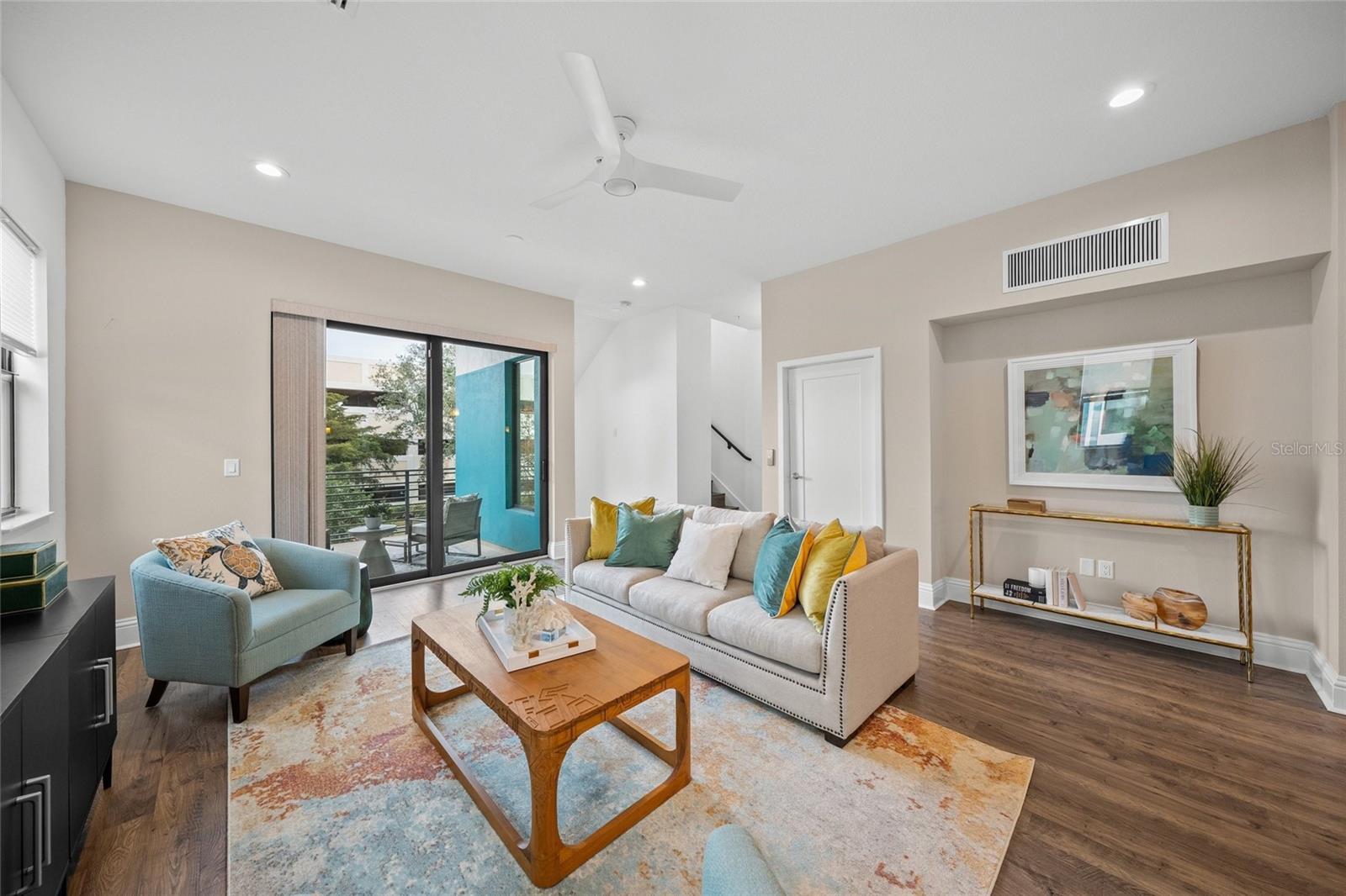 Premier On Main. A rare opportunity to make this pristine, never-lived-in, end unit townhouse your home. Located in the thriving Uptown district on upper Main Street, this elegant townhome is recently fully upgraded with designer features and is so close to all the city has to offer. This spacious 2762 square feet home is a standout unit in the exclusive 37-unit Premier On Main with its high ceilings and light-flooded rooms, 3 bedrooms (all en-suite), 3.5 bathrooms, a 2-car garage plus attached 2-car carport, and a roof top terrace ready for Buyer’s outdoor kitchen. This former builder’s model offers numerous outstanding special features including a private elevator, custom designed California closets, custom built-in pantry, motorized blinds in primary master suite, monitored security system, whole house water filtration, on demand gas water heater and an epoxy garage floor with additional storage. The entry level private bed/bath suite welcomes your guests, or is perfect for an office, studio or den. A spacious 2nd floor living area invites entertaining with its chef’s kitchen plus high bar with room for a crowd, a custom pantry, all new KitchenAid appliances, natural gas range and beautiful cabinetry. The light-filled living room flows out onto a private covered balcony, and a dining room with dry bar offers an elegant, warm and welcoming venue for meals at home or hosting friends. The 3rd level offers a conveniently located laundry closet with washer/dryer and extra storage, 2 spacious master bed/bath suites, both with walk-in closets, and another private balcony. The primary master suite boasts an additional custom designed closet and a Japanese style wet room with luxurious soaking tub and shower. This exciting location in the hot Uptown district on upper Main Street is a particular draw. Have all the buzz of city life without the bustle. Everything in Sarasota, with its art centers, cultural district, culinary hot-spots are just at your doorstep. The galleries, cafes, restaurants, boutiques, movies, Payne Park and the Legacy Trail are close by for your enjoyment. The Bay Runner Trolley with complimentary service to downtown, St. Armand’s Circle and Lido Beach is just outside your front door. Premier On Main boasts a fee simple ownership with low fees of only $394 a month. Looking for a dazzling new home or an excellent rental property? This is it.